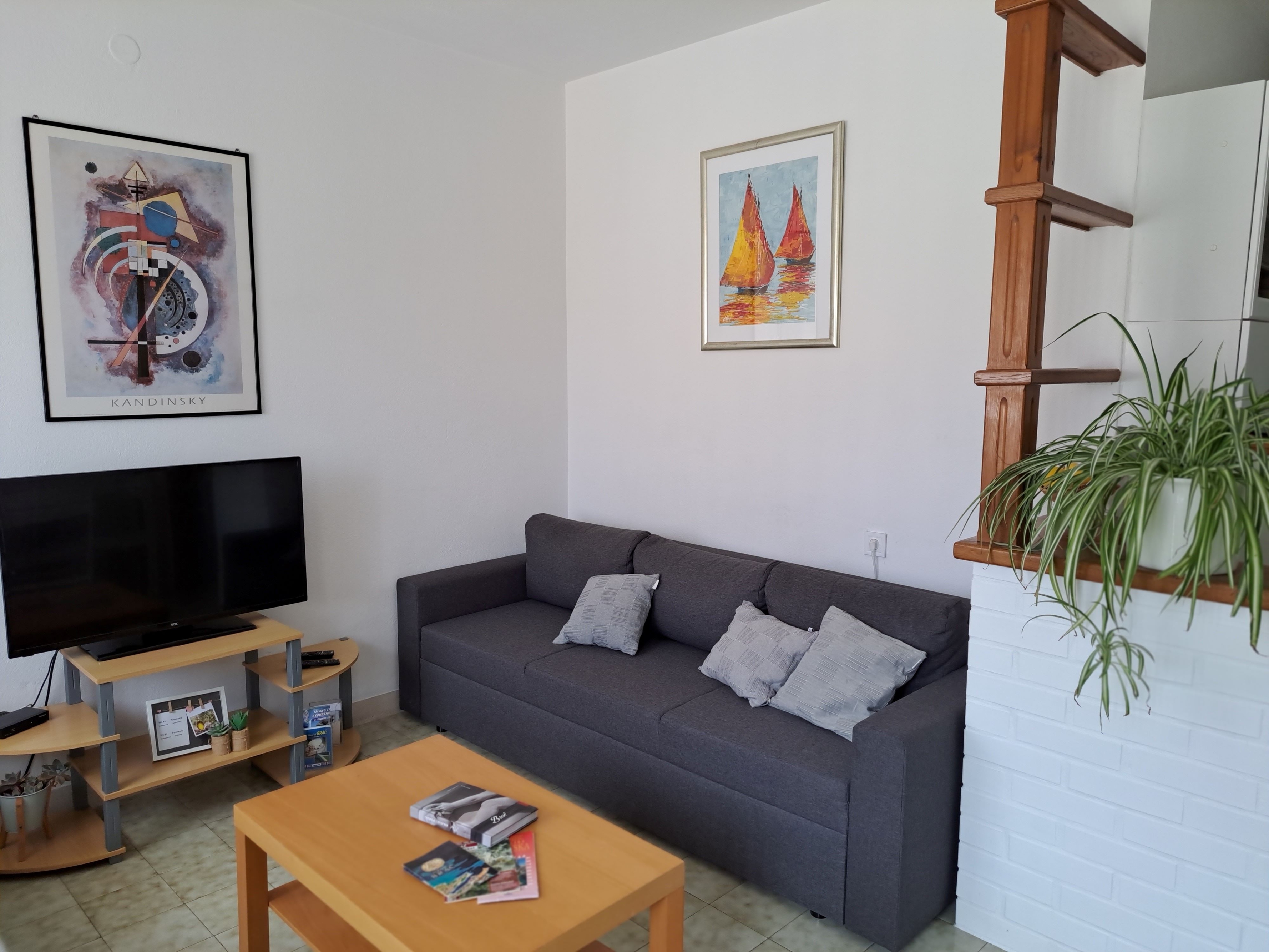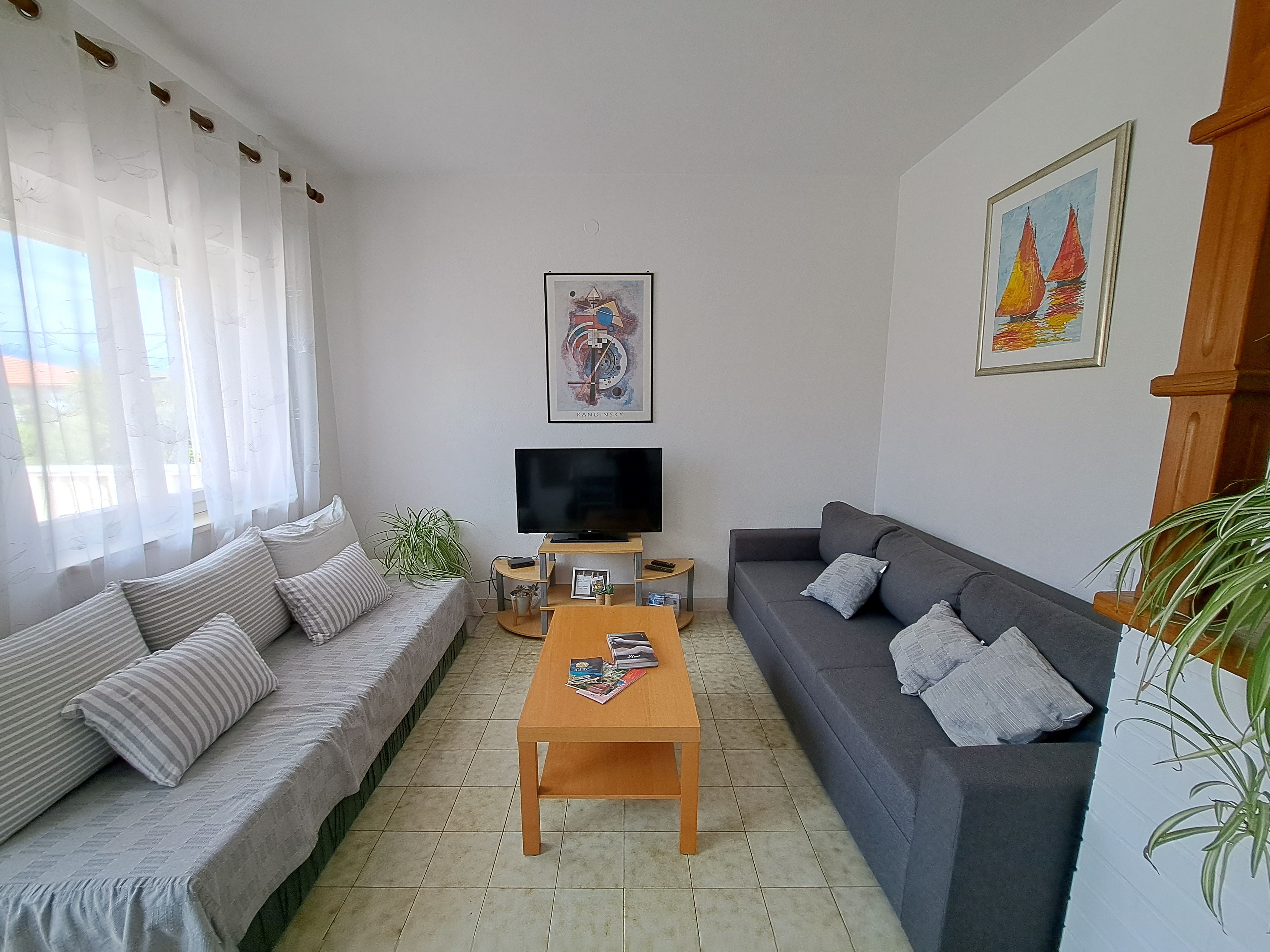 Apartment can accommodate 5 guests. Beds are situated in 2 sleeping rooms, but also in the living room, within 46m2. Food can be prepared using barbecue which is shared with other guests too. Reserved accommodation unit has a shared terrace. INCLUDED IN THE PRICE: tourist tax, final cleaning, air-conditioning, parking, internet, baby cot, iron, ironing board, hairdryer. OBLIGATORY ADDITIONAL COSTS: short stay fee (surcharge depending on a number of booked nights: 30% - 1, 20% - 2, 10% - 3). OPTIONAL ADDITIONAL COSTS: additional bed (€5.00 per night). The availability of additional services for your chosen dates of stay, as well as their prices (if none are listed) must be checked ahead of time. Any additional services not shown in the price calculation are payable directly to the property owner and only if used by the visitor. Discounts to the base price: free day 14=13 (for reservations of 14 or more days you get one free day for the stay until 31122026).
