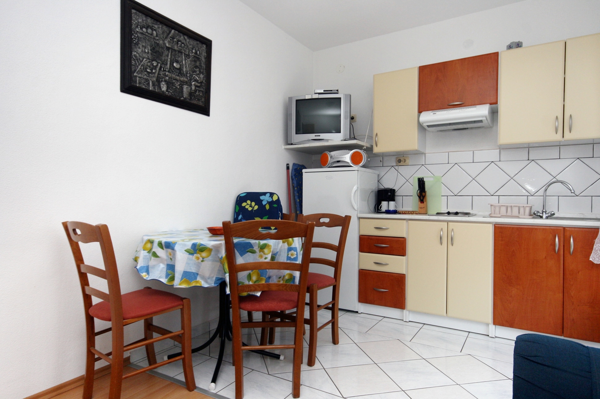 Apartment can accommodate 3 guests. Beds are situated in 1 sleeping rooms, but also in the dining room, within 28m2. Guests can use a private terrace to enjoy the warm summer evenings. The apartment offers the sea view. Food can be prepared using barbecue which is shared with other guests too. This accommodation unit welcomes pets at an additional charge. INCLUDED IN THE PRICE: tourist tax, final cleaning, air-conditioning, parking, internet, baby cot, iron, ironing board, hairdryer. OBLIGATORY ADDITIONAL COSTS: short stay fee (surcharge depending on a number of booked nights: 30% - 1, 20% - 2, 10% - 3). OPTIONAL ADDITIONAL COSTS: pets (€10.00 per night). The availability of additional services for your chosen dates of stay, as well as their prices (if none are listed) must be checked ahead of time. Any additional services not shown in the price calculation are payable directly to the property owner and only if used by the visitor. Discounts to the base price: free day 14=13 (for reservations of 14 or more days you get one free day for the stay until 31122026).