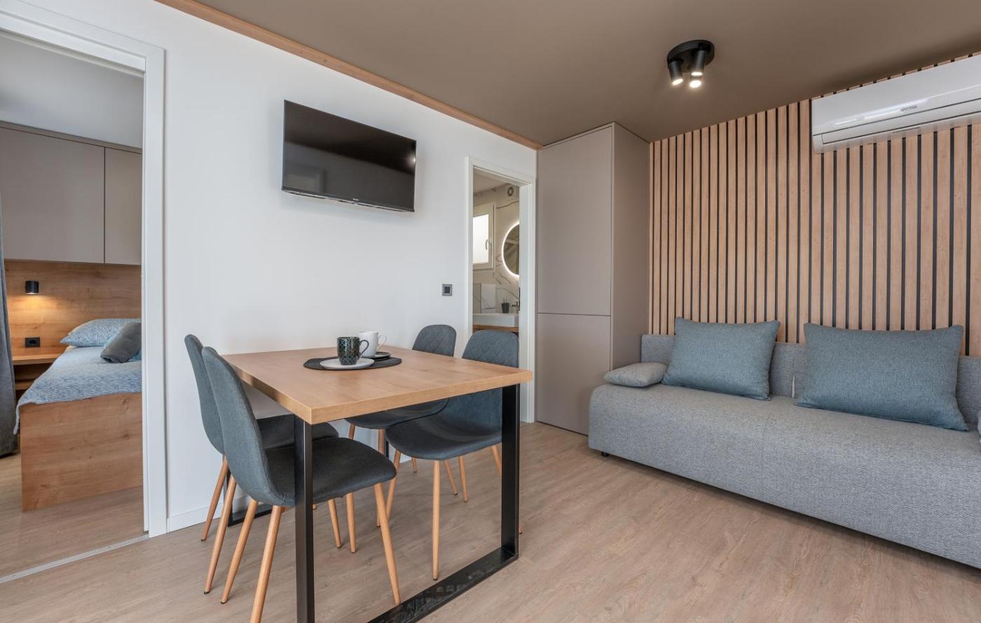Two-Bedroom Apartment. This spacious apartment features 1 living room, 2 separate bedrooms and 1 bathroom with a shower. In the kitchen, guests will find a stovetop, a refrigerator, a dishwasher and kitchenware. Boasting a terrace with sea views, this apartment also features air conditioning and a flat-screen TV. The unit has 3 beds.