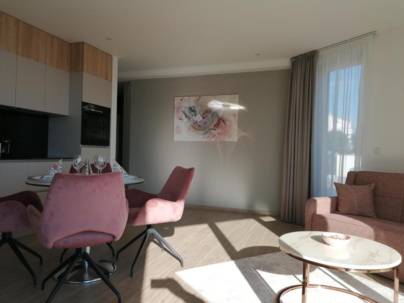 The apartment provides guests with a terrace, sea views, a seating area, satellite flat-screen TV, a fully equipped kitchen with a dishwasher and a fridge, and a private bathroom with bath and a hair dryer.units are equipped with a coffee machine, while selected rooms come with a balcony and others also offer mountain views. Additional in-room amenities include wine or champagne, fruits and chocolates or cookies.