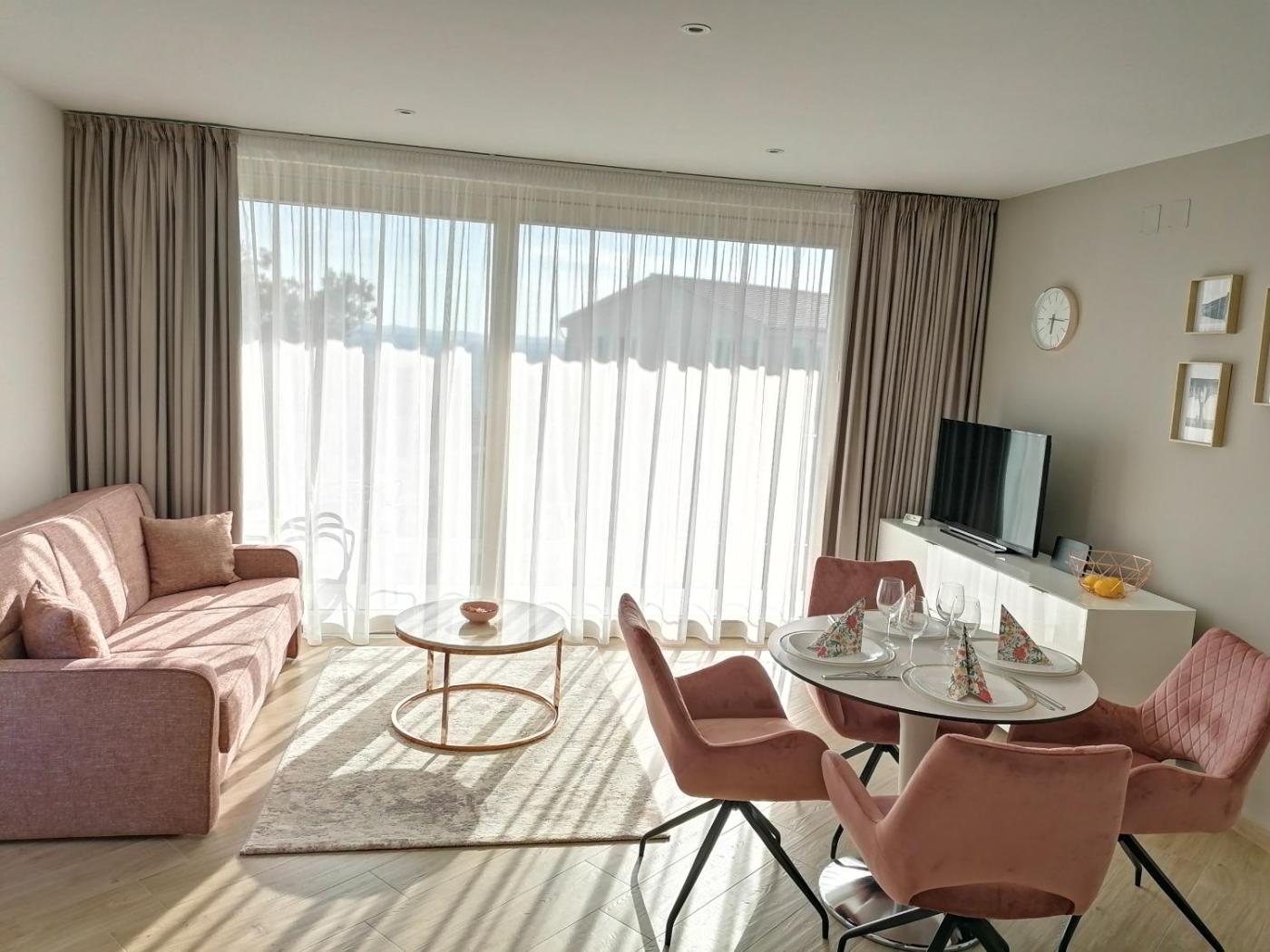 Deluxe Apartment. The pool with a view and sauna are the standout features of this apartment. Boasting a private entrance, this air-conditioned apartment features 1 living room, 2 separate bedrooms and 1 bathroom with a bath and a shower. Guests will find a stovetop, a refrigerator, a dishwasher and kitchenware in the kitchen. The apartment also comes with a barbecue. Featuring a terrace with sea views, this apartment also features a washing machine and a flat-screen TV with cable channels. The unit has 3 beds.