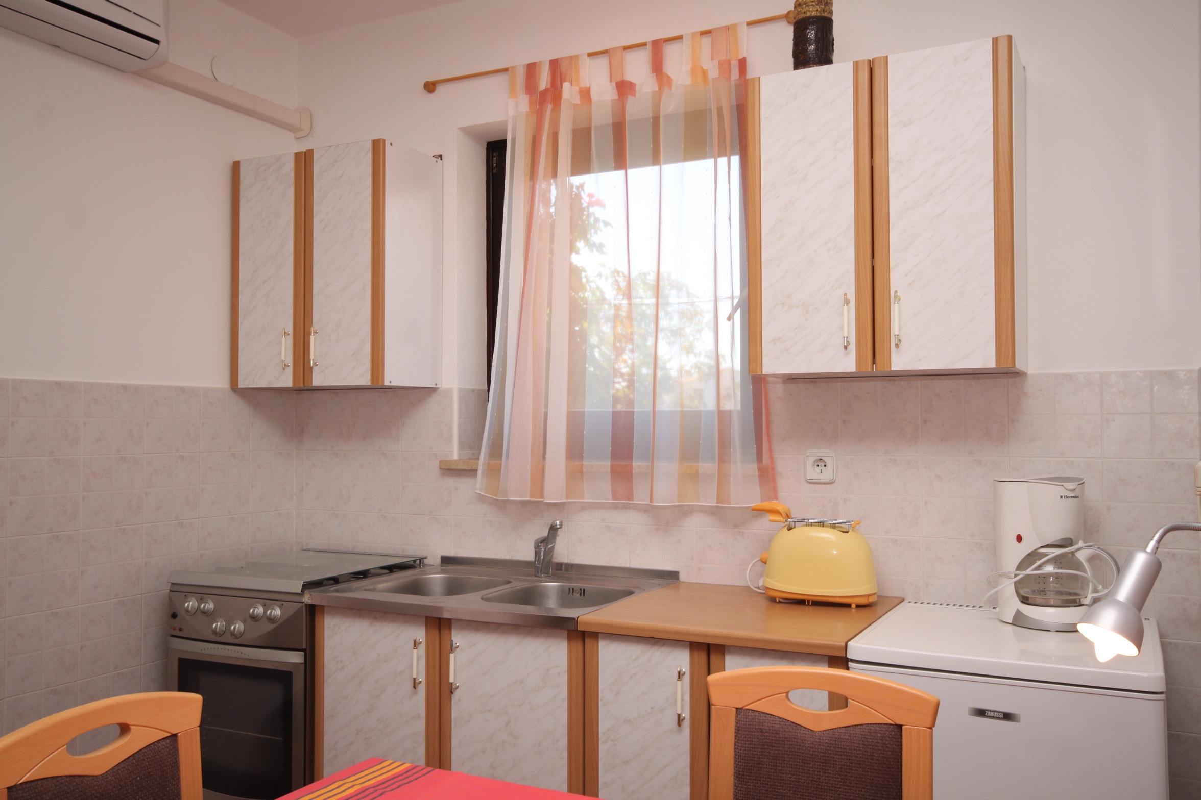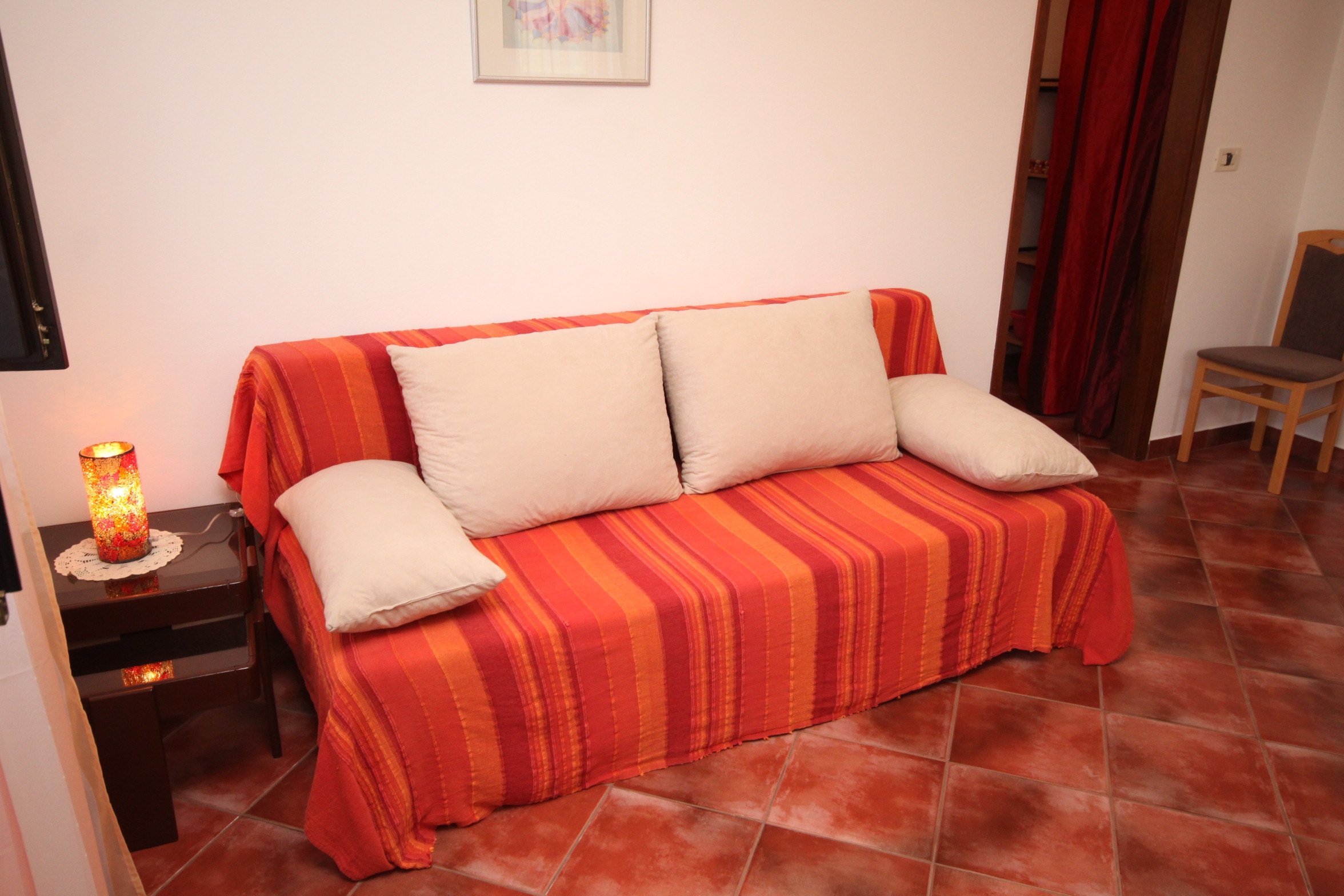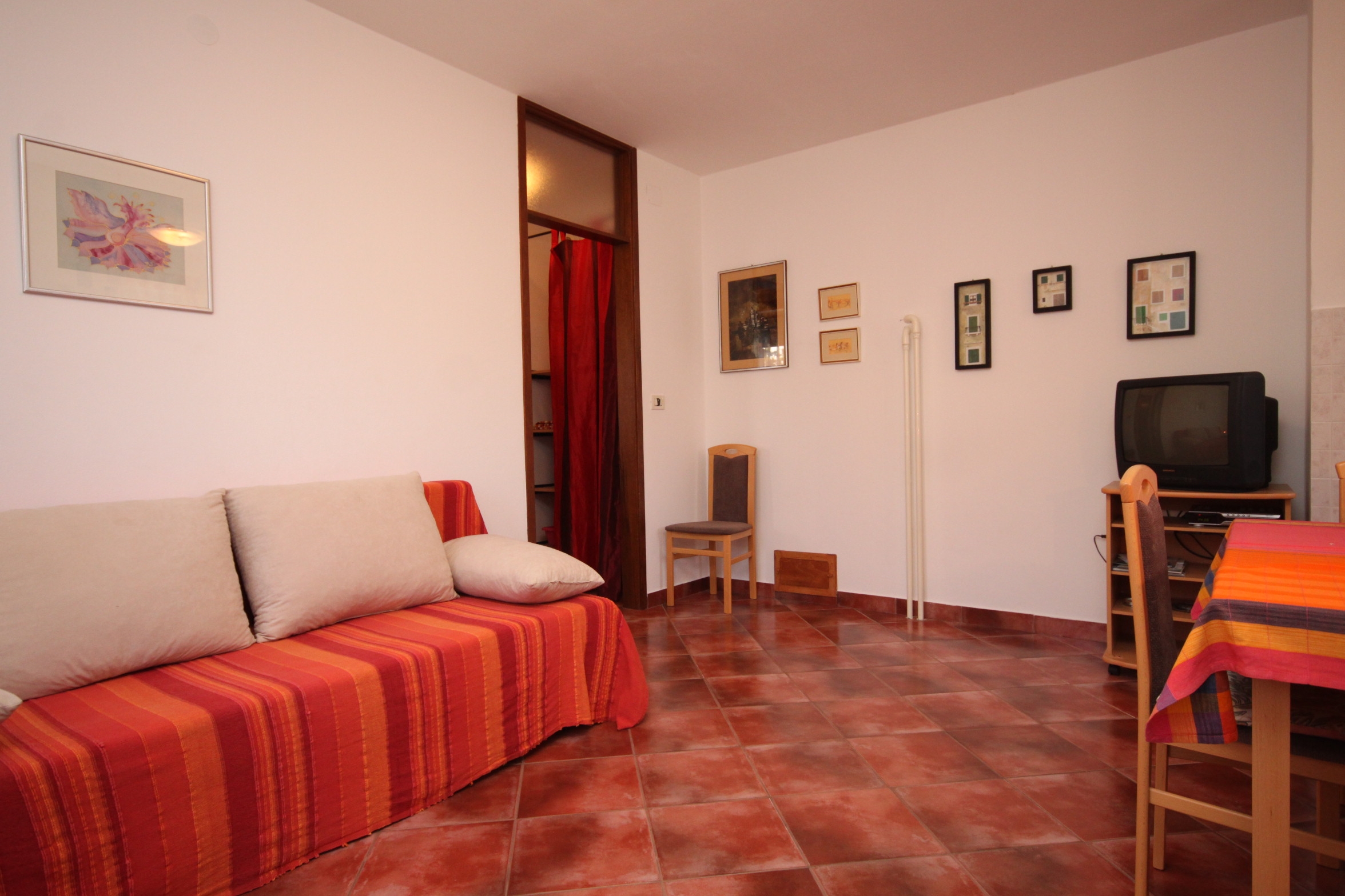 Apartment can accommodate 3 guests. Beds are situated in 1 sleeping rooms, but also in the living room, within 34m2. Guests can use a private terrace to enjoy the warm summer evenings. Food can be prepared using barbecue which is shared with other guests too. INCLUDED IN THE PRICE: tourist tax, final cleaning, air-conditioning, parking, internet, iron, hairdryer, portable barbecue. OBLIGATORY ADDITIONAL COSTS: short stay fee (surcharge depending on a number of booked nights: 30% - 1, 20% - 2, 10% - 3). The availability of additional services for your chosen dates of stay, as well as their prices (if none are listed) must be checked ahead of time. Any additional services not shown in the price calculation are payable directly to the property owner and only if used by the visitor. Discounts to the base price: free day 14=13 (for reservations of 14 or more days you get one free day for the stay until 31122026).