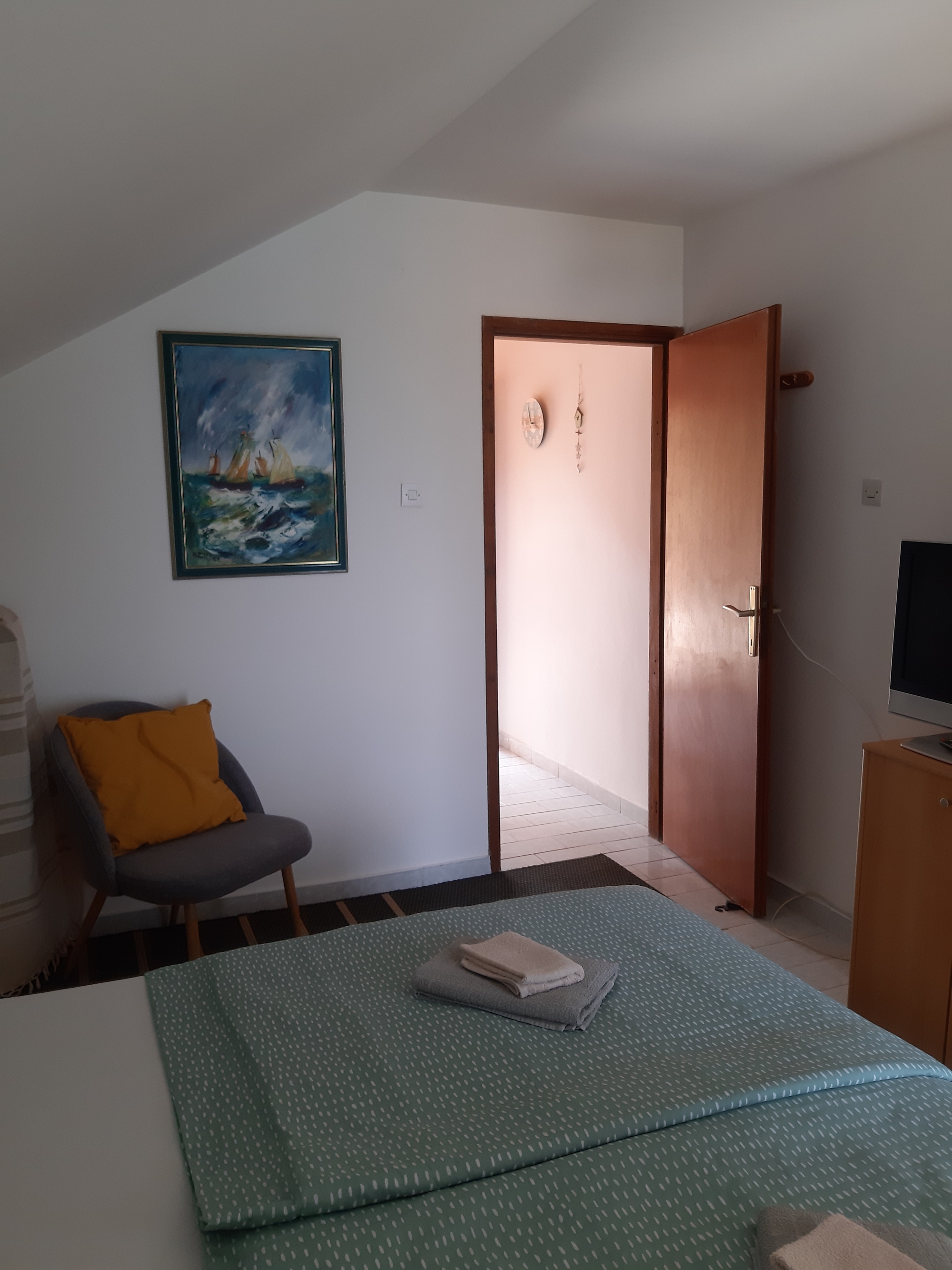 Studio flat can accommodate 3 guests. Beds are situated in 1 sleeping rooms, within 24m2. Guests can use a private terrace to enjoy the warm summer evenings. The studio offers the sea view. Food can be prepared using barbecue which is shared with other guests too. This accommodation unit welcomes pets at an additional charge. INCLUDED IN THE PRICE: tourist tax, final cleaning, air-conditioning, parking, internet, laundry, iron, hairdryer. OBLIGATORY ADDITIONAL COSTS: short stay fee (surcharge depending on a number of booked nights: 30% - 1, 20% - 2, 10% - 3). OPTIONAL ADDITIONAL COSTS: pets (€5.00 per night). The availability of additional services for your chosen dates of stay, as well as their prices (if none are listed) must be checked ahead of time. Any additional services not shown in the price calculation are payable directly to the property owner and only if used by the visitor.