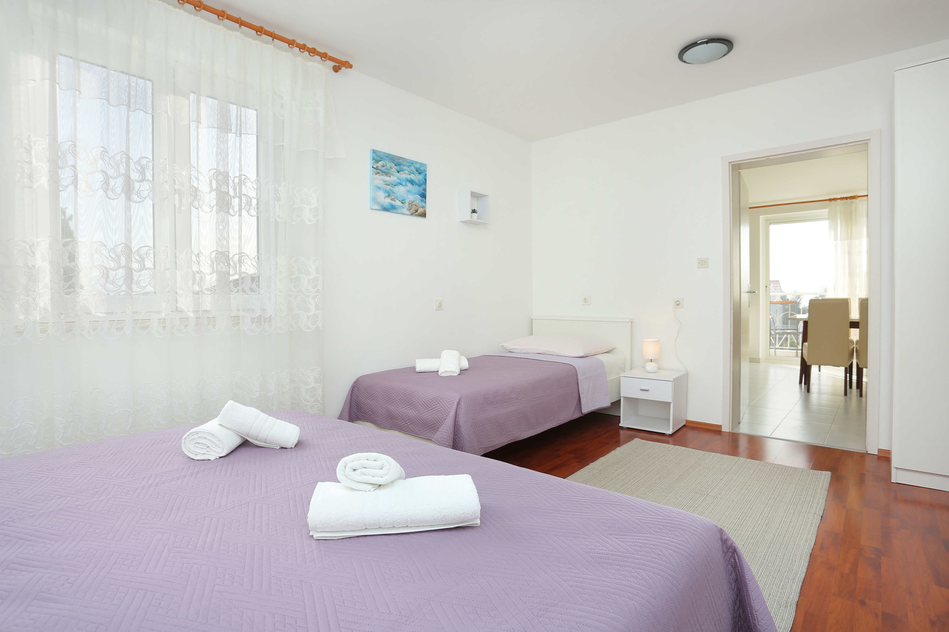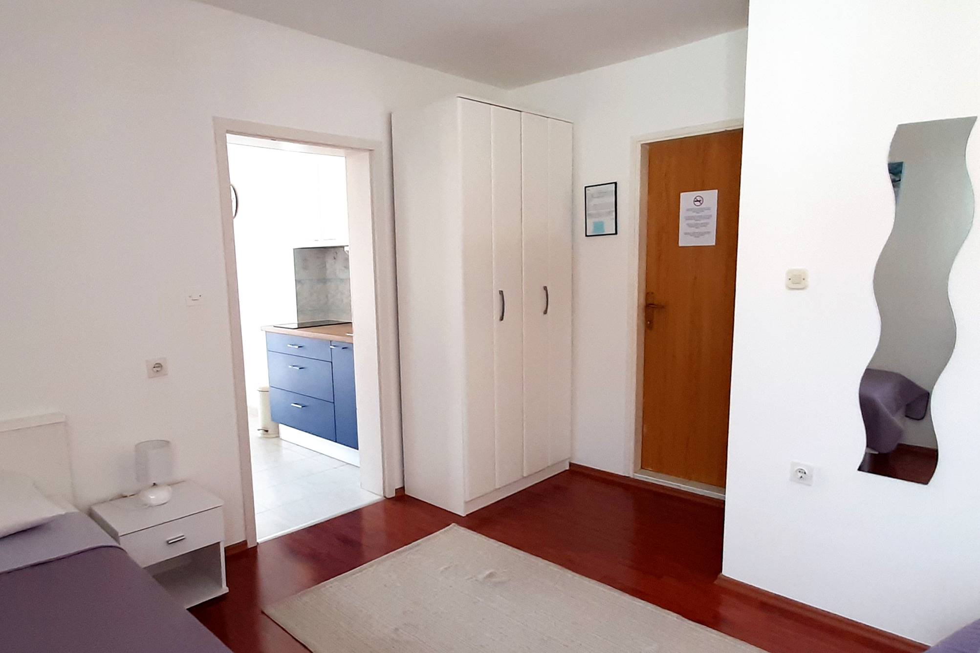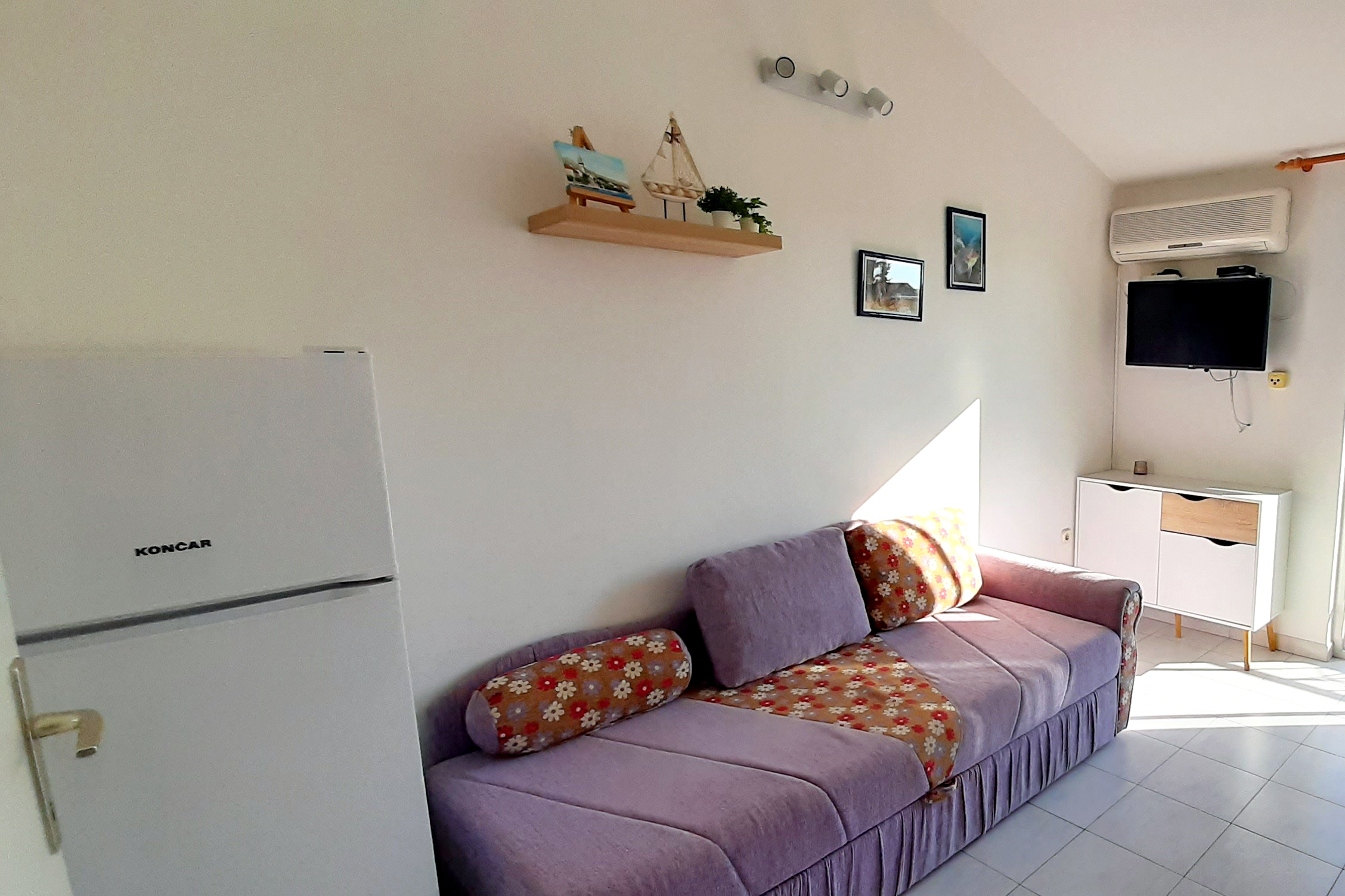 Apartment can accommodate 4 guests. Beds are situated in 1 sleeping rooms, but also in the living room, within 31m2. Guests can use a private balcony to enjoy the warm summer evenings. The apartment offers the sea view. Food can be prepared using barbecue which is shared with other guests too. Reserved accommodation unit has a shared terrace. INCLUDED IN THE PRICE: tourist tax, final cleaning, air-conditioning, parking, internet, baby cot, iron, ironing board, hairdryer. The availability of additional services for your chosen dates of stay, as well as their prices (if none are listed) must be checked ahead of time. Any additional services not shown in the price calculation are payable directly to the property owner and only if used by the visitor.