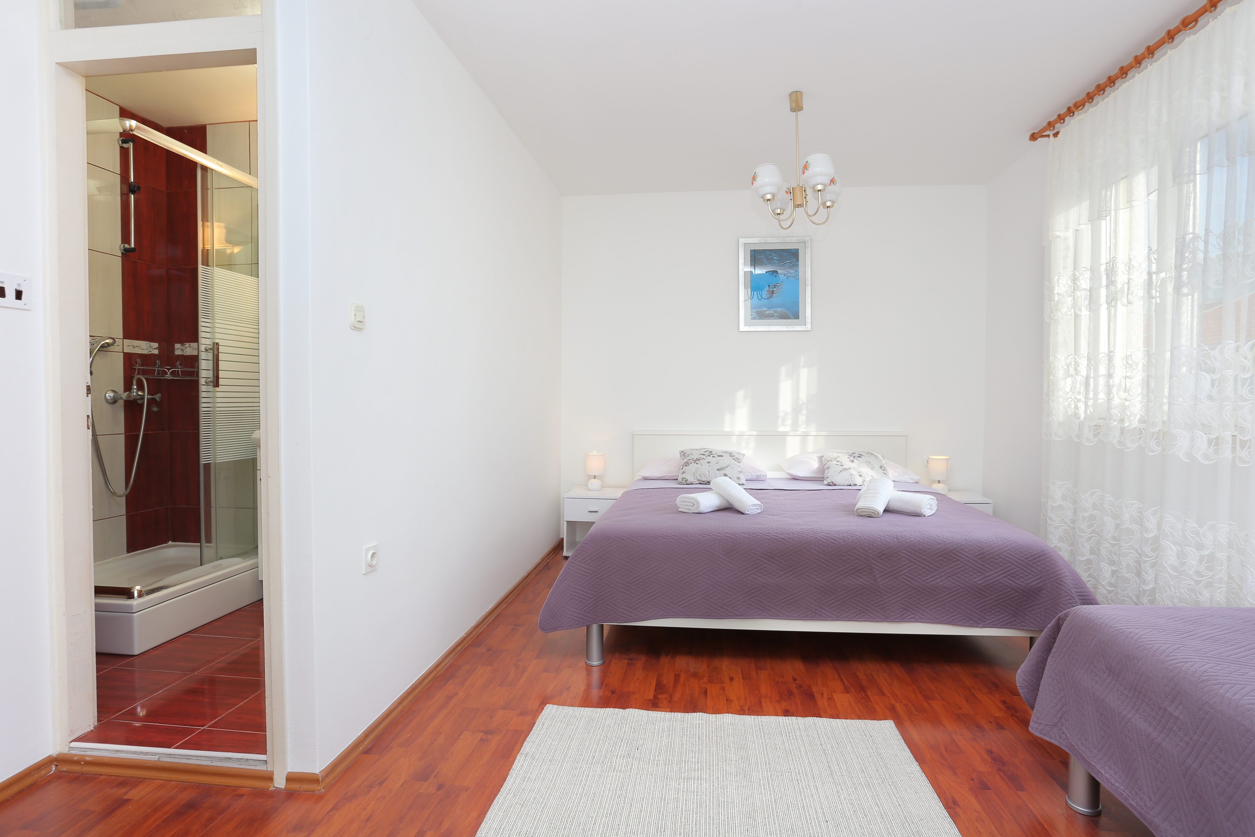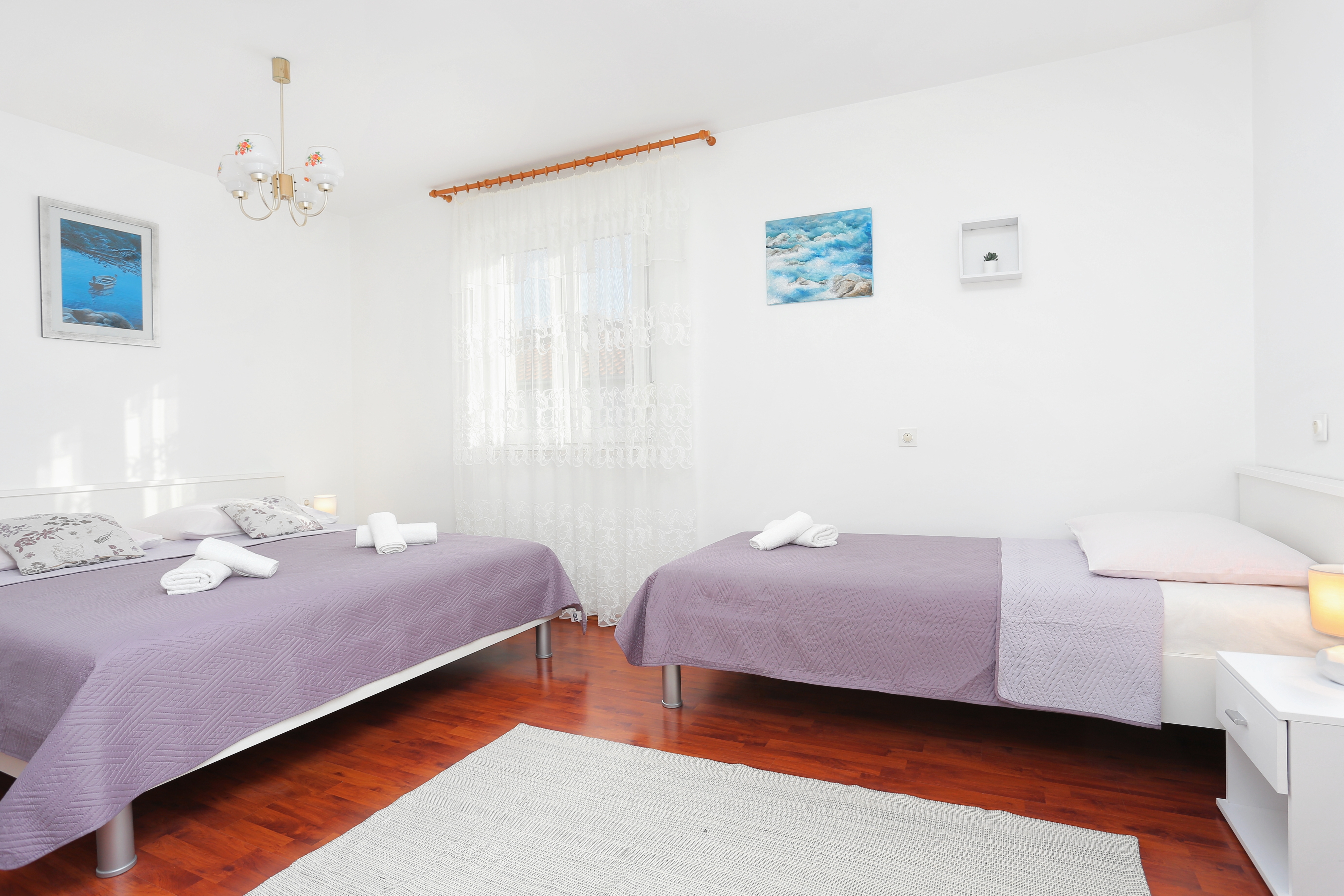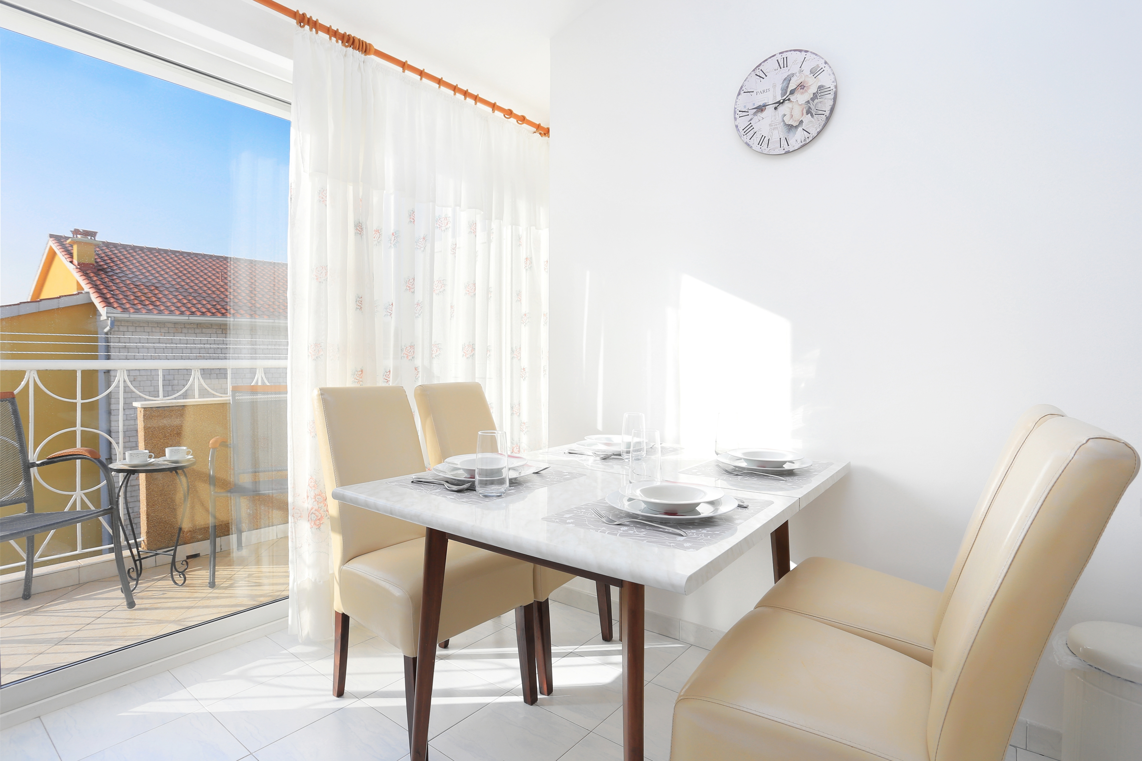 Apartment can accommodate 4 guests. Beds are situated in 1 sleeping rooms, but also in the living room, within 31m2. Guests can use a private balcony to enjoy the warm summer evenings. The apartment offers the sea view. Food can be prepared using barbecue which is shared with other guests too. Reserved accommodation unit has a shared terrace. INCLUDED IN THE PRICE: tourist tax, final cleaning, air-conditioning, parking, internet, baby cot, iron, ironing board, hairdryer. The availability of additional services for your chosen dates of stay, as well as their prices (if none are listed) must be checked ahead of time. Any additional services not shown in the price calculation are payable directly to the property owner and only if used by the visitor.