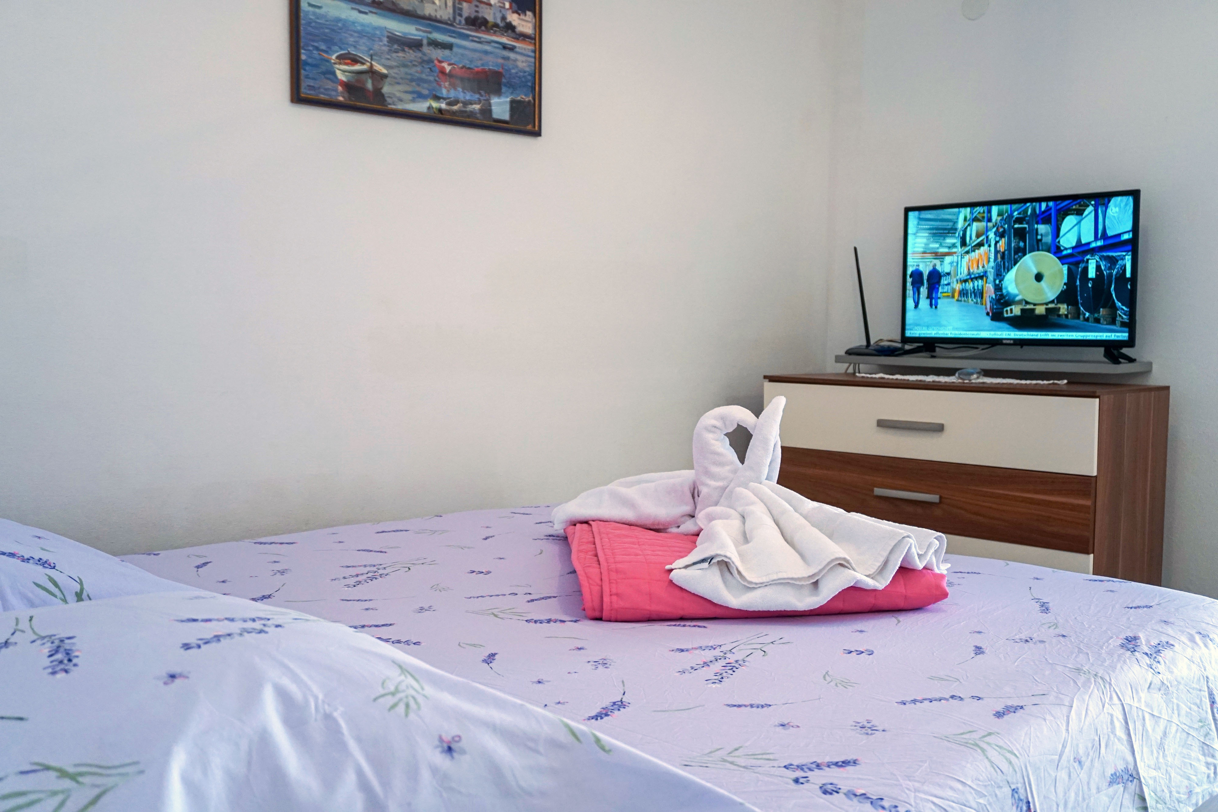 Studio flat can accommodate 2 guests. Beds are situated in 1 sleeping rooms, within 21m2. Guests can use a private terrace to enjoy the warm summer evenings. The studio offers the sea view. Food can be prepared using barbecue which is shared with other guests too. INCLUDED IN THE PRICE: tourist tax, final cleaning, air-conditioning, central heating, parking, internet, laundry, boat mooring, baby cot, iron, ironing board, hairdryer. OBLIGATORY ADDITIONAL COSTS: short stay fee (surcharge depending on a number of booked nights: 30% - 1, 20% - 2, 10% - 3). OPTIONAL ADDITIONAL COSTS: breakfast (€10.00, a 50% discount for children aged 4 to 12 years, Children up to age 4 free of charge), half-board (€30.00, a 50% discount for children aged 4 to 12 years, Children up to age 4 free of charge). The availability of additional services for your chosen dates of stay, as well as their prices (if none are listed) must be checked ahead of time. Any additional services not shown in the price calculation are payable directly to the property owner and only if used by the visitor. Discounts to the base price: free day 14=13 (for reservations of 14 or more days you get one free day for the stay until 31122026).