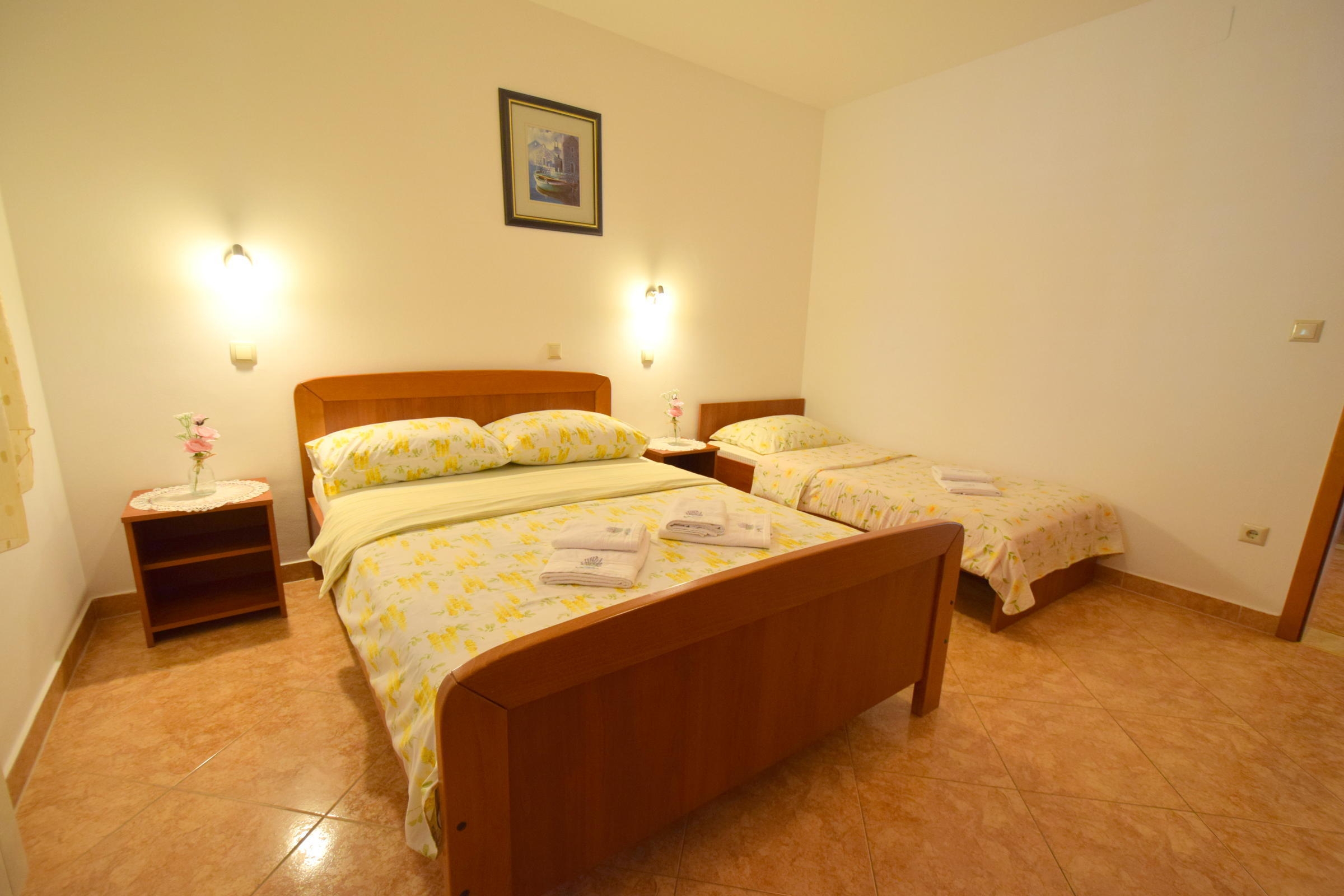 Apartment can accommodate 4 guests. Beds are situated in 2 sleeping rooms, within 55m2. Guests can use a private terrace to enjoy the warm summer evenings. The apartment offers the sea view. Food can be prepared using barbecue which is shared with other guests too. This accommodation unit welcomes pets at an additional charge. INCLUDED IN THE PRICE: tourist tax, final cleaning, air-conditioning, central heating, parking, internet, iron, portable barbecue. OBLIGATORY ADDITIONAL COSTS: short stay fee (surcharge depending on a number of booked nights: 30% - 1, 20% - 2, 10% - 3). OPTIONAL ADDITIONAL COSTS: pets (€10.00 per night). The availability of additional services for your chosen dates of stay, as well as their prices (if none are listed) must be checked ahead of time. Any additional services not shown in the price calculation are payable directly to the property owner and only if used by the visitor.