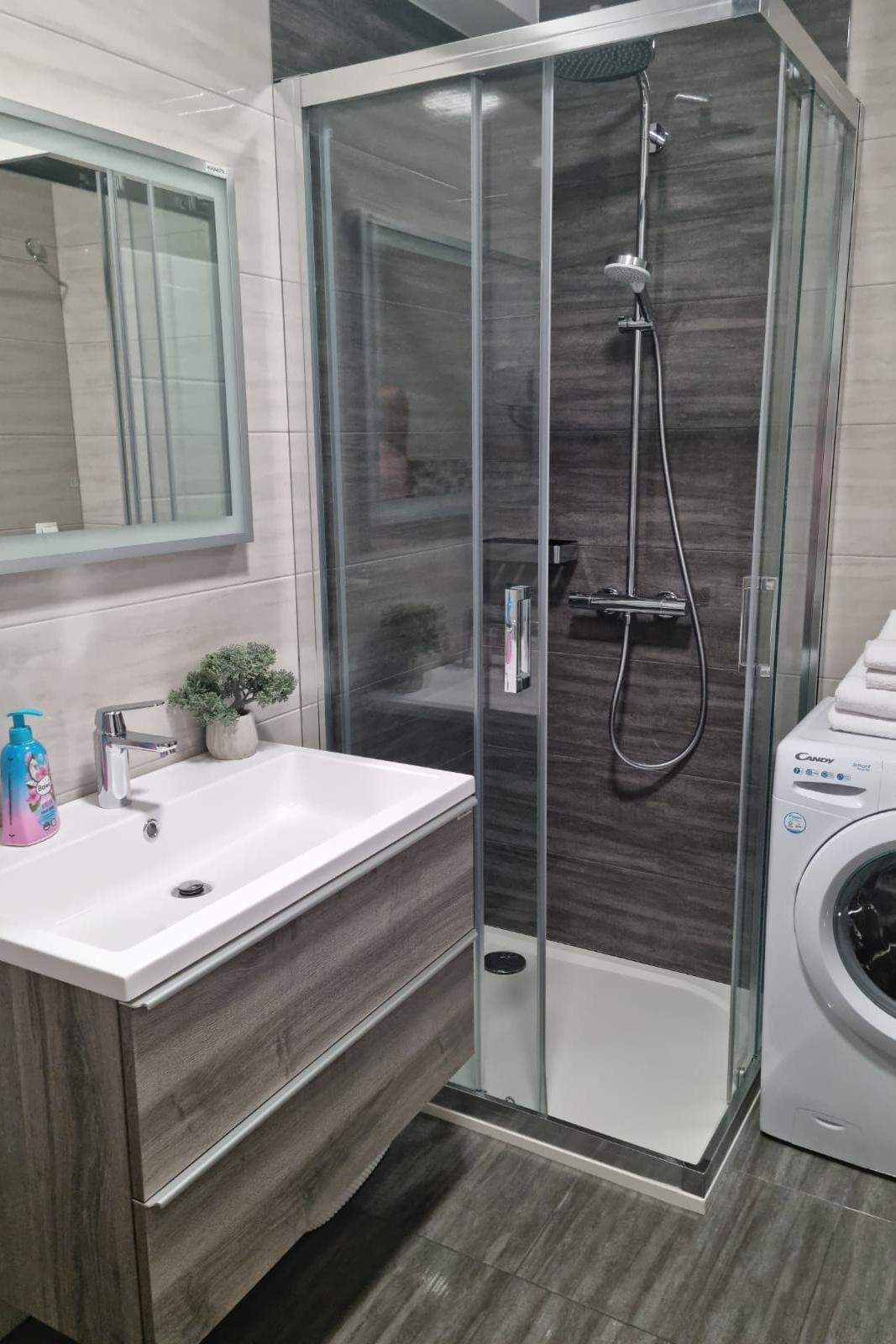 Apartment can accommodate 6 guests. Beds are situated in 2 sleeping rooms, but also in the living room, within 67m2. Food can be prepared using barbecue which is shared with other guests too. There is no balcony or terrace in the reserved accommodation unit. INCLUDED IN THE PRICE: tourist tax, final cleaning, air-conditioning, parking, internet, baby cot, iron, ironing board, hairdryer. OBLIGATORY ADDITIONAL COSTS: short stay fee (surcharge depending on a number of booked nights: 30% - 1, 20% - 2, 10% - 3). OPTIONAL ADDITIONAL COSTS: additional bed (€30.00 per night). The availability of additional services for your chosen dates of stay, as well as their prices (if none are listed) must be checked ahead of time. Any additional services not shown in the price calculation are payable directly to the property owner and only if used by the visitor.