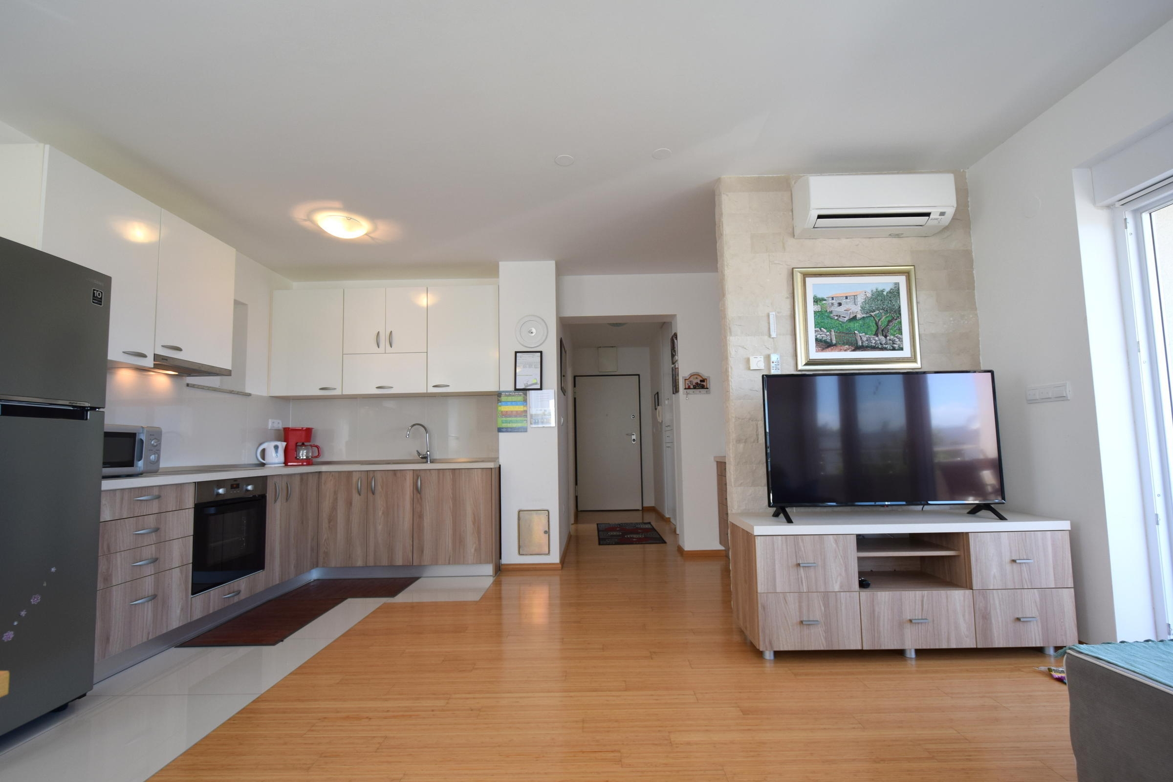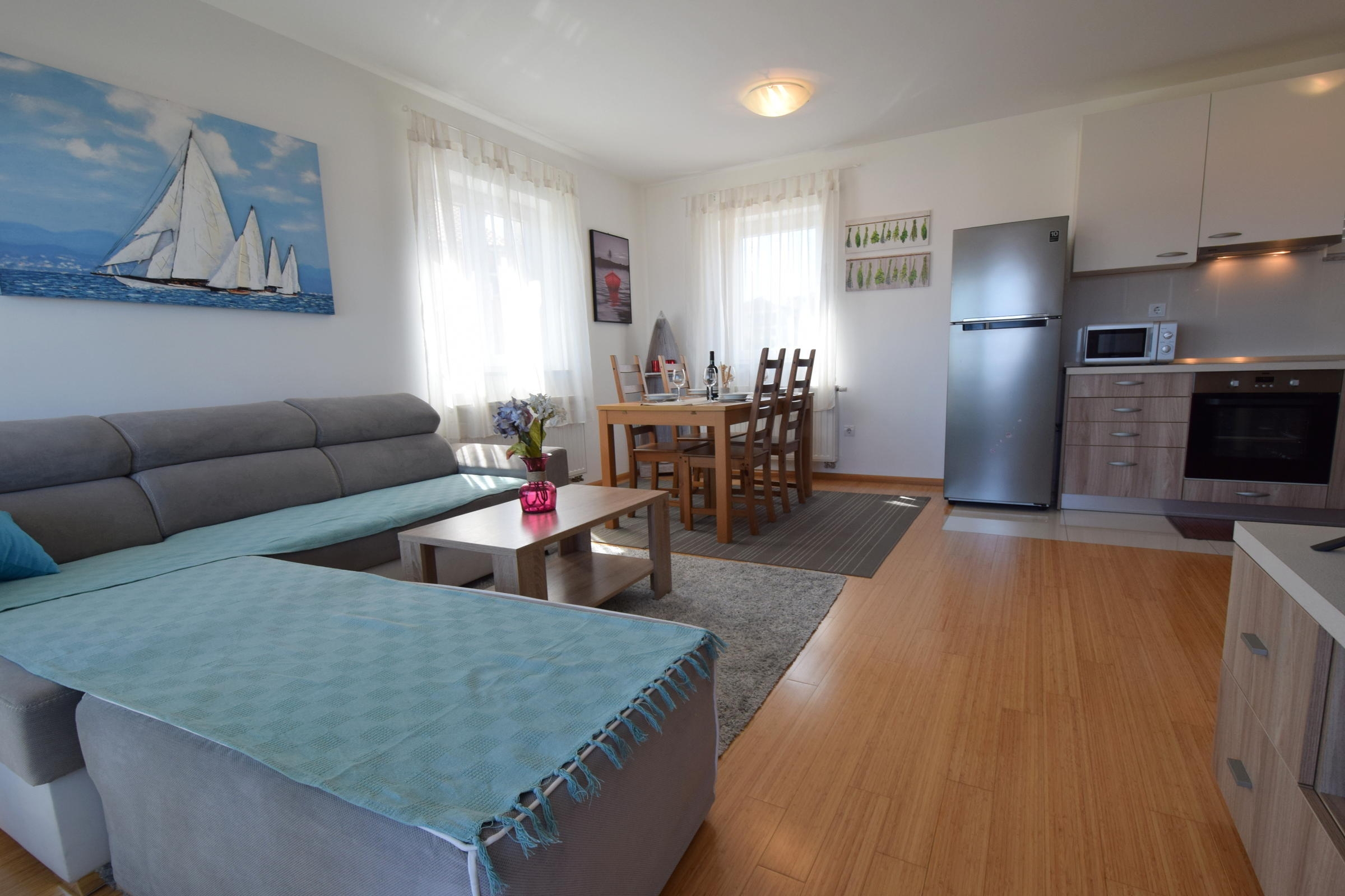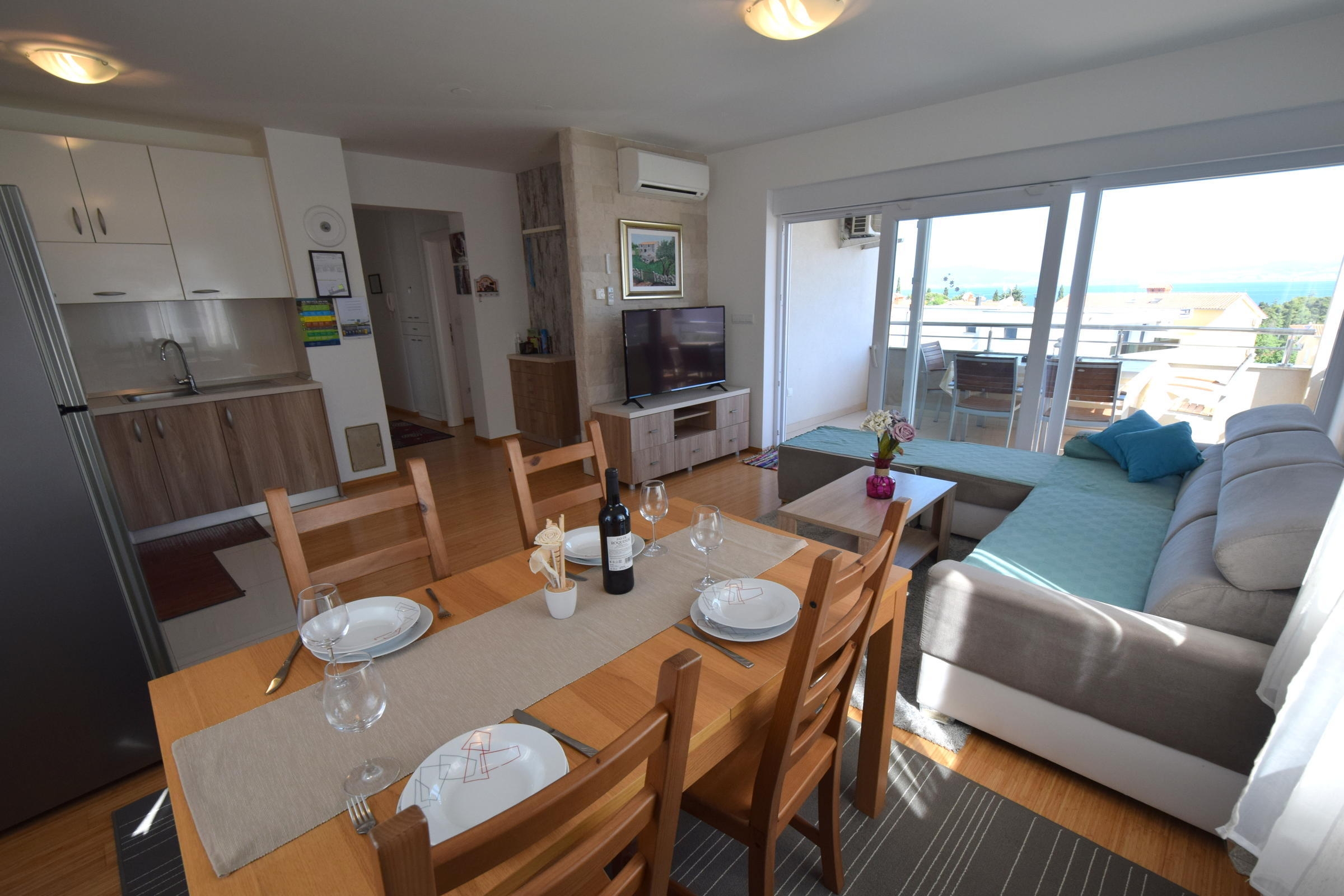 Apartment can accommodate 4 guests. Beds are situated in 2 sleeping rooms, within 60m2. Guests can use a private terrace to enjoy the warm summer evenings. INCLUDED IN THE PRICE: tourist tax, final cleaning, air-conditioning, parking, internet, iron, ironing board, hairdryer. OBLIGATORY ADDITIONAL COSTS: short stay fee (surcharge depending on a number of booked nights: 30% - 1, 20% - 2, 10% - 3). The availability of additional services for your chosen dates of stay, as well as their prices (if none are listed) must be checked ahead of time. Any additional services not shown in the price calculation are payable directly to the property owner and only if used by the visitor.