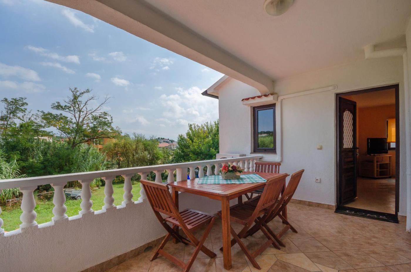 One-Bedroom Apartment with Balcony. Featuring 1 bedroom and 1 bathroom, this apartment offers a living room and terraceyou can relax. Guests will find a stovetop, a refrigerator, kitchenware and an oven in the well-fitted kitchen. The apartment also provides guests with a barbecue. Boasting a balcony with garden views, this apartment also provides air conditioning and a TV with satellite channels. The unit has 2 beds and 1 futon. ;