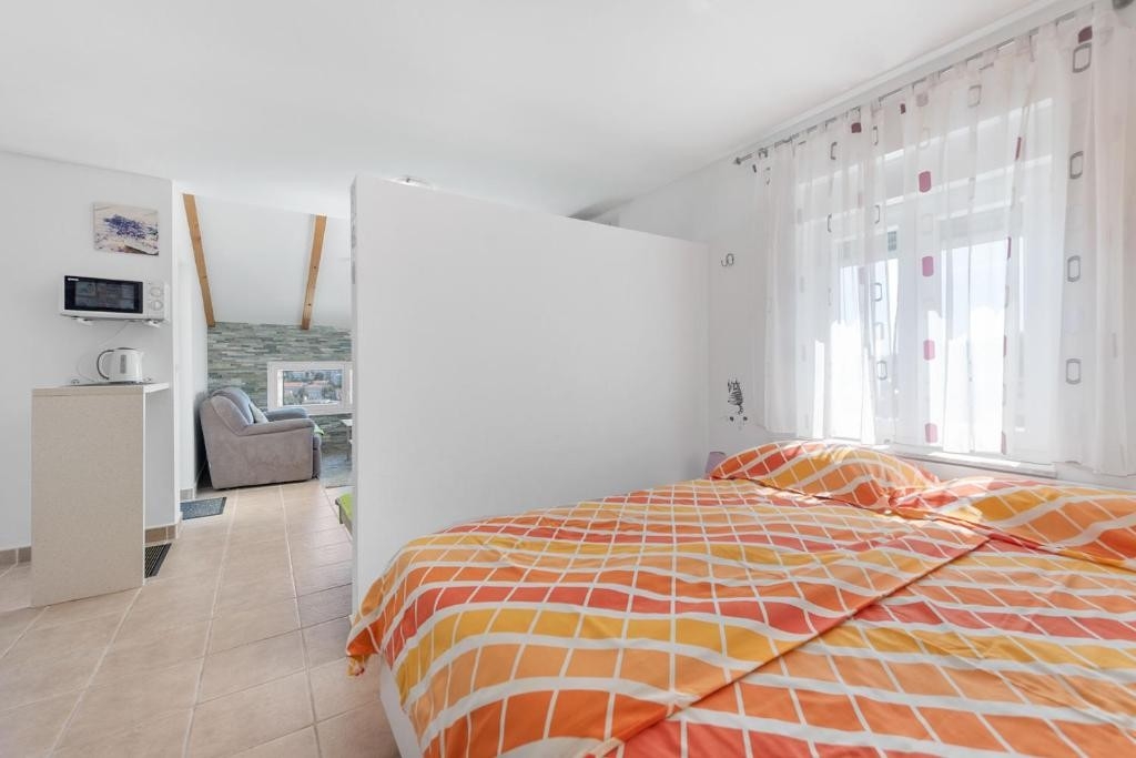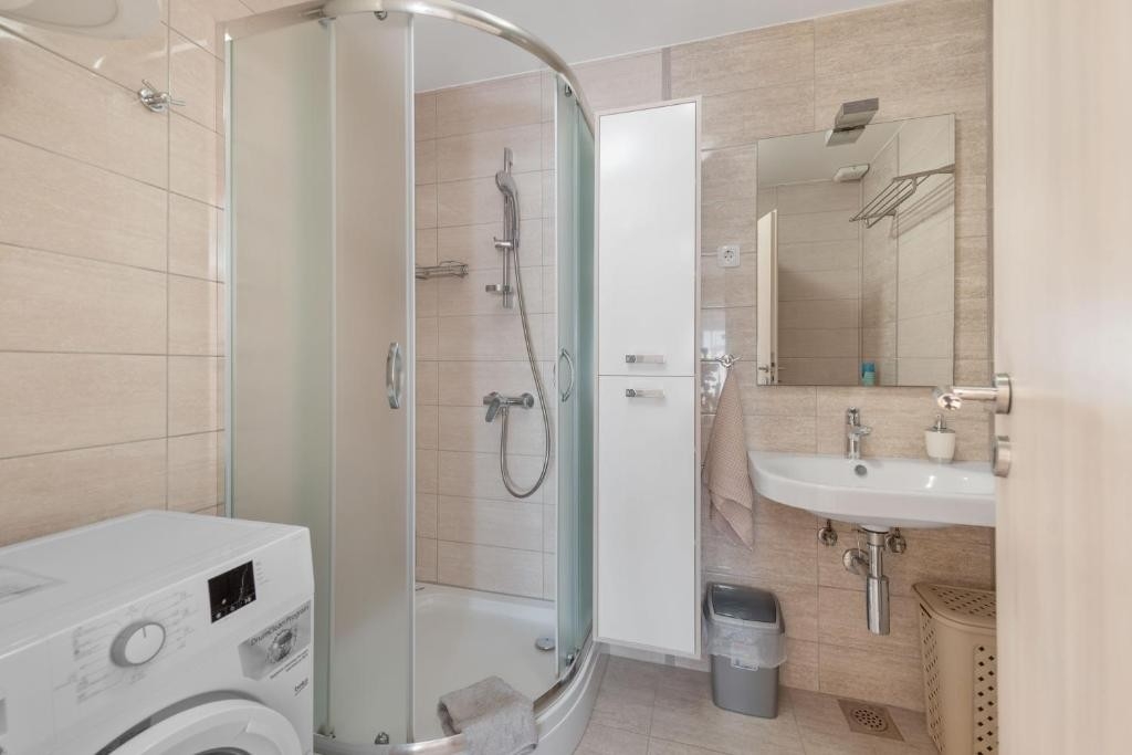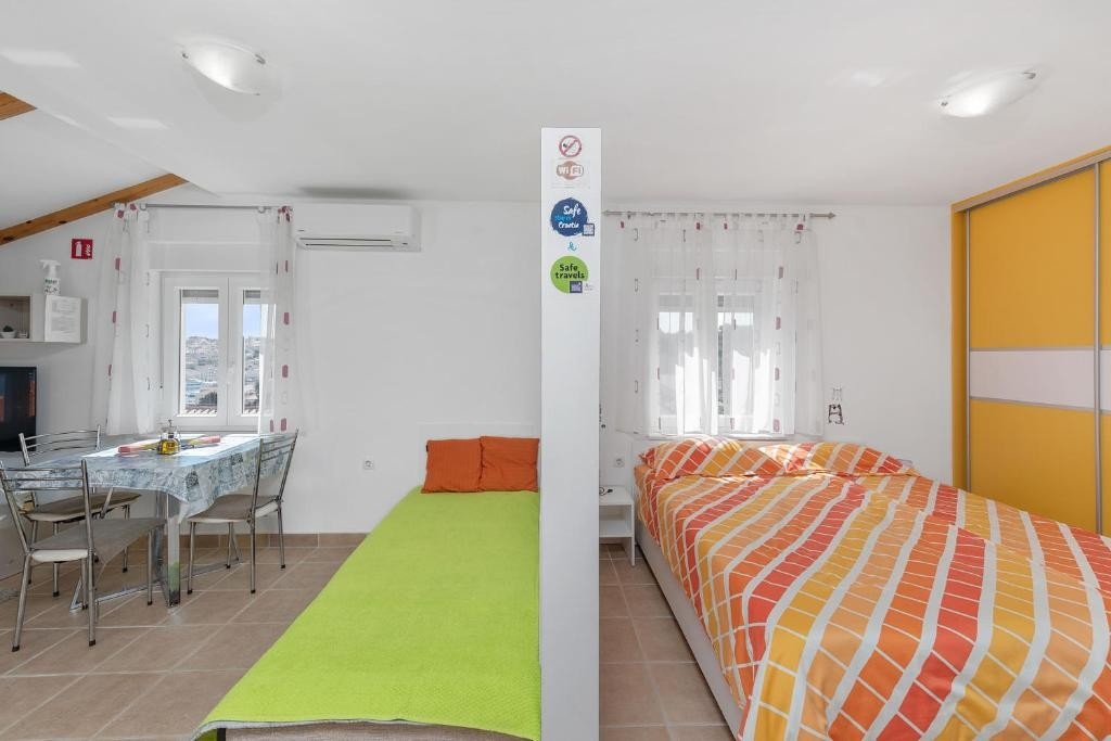 Studio flat can accommodate 3 guests. Beds are situated in 1 sleeping rooms, but also in the living room, within 35m2. Guests can use a private terrace to enjoy the warm summer evenings. The studio offers the sea view. INCLUDED IN THE PRICE: tourist tax, final cleaning, air-conditioning, parking, internet, hairdryer. The availability of additional services for your chosen dates of stay, as well as their prices (if none are listed) must be checked ahead of time. Any additional services not shown in the price calculation are payable directly to the property owner and only if used by the visitor.