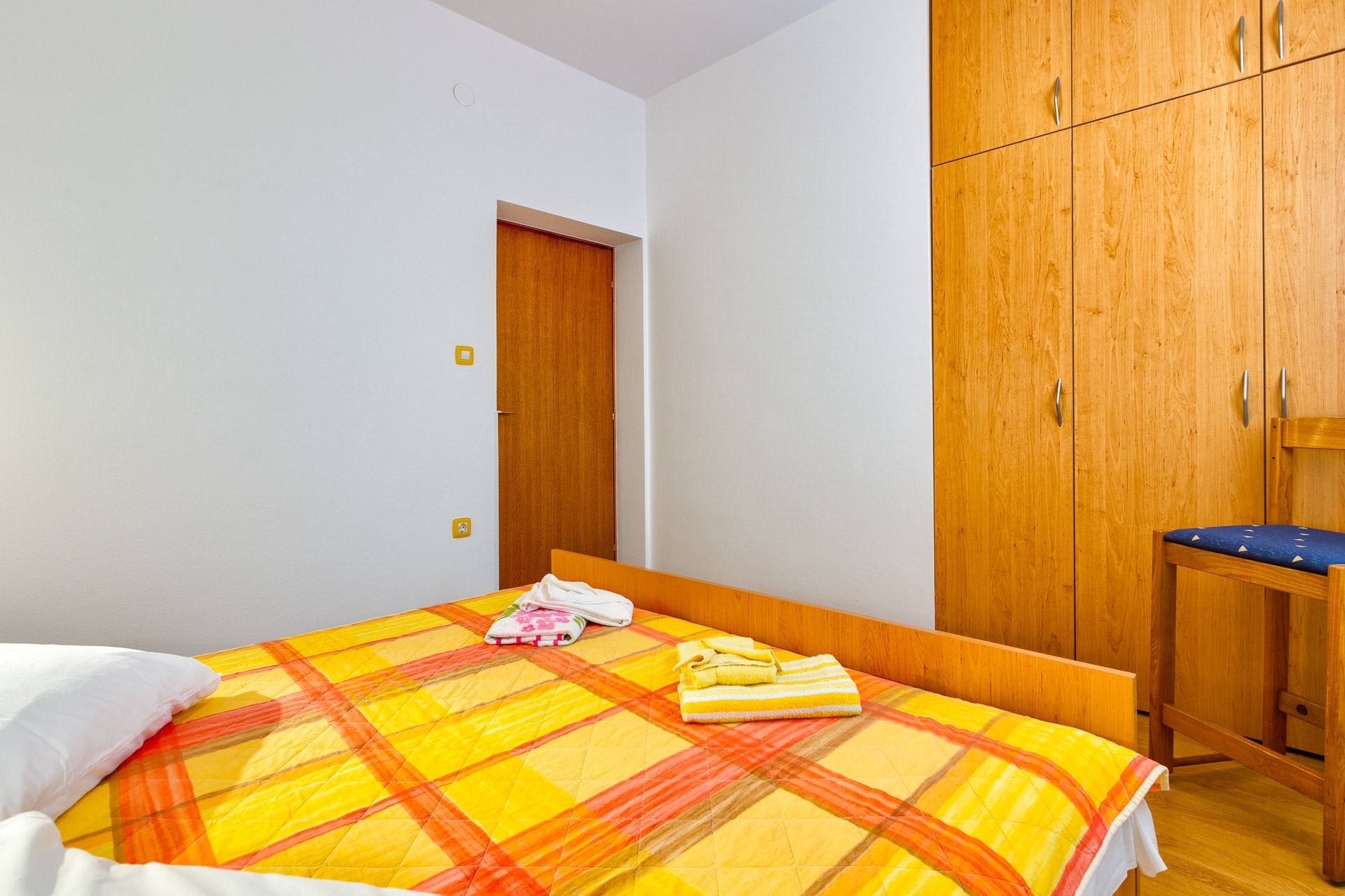 Apartment can accommodate 4 guests. Beds are situated in 2 sleeping rooms, within 49m2. Guests can use a private terrace to enjoy the warm summer evenings. The apartment offers the sea view. Food can be prepared using barbecue which is shared with other guests too. This accommodation unit welcomes pets at an additional charge. INCLUDED IN THE PRICE: tourist tax, final cleaning, air-conditioning, parking, internet, laundry, iron, ironing board, hairdryer. OBLIGATORY ADDITIONAL COSTS: short stay fee (surcharge depending on a number of booked nights: 30% - 1, 20% - 2, 10% - 3). OPTIONAL ADDITIONAL COSTS: pets (€25.00 per night), additional bed (€25.00 per night). The availability of additional services for your chosen dates of stay, as well as their prices (if none are listed) must be checked ahead of time. Any additional services not shown in the price calculation are payable directly to the property owner and only if used by the visitor. Discounts to the base price: free day 14=13 (for reservations of 14 or more days you get one free day for the stay until 31122026).