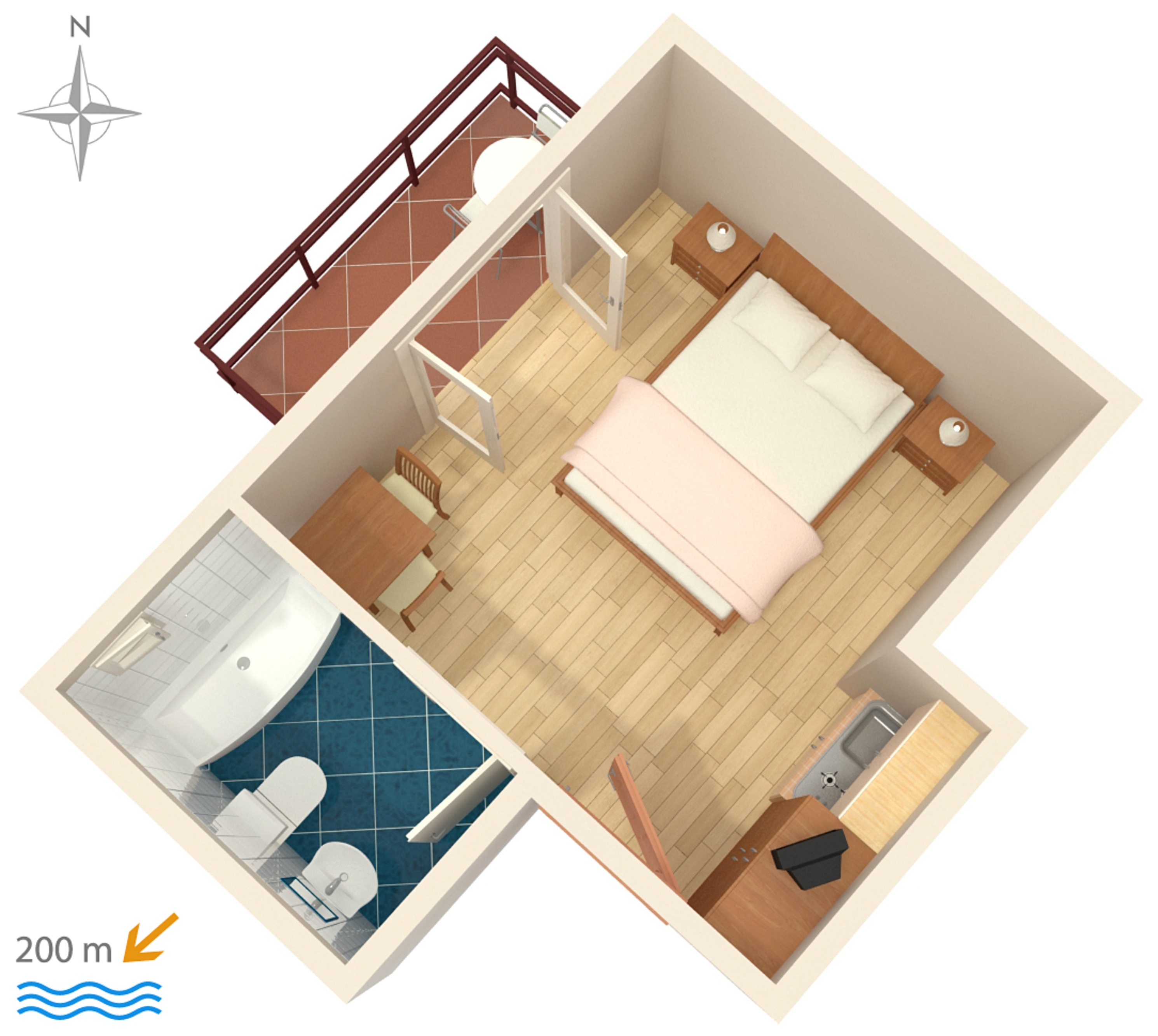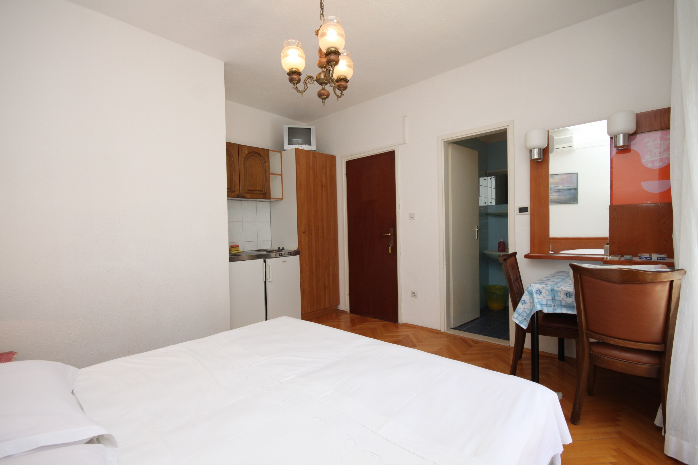 Studio flat can accommodate 2 guests. Beds are situated in 1 sleeping rooms, within 15m2. Guests can use a private balcony to enjoy the warm summer evenings. Food can be prepared using barbecue which is shared with other guests too. INCLUDED IN THE PRICE: tourist tax, final cleaning, air-conditioning, parking, internet, iron, ironing board, hairdryer. OBLIGATORY ADDITIONAL COSTS: short stay fee (surcharge depending on a number of booked nights: 30% - 1, 20% - 2, 10% - 3). The availability of additional services for your chosen dates of stay, as well as their prices (if none are listed) must be checked ahead of time. Any additional services not shown in the price calculation are payable directly to the property owner and only if used by the visitor. Discounts to the base price: free day 28=25 (for stays of 28 days or more, we give you 3 days free of charge for the stay until 31122026).