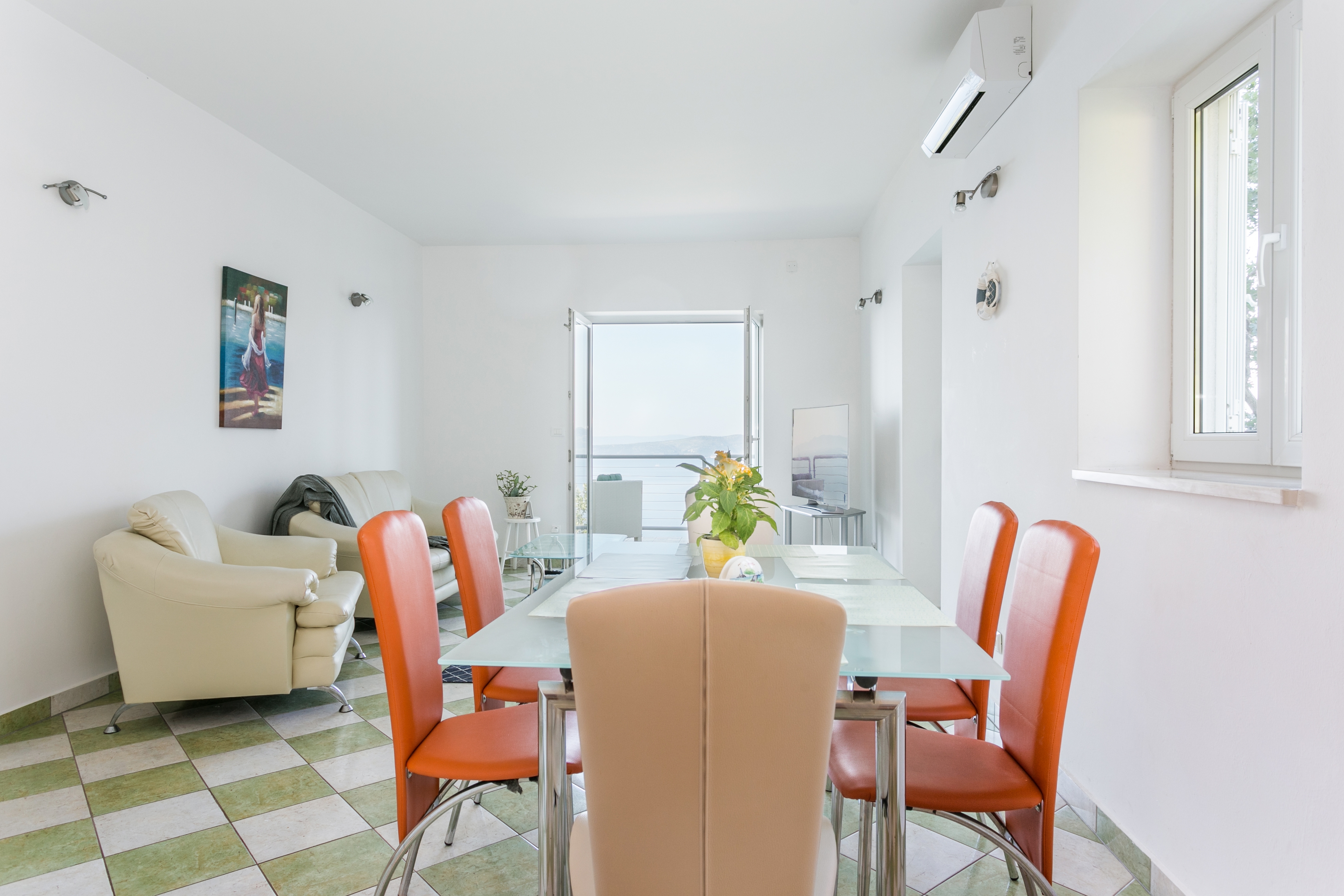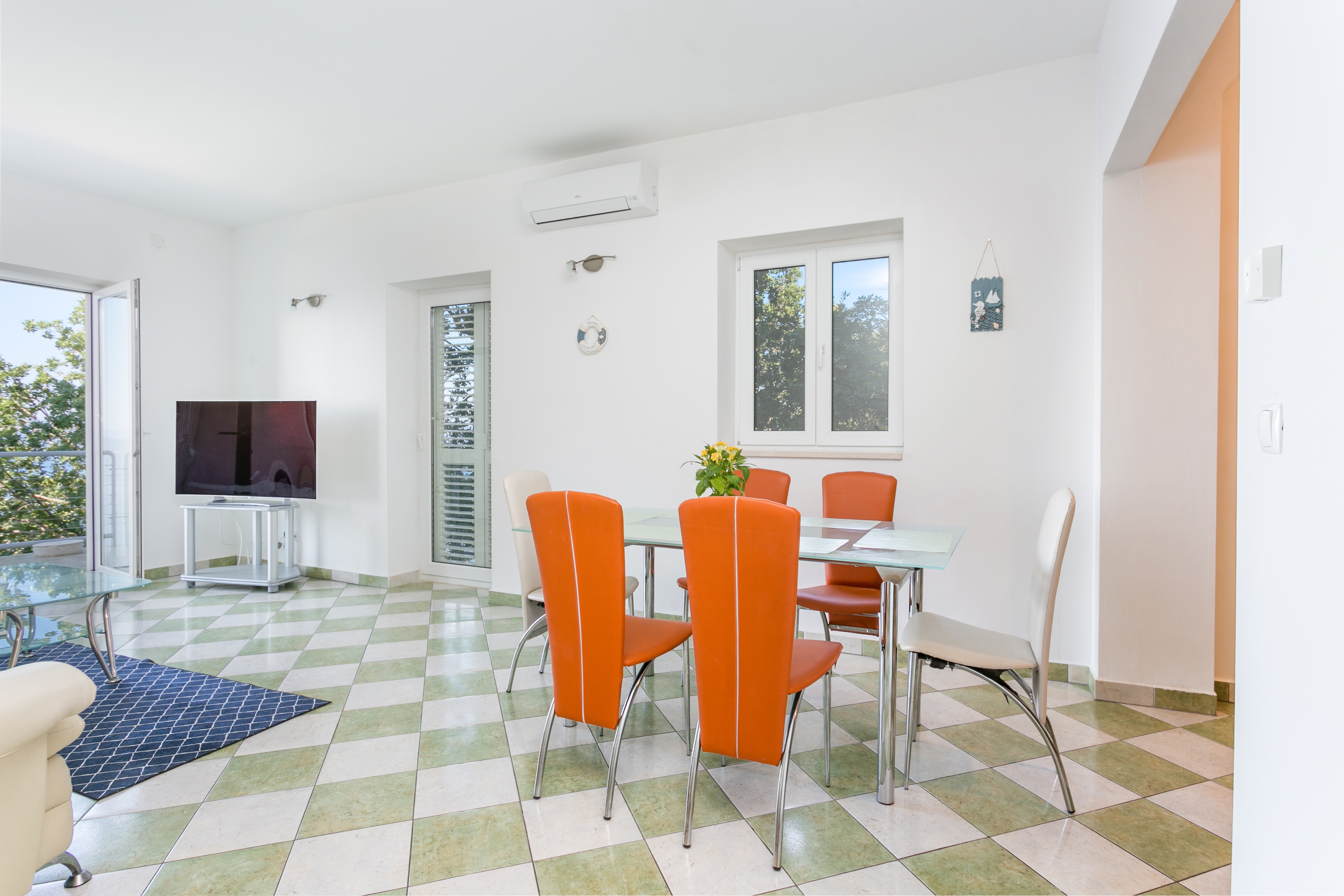 Apartment can accommodate 7 guests. Beds are situated in 2 sleeping rooms, but also in the living room, within 77m2. Guests can use a private terrace to enjoy the warm summer evenings. The apartment offers the sea view. Food can be prepared using barbecue which is shared with other guests too. Shared pool is on disposal during stay. INCLUDED IN THE PRICE: tourist tax, final cleaning, air-conditioning, pool, parking, internet, iron, hairdryer. OBLIGATORY ADDITIONAL COSTS: short stay fee (surcharge depending on a number of booked nights: 30% - 1, 20% - 2, 10% - 3). OPTIONAL ADDITIONAL COSTS: laundry (€5.00 washing). The availability of additional services for your chosen dates of stay, as well as their prices (if none are listed) must be checked ahead of time. Any additional services not shown in the price calculation are payable directly to the property owner and only if used by the visitor. Discounts to the base price: free day 14=13 (for reservations of 14 or more days you get one free day for the stay until 31122026).