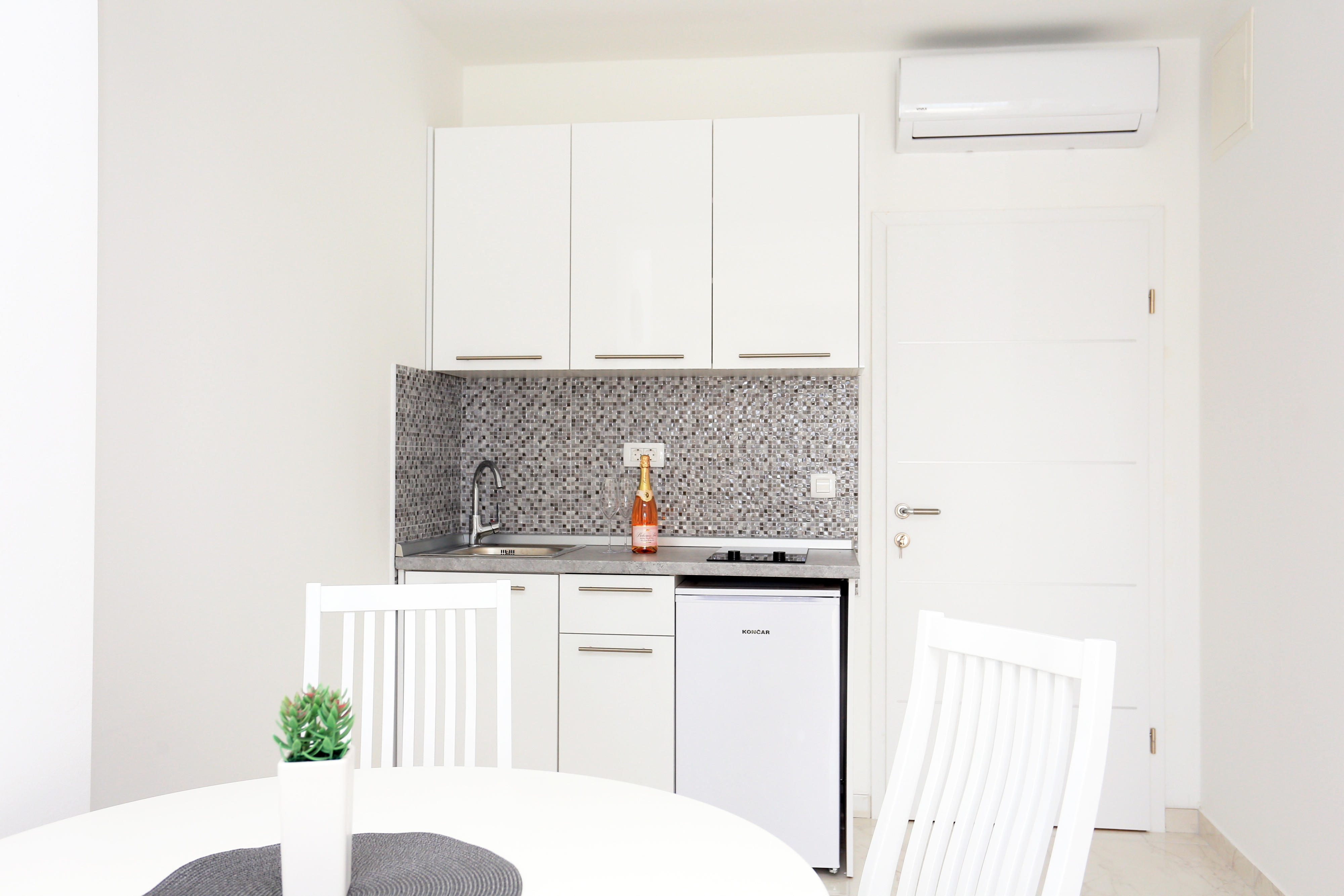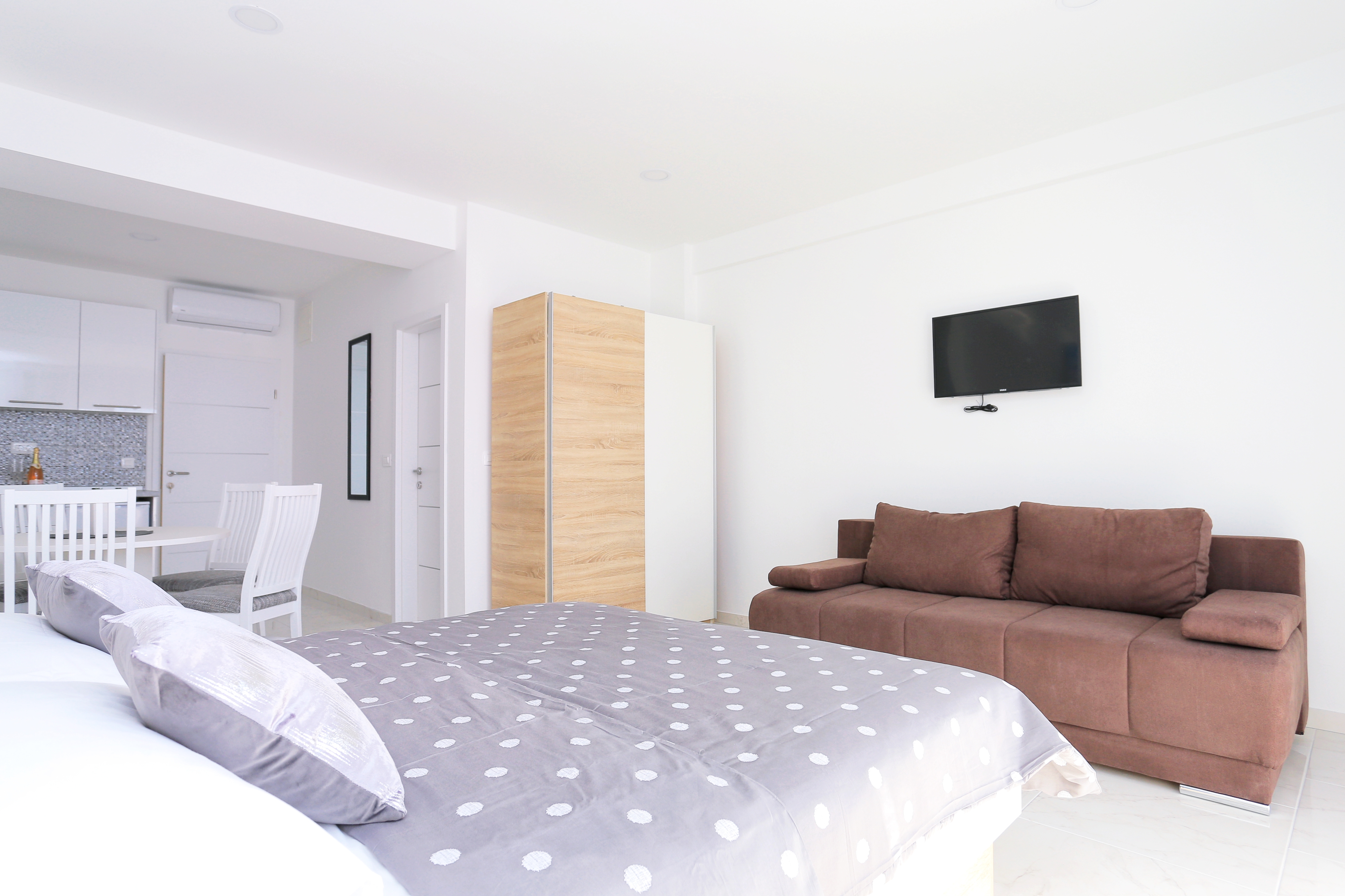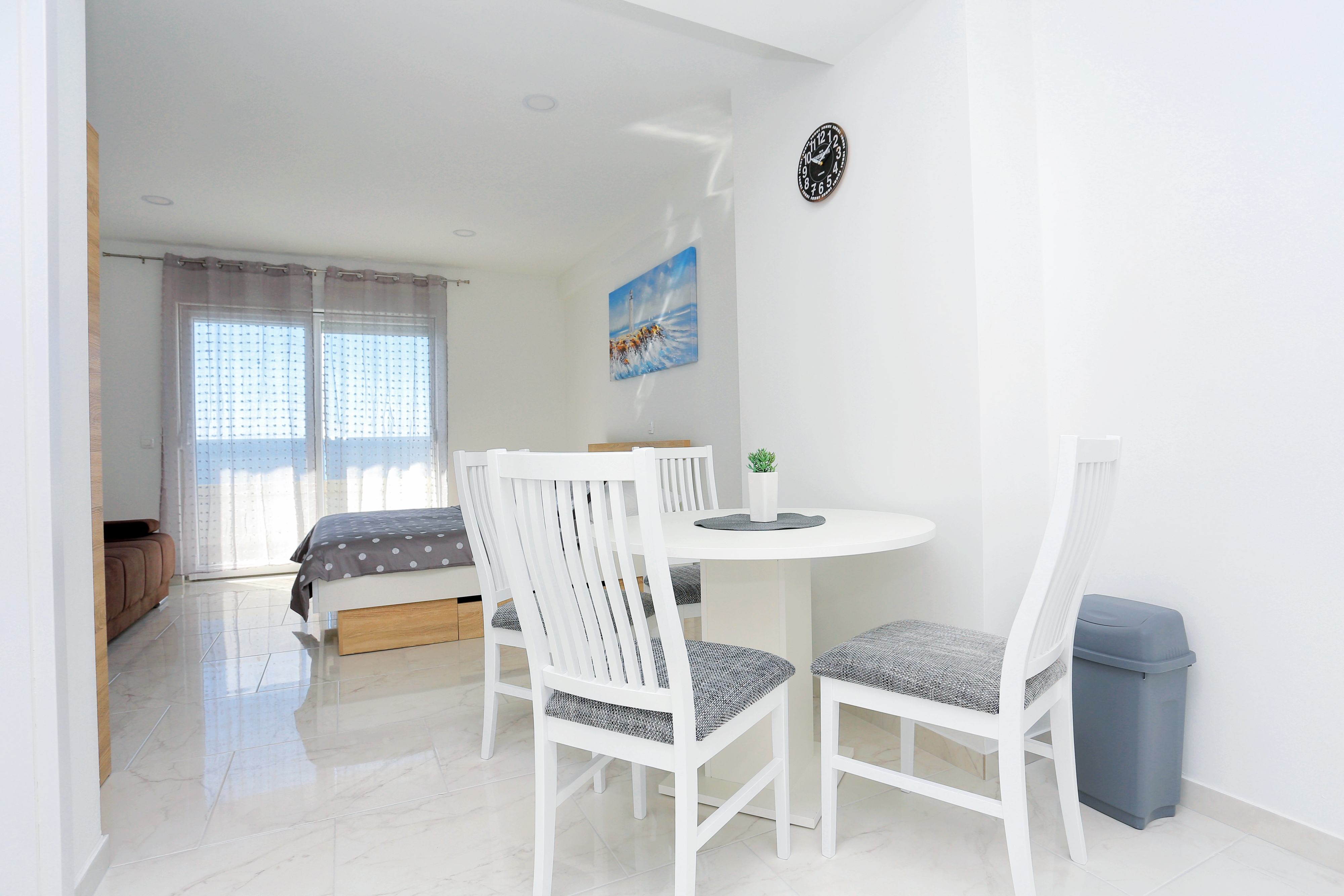 Studio flat can accommodate 3 guests. Beds are situated in 1 sleeping rooms, within 30m2. Guests can use a private terrace to enjoy the warm summer evenings. The studio offers the sea view. Shared pool is on disposal during stay. INCLUDED IN THE PRICE: tourist tax, final cleaning, air-conditioning, pool, parking, internet, iron, ironing board, hairdryer. OBLIGATORY ADDITIONAL COSTS: short stay fee (surcharge depending on a number of booked nights: 30% - 1, 20% - 2, 10% - 3). The availability of additional services for your chosen dates of stay, as well as their prices (if none are listed) must be checked ahead of time. Any additional services not shown in the price calculation are payable directly to the property owner and only if used by the visitor. Discounts to the base price: free day 21=19 (for reservations of 21 or more days you get 2 free days for the stay until 31122026).