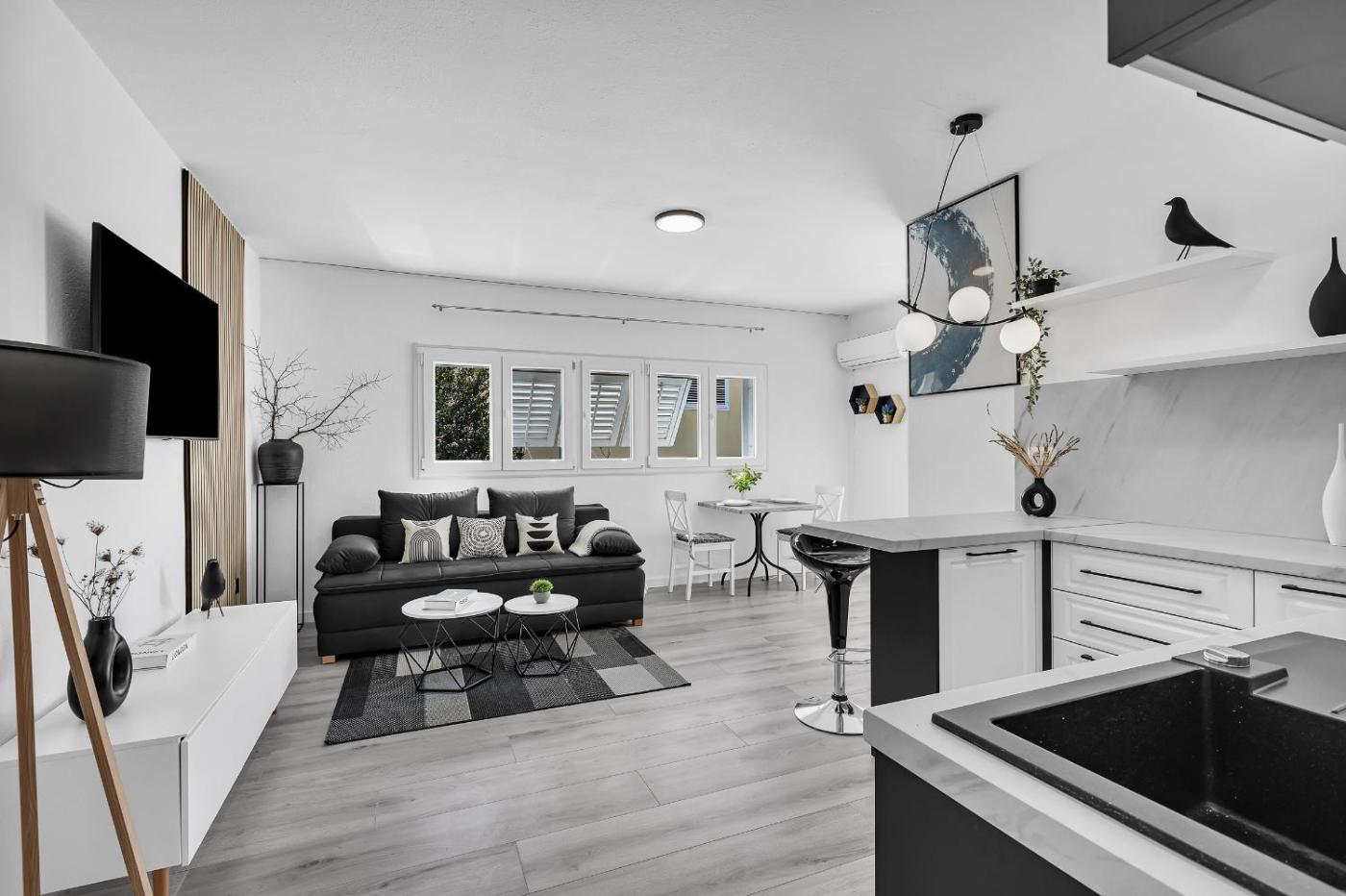 Located in Makarska and only 700 metres from Makarska Beach, Mediterranean Living 3 provides accommodation with mountain views, free WiFi and free private parking. This apartment features air-conditioned accommodation with a balcony. The property is non-smoking and is situated 34 km from Blue Lake.