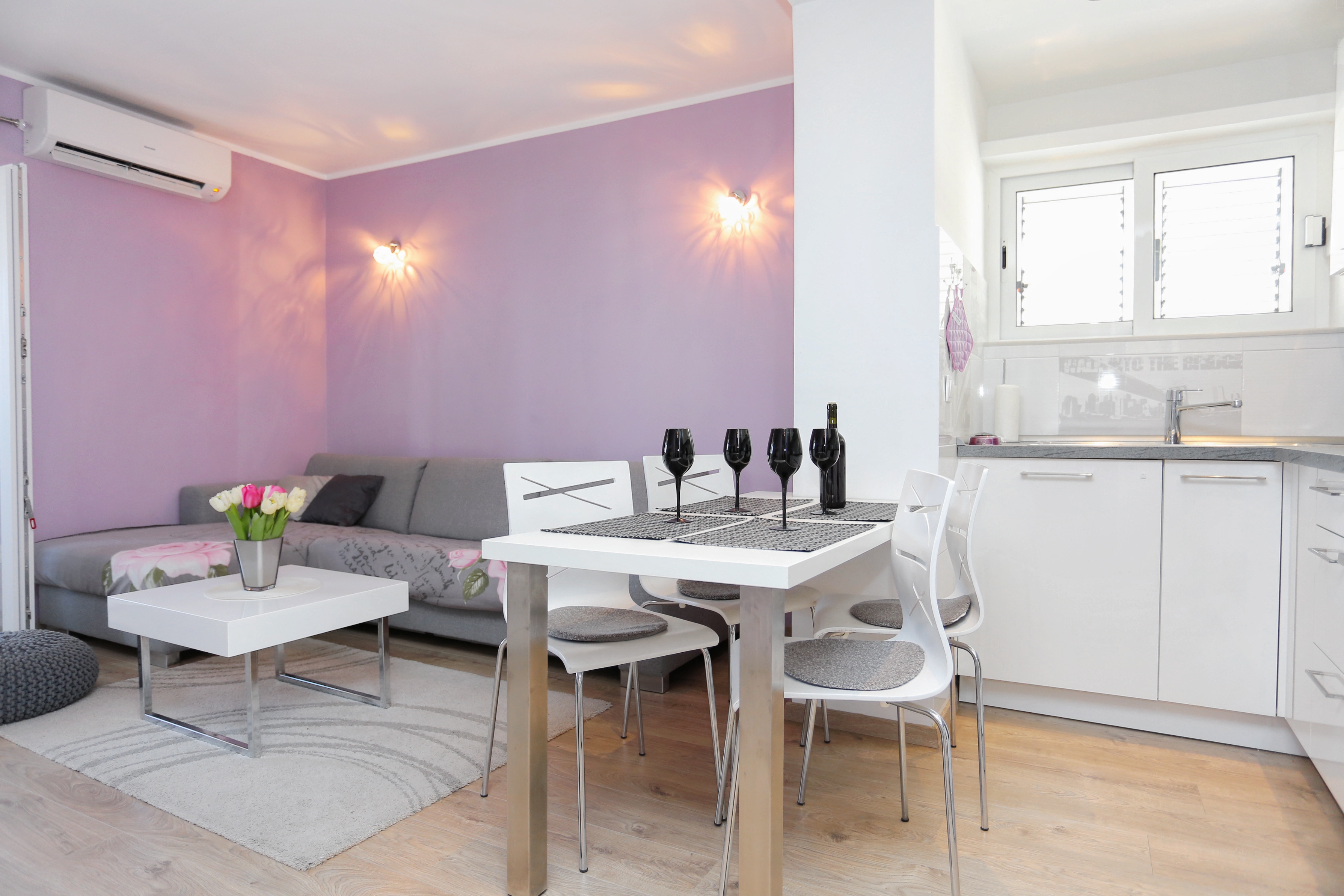 Apartment can accommodate 4 guests. Beds are situated in 1 sleeping rooms, but also in the living room, within 38m2. Guests can use a private terrace to enjoy the warm summer evenings. The apartment offers the sea view. INCLUDED IN THE PRICE: tourist tax, final cleaning, air-conditioning, parking, internet, iron, ironing board, hairdryer. OBLIGATORY ADDITIONAL COSTS: short stay fee (surcharge depending on a number of booked nights: 30% - 1, 20% - 2, 10% - 3). The availability of additional services for your chosen dates of stay, as well as their prices (if none are listed) must be checked ahead of time. Any additional services not shown in the price calculation are payable directly to the property owner and only if used by the visitor. Discounts to the base price: free day 14=13 (for reservations of 14 or more days you get one free day for the stay until 31122026).