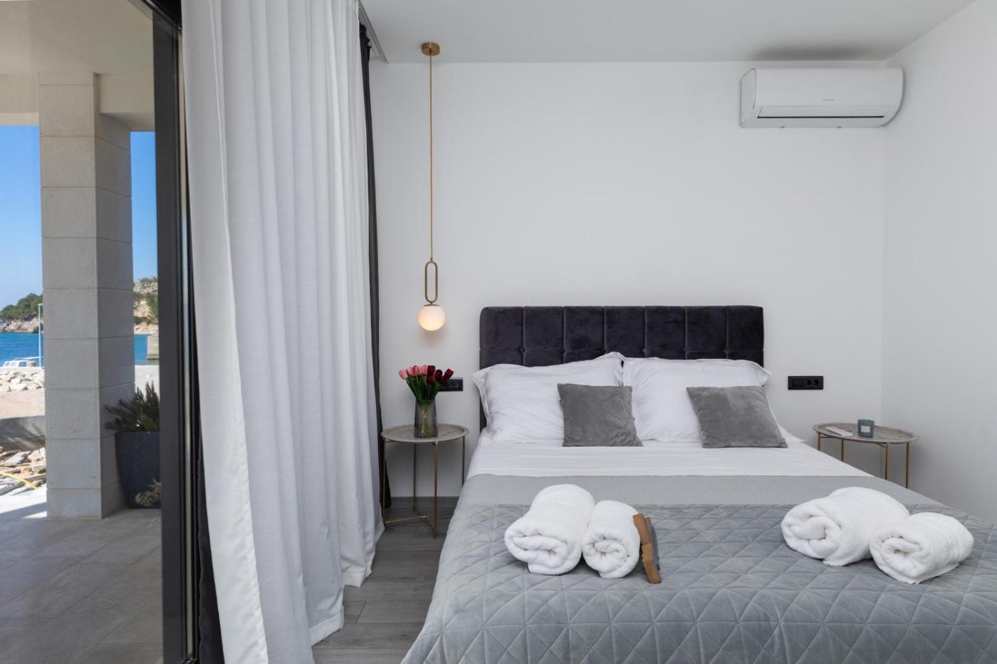 Two-Bedroom Apartment. This spacious apartment features 1 living room, 2 separate bedrooms and 2 bathrooms with a walk-in shower and a hairdryer. Guests will find a stovetop, a refrigerator, a dishwasher and kitchenware in the fully equipped kitchen. The apartment also comes with a barbecue. The air-conditioned apartment features a flat-screen TV with satellite channels, a washing machine, a seating area, a dining area as well as sea views. The unit has 3 beds.