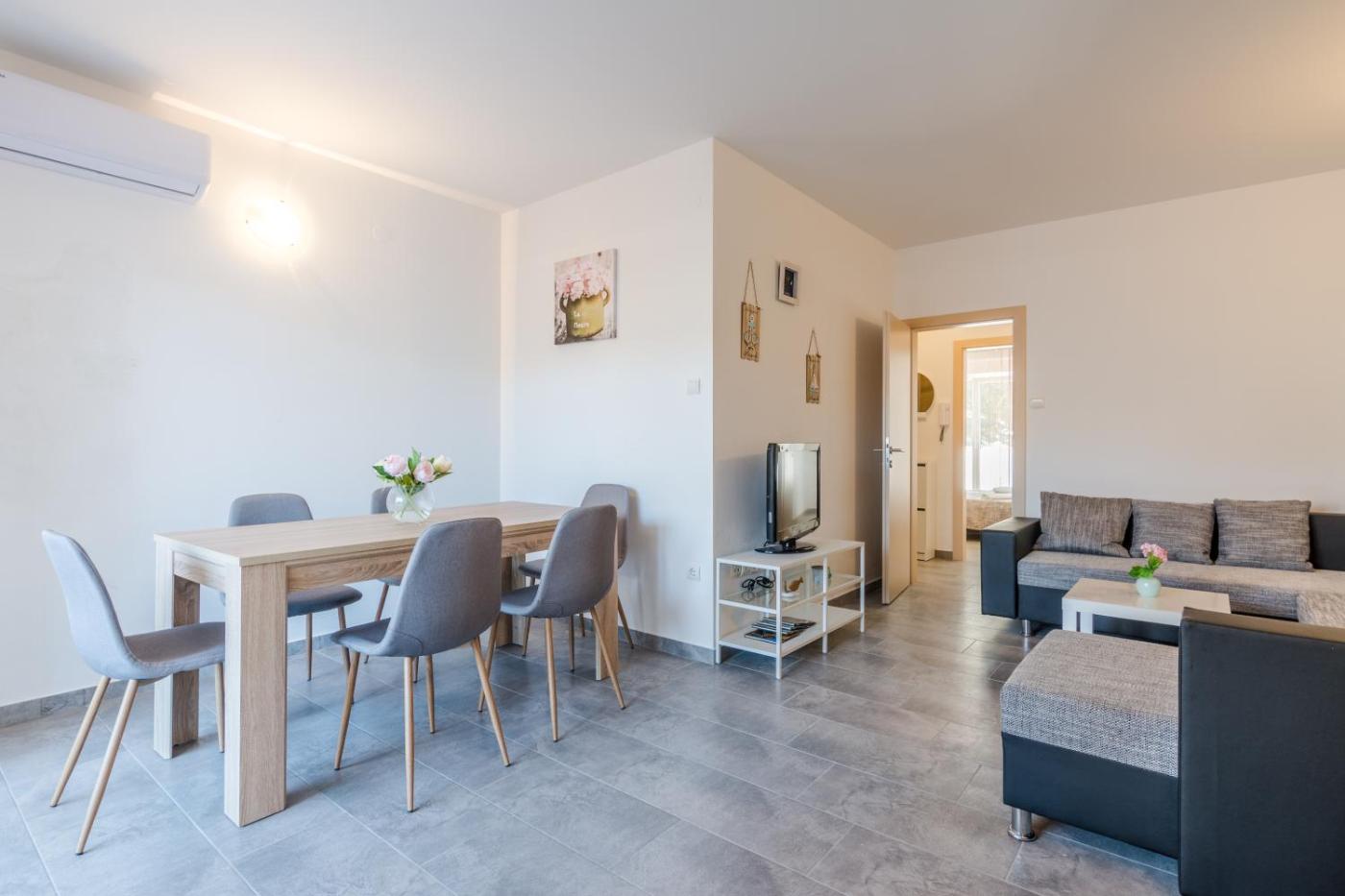 Located in Novalja in the Pag Island region, Pasko 4 modern furnished ap for 7 provides accommodation with access to a hot tub. The air-conditioned accommodation is 600 metres from Lokunje Beach, and guests can benefit from private parking available on site and free WiFi. Guests can make use of a garden.
