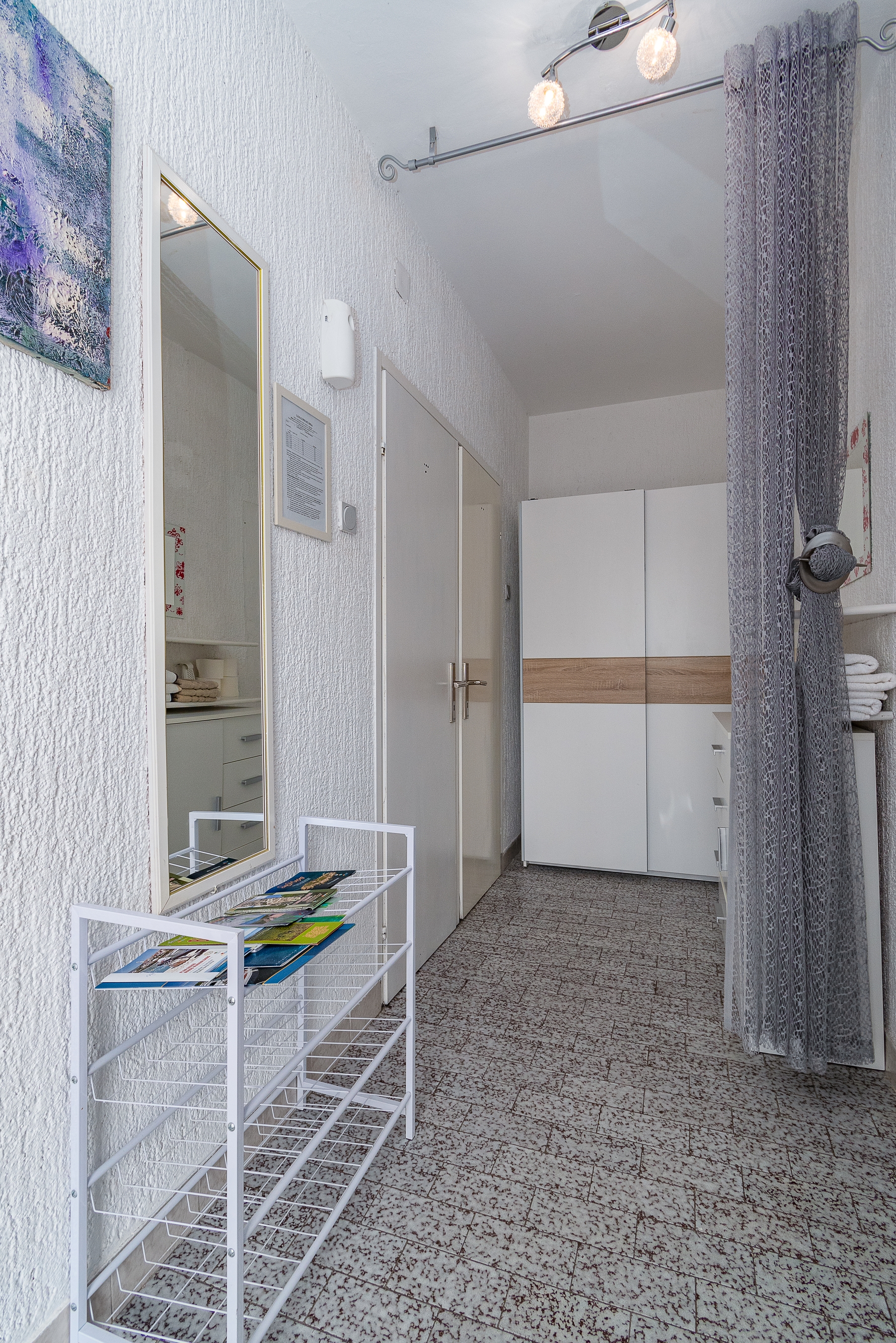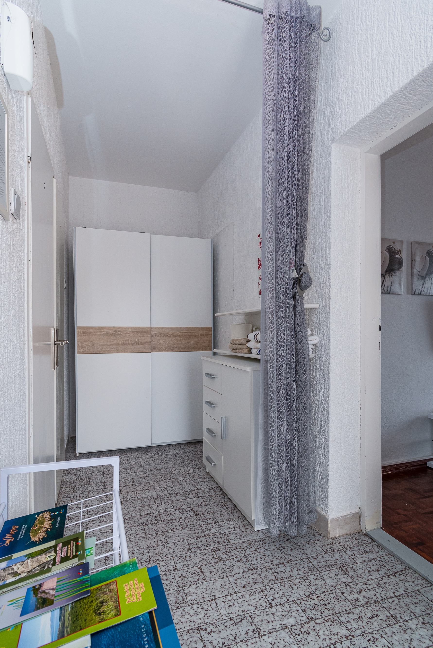 Apartment can accommodate 3 guests. Beds are situated in 1 sleeping rooms, but also in the living room, within 39m2. Guests can use a private balcony to enjoy the warm summer evenings. The apartment offers the sea view. Food can be prepared using barbecue which is shared with other guests too. Shared pool is on disposal during stay. Reserved accommodation unit has a shared terrace. INCLUDED IN THE PRICE: tourist tax, final cleaning, air-conditioning, pool, parking, internet. The availability of additional services for your chosen dates of stay, as well as their prices (if none are listed) must be checked ahead of time. Any additional services not shown in the price calculation are payable directly to the property owner and only if used by the visitor.