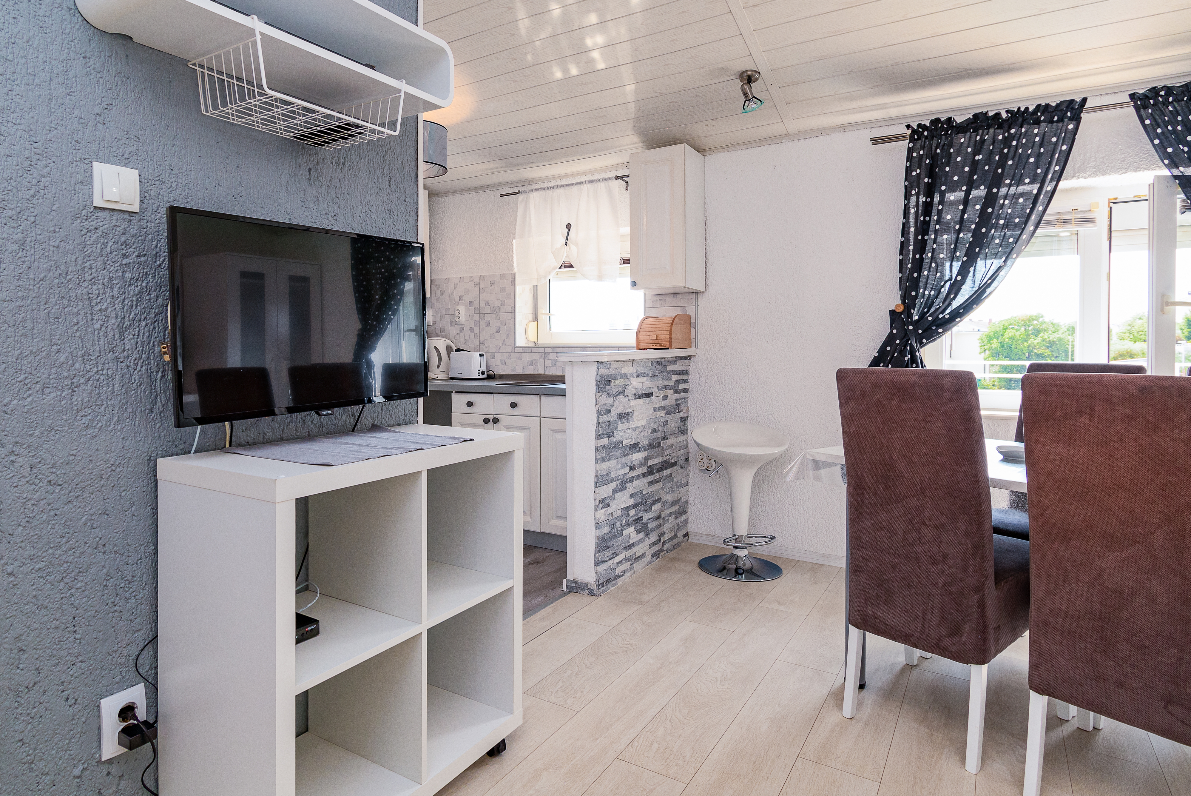 Apartment can accommodate 5 guests. Beds are situated in 2 sleeping rooms, but also in the living room, within 42m2. Guests can use a private terrace to enjoy the warm summer evenings. The apartment offers the sea view. Food can be prepared using barbecue which is shared with other guests too. Shared pool is on disposal during stay. INCLUDED IN THE PRICE: tourist tax, final cleaning, air-conditioning, pool, parking, internet. The availability of additional services for your chosen dates of stay, as well as their prices (if none are listed) must be checked ahead of time. Any additional services not shown in the price calculation are payable directly to the property owner and only if used by the visitor.