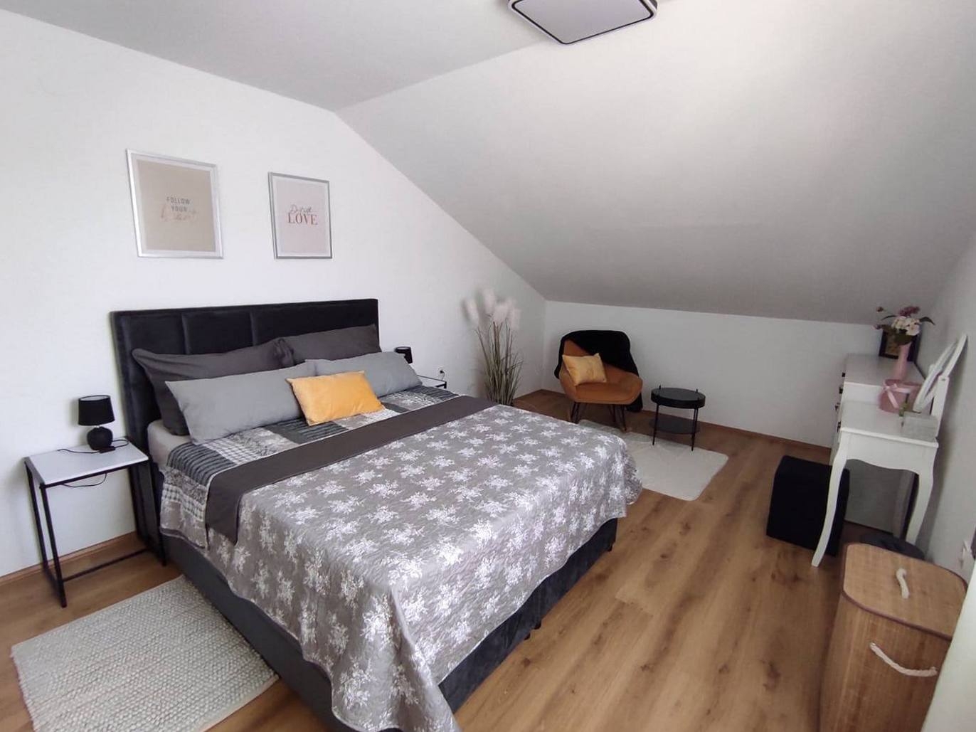 Apartment can accommodate 6 guests. Beds are situated in 2 sleeping rooms, but also in the living room, within 73m2. Guests can use a private terrace to enjoy the warm summer evenings. INCLUDED IN THE PRICE: tourist tax, final cleaning, air-conditioning, parking, internet, baby cot, additional bed, iron, ironing board, hairdryer. The availability of additional services for your chosen dates of stay, as well as their prices (if none are listed) must be checked ahead of time. Any additional services not shown in the price calculation are payable directly to the property owner and only if used by the visitor.