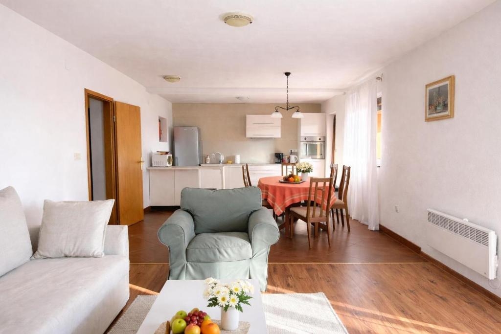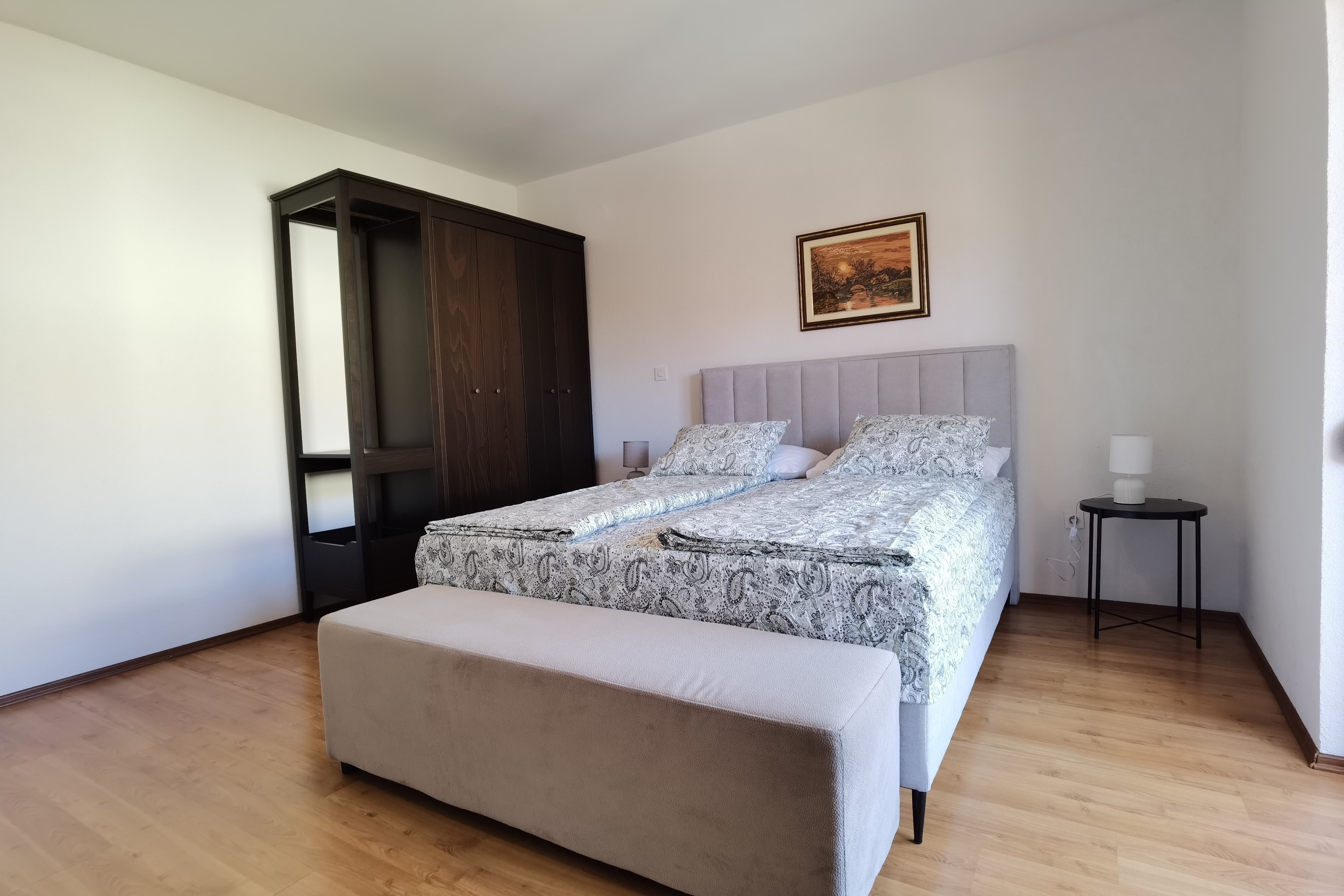 Apartment can accommodate 7 guests. Beds are situated in 3 sleeping rooms, but also in the living room, within 84m2. Guests can use a private terrace to enjoy the warm summer evenings. For full enjoyment and relaxation there is a private barbecue for this accommodation guests only. INCLUDED IN THE PRICE: tourist tax, final cleaning, air-conditioning, parking, internet, baby cot, iron, ironing board, hairdryer. The availability of additional services for your chosen dates of stay, as well as their prices (if none are listed) must be checked ahead of time. Any additional services not shown in the price calculation are payable directly to the property owner and only if used by the visitor. Discounts to the base price: free day 14=13 (for reservations of 14 or more days you get one free day for the stay until 31122026).