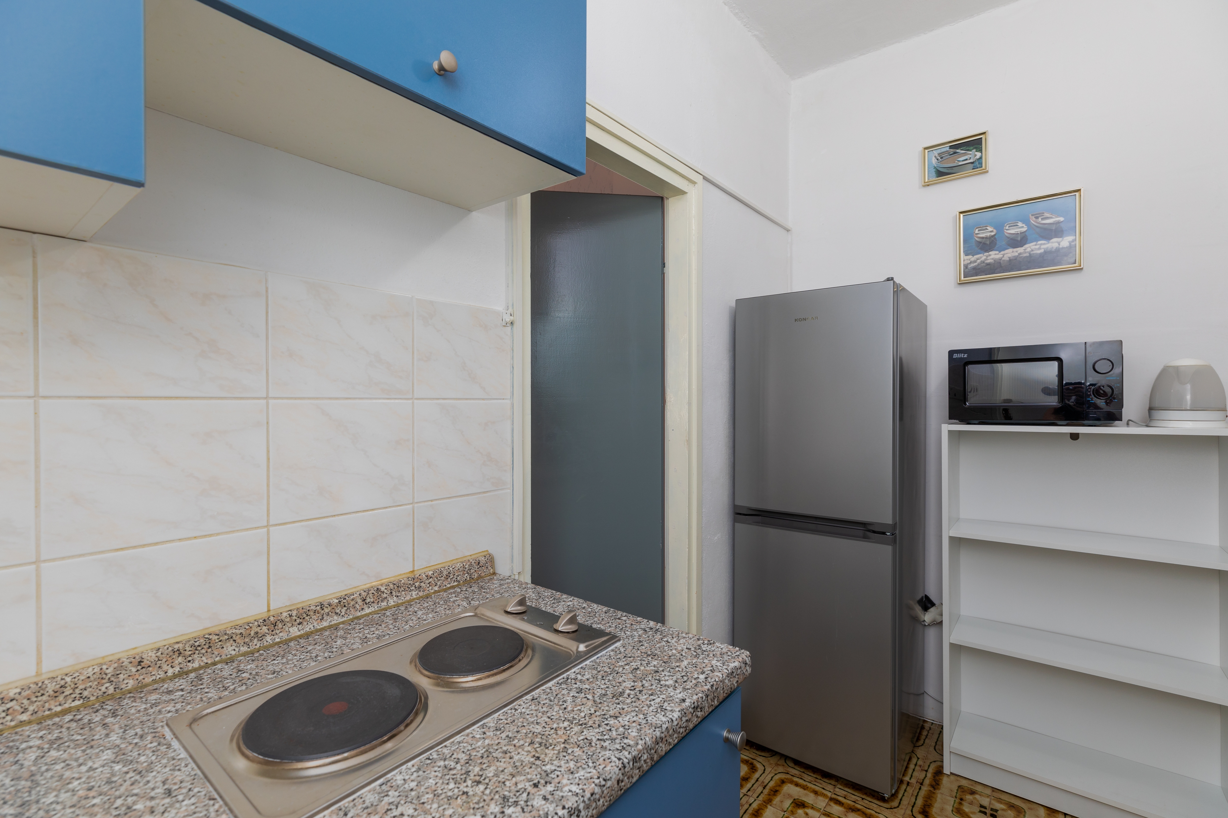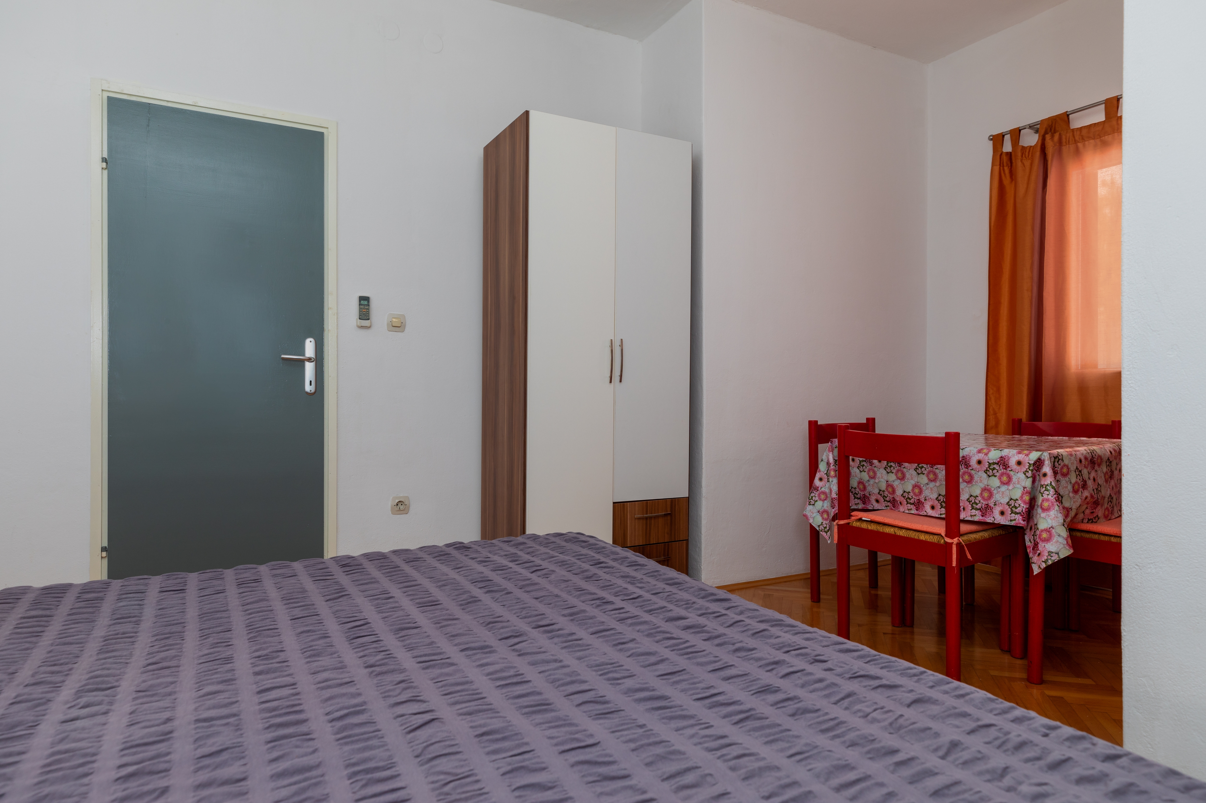 Studio flat can accommodate 4 guests. Beds are situated in 2 sleeping rooms, within 32m2. Guests can use a private terrace to enjoy the warm summer evenings. The studio offers the sea view. Food can be prepared using barbecue which is shared with other guests too. Other guests or hosts pass through the terrace of the booked accommodation unit. Some of the rooms of the accommodation unit are not connected with the rest of the unit. INCLUDED IN THE PRICE: tourist tax, final cleaning, parking, internet, laundry, iron, ironing board. OBLIGATORY ADDITIONAL COSTS: short stay fee (surcharge depending on a number of booked nights: 30% - 1, 20% - 2, 10% - 3). OPTIONAL ADDITIONAL COSTS: air-conditioning (€5.00 per night). The availability of additional services for your chosen dates of stay, as well as their prices (if none are listed) must be checked ahead of time. Any additional services not shown in the price calculation are payable directly to the property owner and only if used by the visitor.