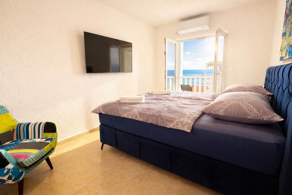 Apartment can accommodate 4 guests. Beds are situated in 1 sleeping rooms, but also in the living room, within 58m2. Guests can use a private terrace to enjoy the warm summer evenings. For full enjoyment and relaxation there is a private barbecue for this accommodation guests only. INCLUDED IN THE PRICE: tourist tax, final cleaning, air-conditioning, parking, internet, baby cot, additional bed, iron, ironing board, hairdryer. The availability of additional services for your chosen dates of stay, as well as their prices (if none are listed) must be checked ahead of time. Any additional services not shown in the price calculation are payable directly to the property owner and only if used by the visitor. Discounts to the base price: free day 14=13 (for reservations of 14 or more days you get one free day for the stay until 31122026).