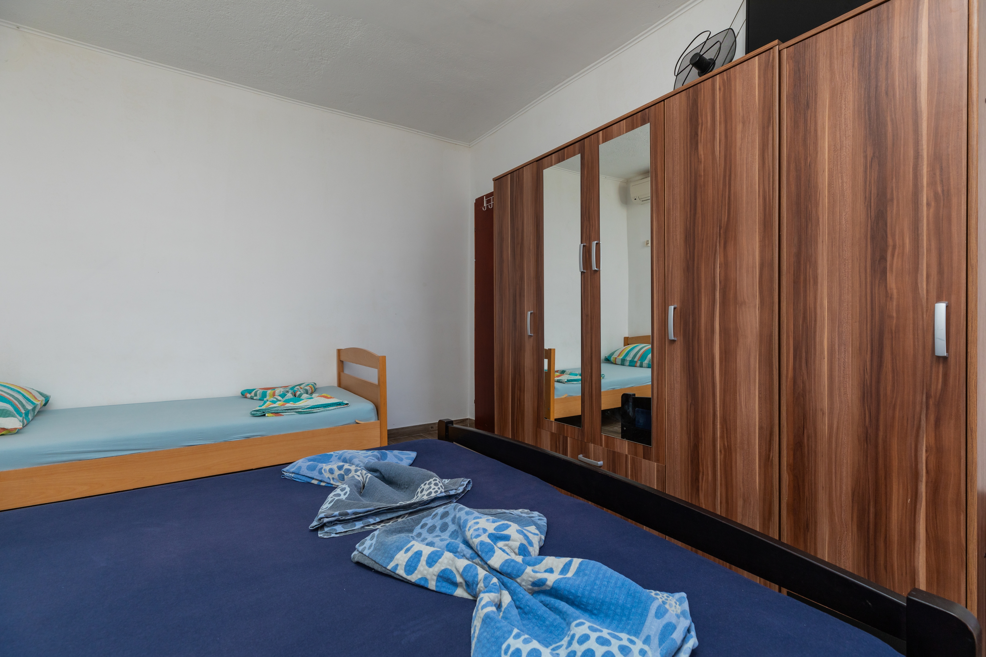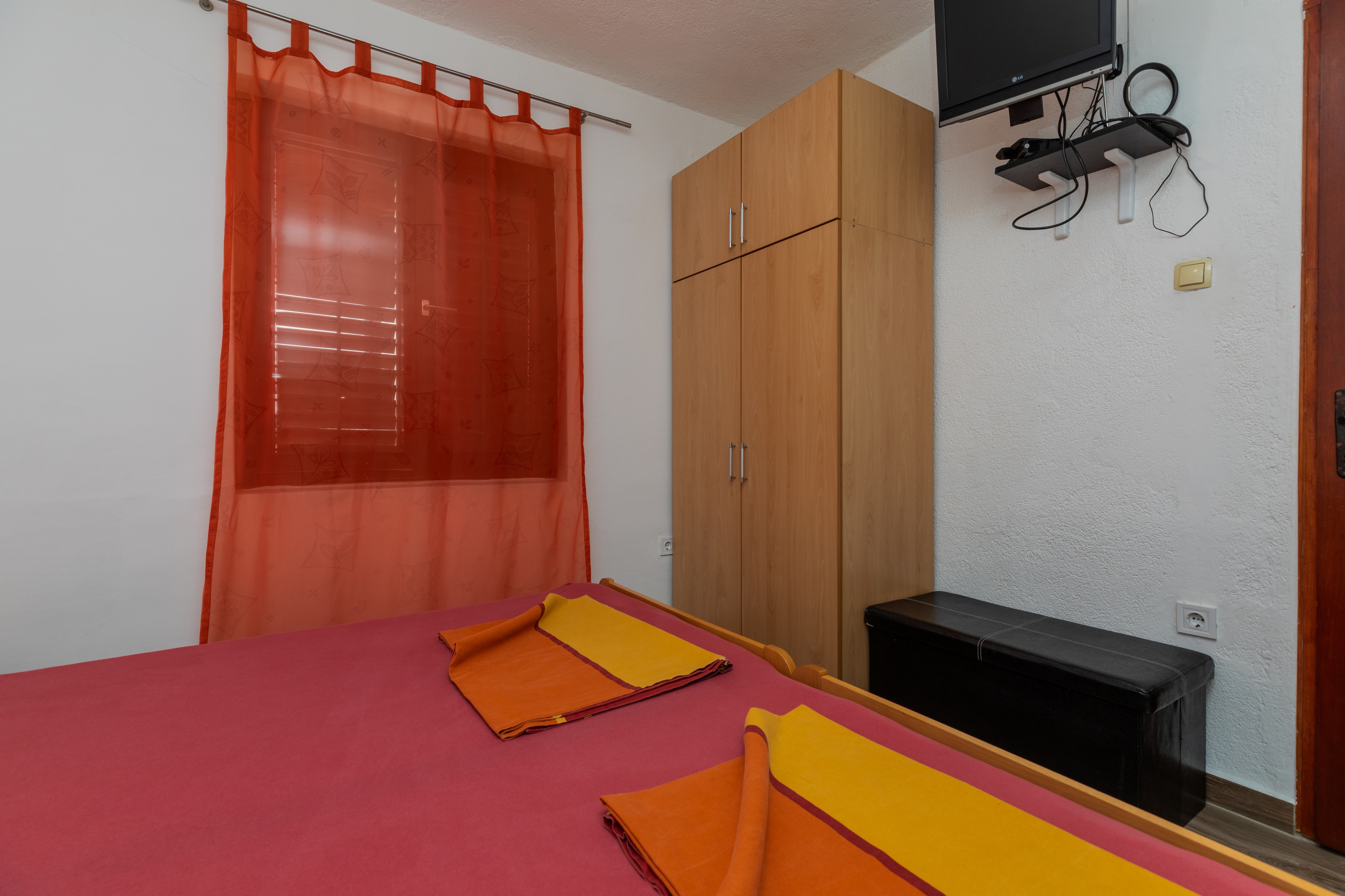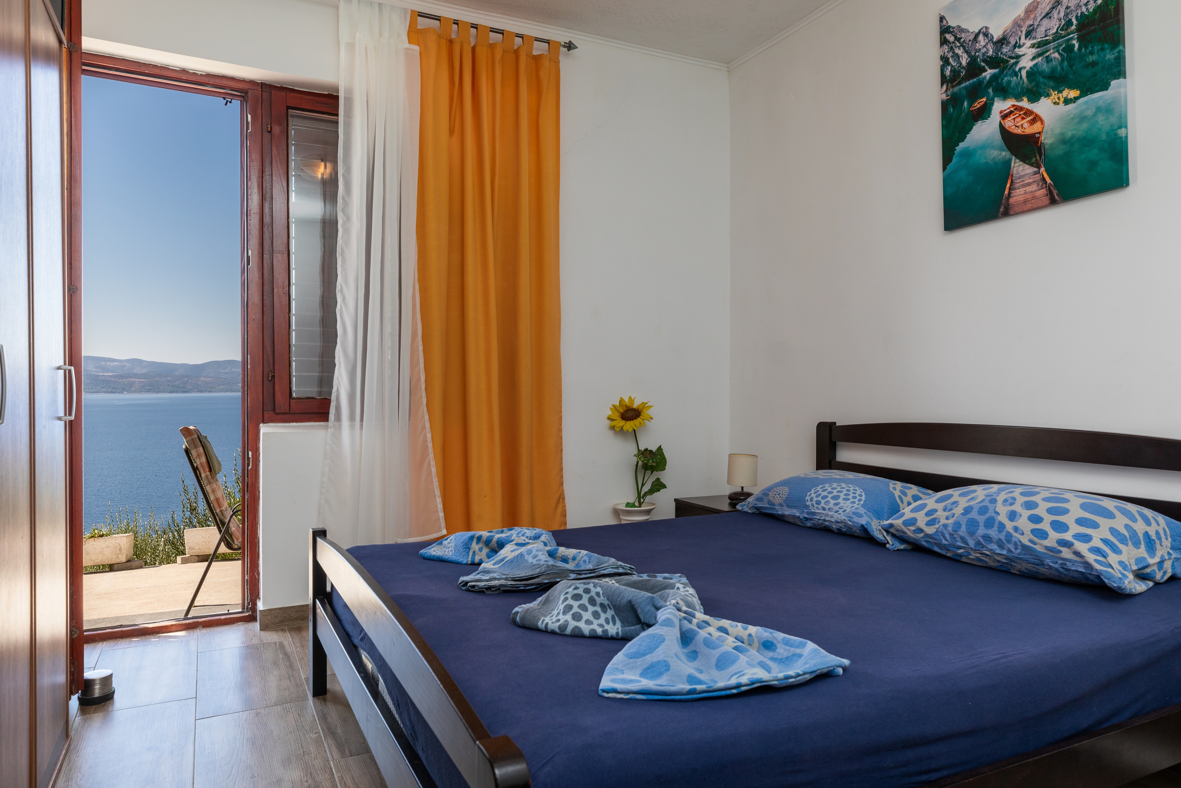 Apartment can accommodate 5 guests. Beds are situated in 2 sleeping rooms, within 45m2. Guests can use a private terrace to enjoy the warm summer evenings. The apartment offers the sea view. Food can be prepared using barbecue which is shared with other guests too. INCLUDED IN THE PRICE: tourist tax, final cleaning, air-conditioning, parking, internet, iron, ironing board, hairdryer, portable barbecue, sunshade. OBLIGATORY ADDITIONAL COSTS: short stay fee (surcharge depending on a number of booked nights: 30% - 1, 20% - 2, 10% - 3). OPTIONAL ADDITIONAL COSTS: boat mooring (€20.00 per night). The availability of additional services for your chosen dates of stay, as well as their prices (if none are listed) must be checked ahead of time. Any additional services not shown in the price calculation are payable directly to the property owner and only if used by the visitor. Discounts to the base price: free day 14=13 (for reservations of 14 or more days you get one free day for the stay until 31122026).