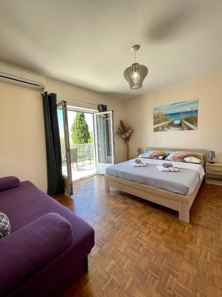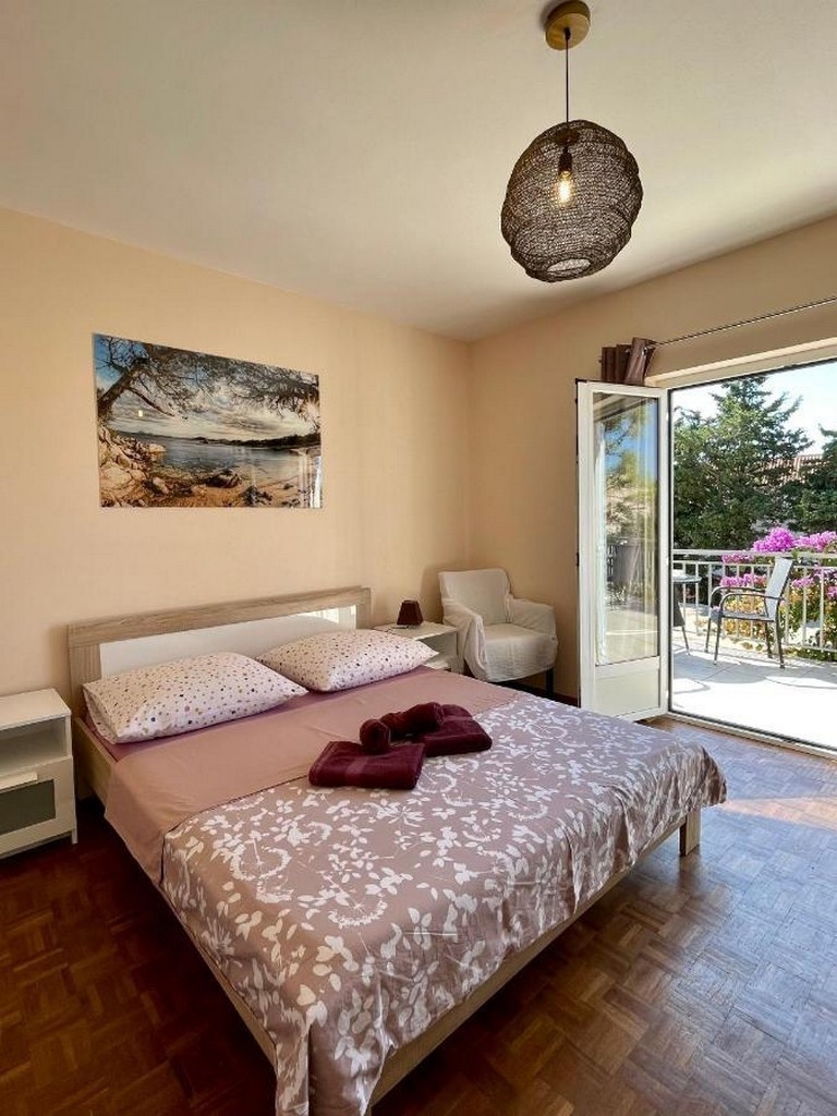 Apartment can accommodate 6 guests. Beds are situated in 3 sleeping rooms, within 62m2. Guests can use a private terrace to enjoy the warm summer evenings. INCLUDED IN THE PRICE: tourist tax, final cleaning, air-conditioning, parking, internet, iron, ironing board, hairdryer. The availability of additional services for your chosen dates of stay, as well as their prices (if none are listed) must be checked ahead of time. Any additional services not shown in the price calculation are payable directly to the property owner and only if used by the visitor. Discounts to the base price: free day 14=13 (for reservations of 14 or more days you get one free day for the stay until 31122026).