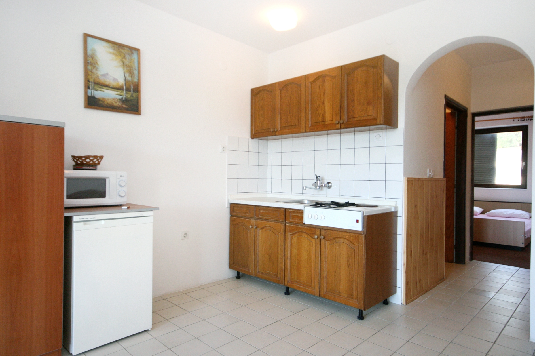 Apartment can accommodate 4 guests. Beds are situated in 1 sleeping rooms, but also in the living room, within 30m2. Guests can use a private terrace to enjoy the warm summer evenings. The apartment offers the sea view. Food can be prepared using barbecue which is shared with other guests too. Shared pool is on disposal during stay. For the booked accommodation unit the deposit is paid directly to the owner upon check-in (deposit amount is displayed on the website) INCLUDED IN THE PRICE: tourist tax, final cleaning, pool, parking, internet, boat mooring, hairdryer, sunshade, sunchairs. OBLIGATORY ADDITIONAL COSTS: deposit (€100.00 one-time payment), short stay fee (surcharge depending on a number of booked nights: 30% - 1, 20% - 2, 10% - 3). OPTIONAL ADDITIONAL COSTS: air-conditioning (€5.00 per night). The availability of additional services for your chosen dates of stay, as well as their prices (if none are listed) must be checked ahead of time. Any additional services not shown in the price calculation are payable directly to the property owner and only if used by the visitor.