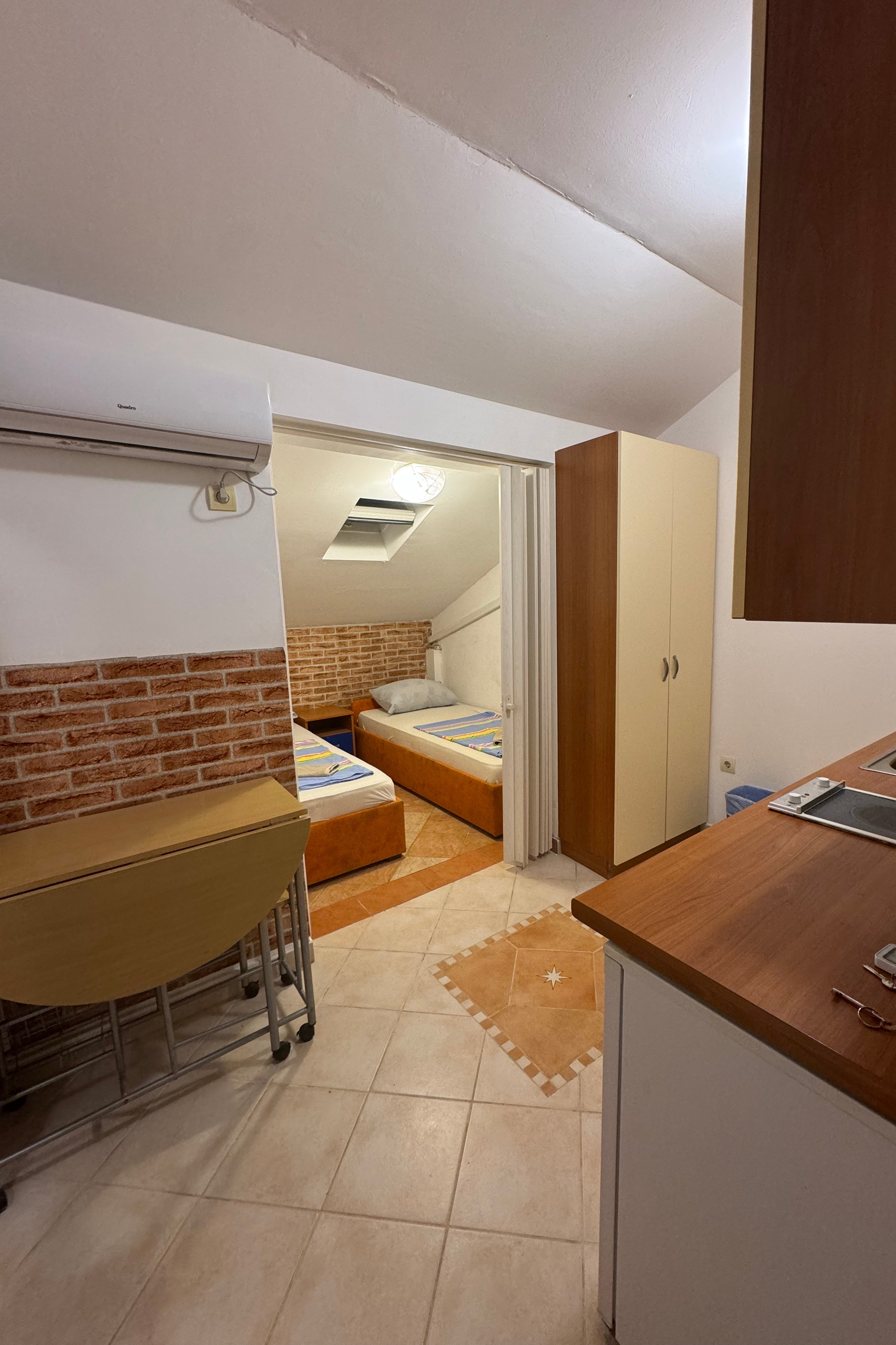 Apartment can accommodate 4 guests. Beds are situated in 2 sleeping rooms, within 25m2. Guests can use a private terrace to enjoy the warm summer evenings. The apartment offers the sea view. Food can be prepared using barbecue which is shared with other guests too. This accommodation unit welcomes pets at an additional charge. INCLUDED IN THE PRICE: final cleaning, air-conditioning, parking, internet, baby cot, sunshade. OBLIGATORY ADDITIONAL COSTS: tourist tax (adults €0.93 - €1.50 nightperson, discount for children aged 12 - 17). OPTIONAL ADDITIONAL COSTS: breakfast (€12.00, a 50% discount for children aged 4 to 12 years, Children up to age 4 free of charge), half-board (€29.00, a 50% discount for children aged 4 to 12 years, Children up to age 4 free of charge), pets (€5.00 per night). The availability of additional services for your chosen dates of stay, as well as their prices (if none are listed) must be checked ahead of time. Any additional services not shown in the price calculation are payable directly to the property owner and only if used by the visitor.