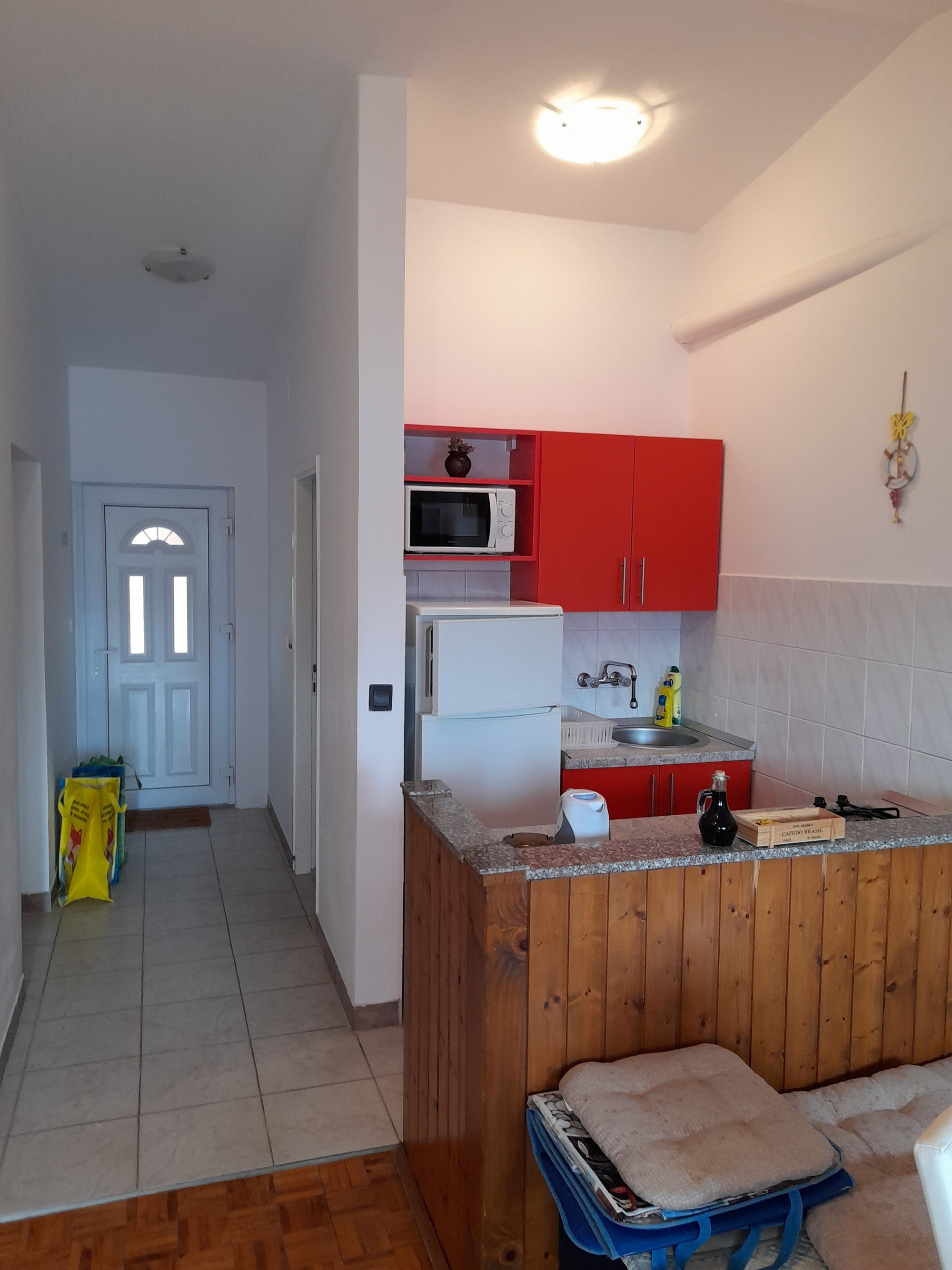 Apartment can accommodate 4 guests. Beds are situated in 2 sleeping rooms, within 34m2. Guests can use a private terrace to enjoy the warm summer evenings. The apartment offers the sea view. Food can be prepared using barbecue which is shared with other guests too. INCLUDED IN THE PRICE: tourist tax, final cleaning, air-conditioning, parking, internet, baby cot, iron, ironing board, hairdryer. OBLIGATORY ADDITIONAL COSTS: short stay fee (surcharge depending on a number of booked nights: 30% - 1, 20% - 2, 10% - 3). The availability of additional services for your chosen dates of stay, as well as their prices (if none are listed) must be checked ahead of time. Any additional services not shown in the price calculation are payable directly to the property owner and only if used by the visitor. Discounts to the base price: free day 28=25 (for stays of 28 days or more, we give you 3 days free of charge for the stay until 31122026).