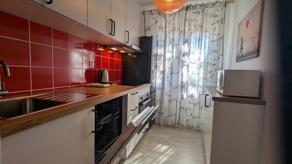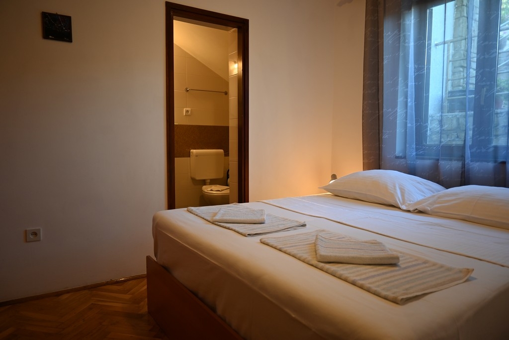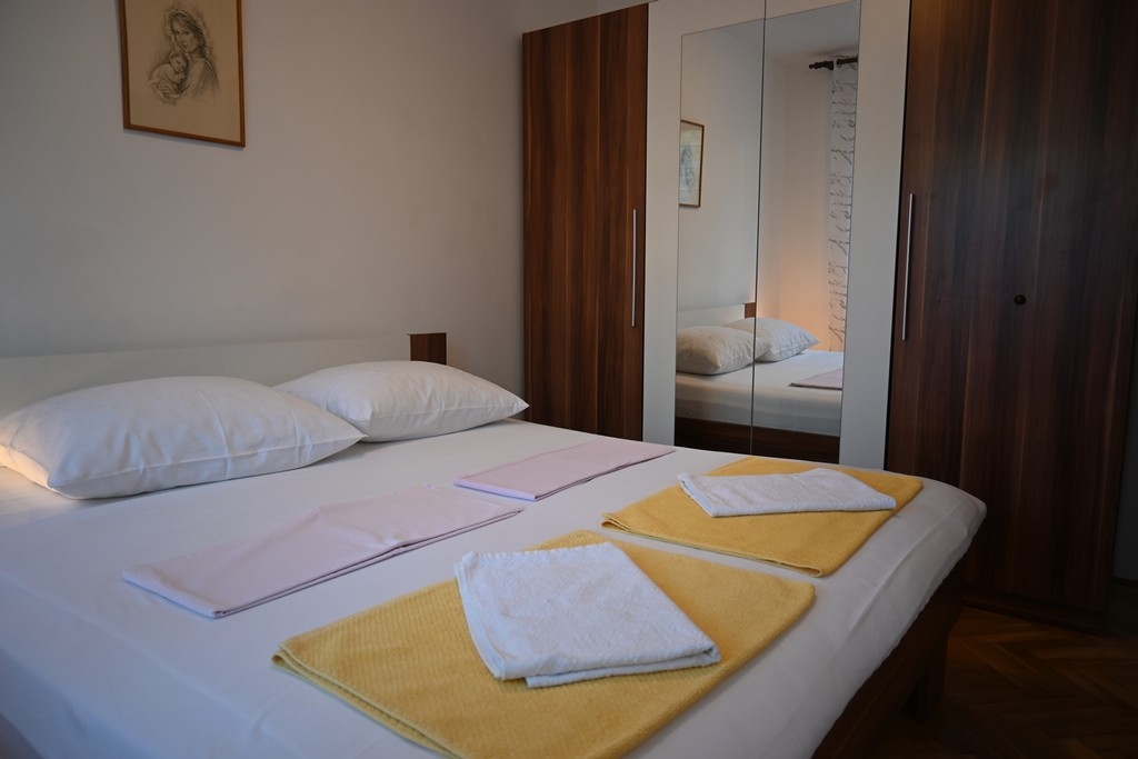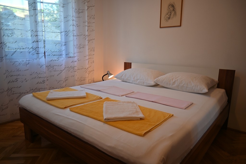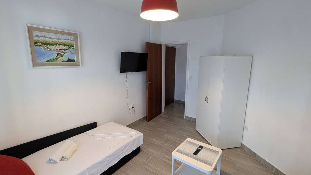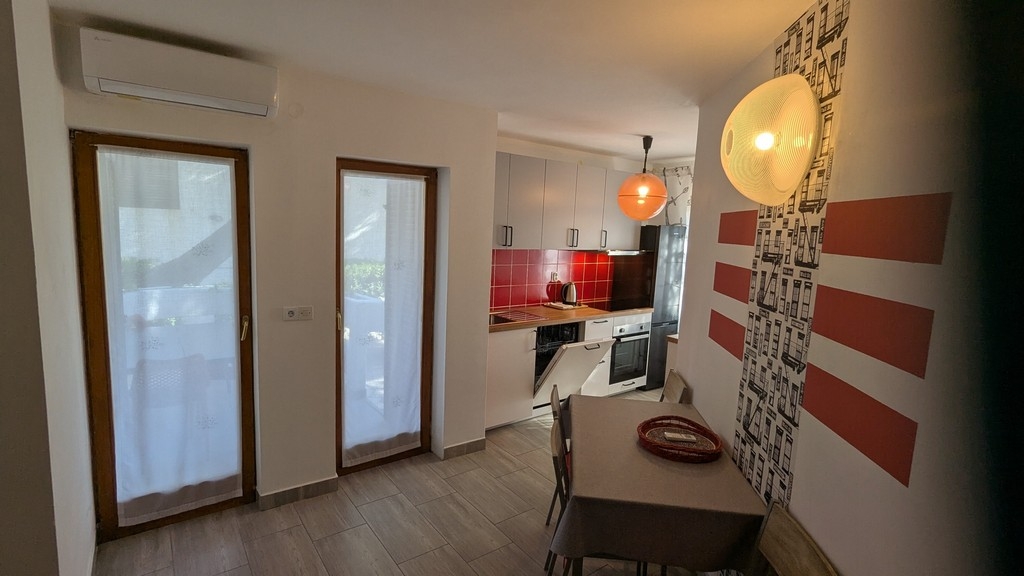 Apartment can accommodate 6 guests. Beds are situated in 2 sleeping rooms, but also in the living room, within 52m2. Guests can use a private terrace to enjoy the warm summer evenings. For full enjoyment and relaxation there is a private barbecue for this accommodation guests only. Shared pool is on disposal during stay. Some of the rooms of the accommodation unit are not connected with the rest of the unit. INCLUDED IN THE PRICE: tourist tax, final cleaning, air-conditioning, pool, parking, internet, laundry, iron, ironing board, hairdryer. The availability of additional services for your chosen dates of stay, as well as their prices (if none are listed) must be checked ahead of time. Any additional services not shown in the price calculation are payable directly to the property owner and only if used by the visitor.