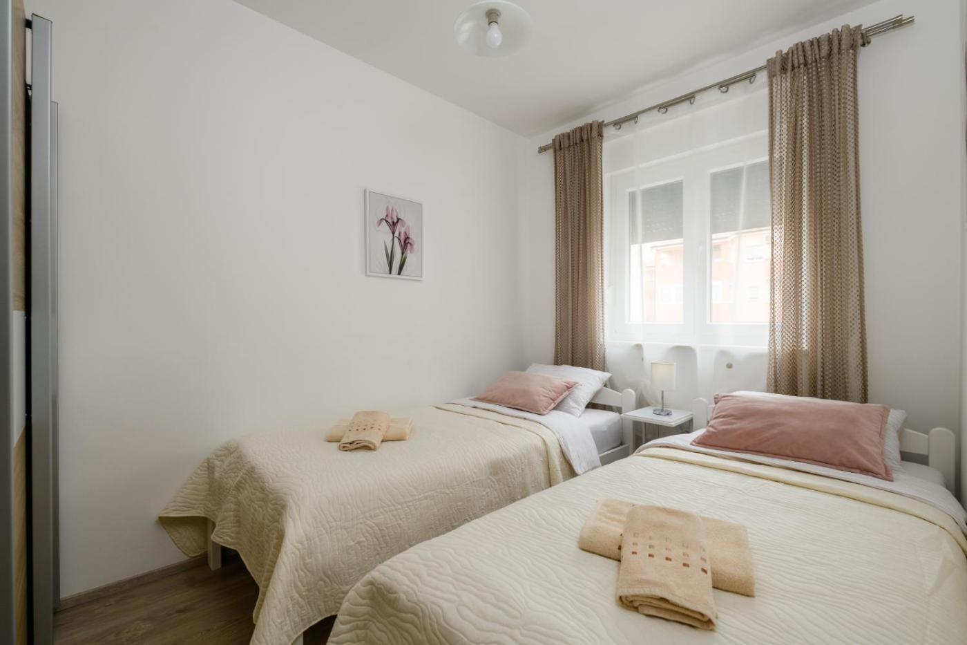 Two-Bedroom Apartment. Boasting a private entrance, this air-conditioned apartment features 1 living room, 2 separate bedrooms and 1 bathroom with a shower and a hairdryer. Guests can make meals in the kitchen that features a stovetop, a refrigerator, a dishwasher and kitchenware. This apartment has a washing machine, a tea and coffee maker, a flat-screen TV with satellite channels and a balcony. The unit has 4 beds.