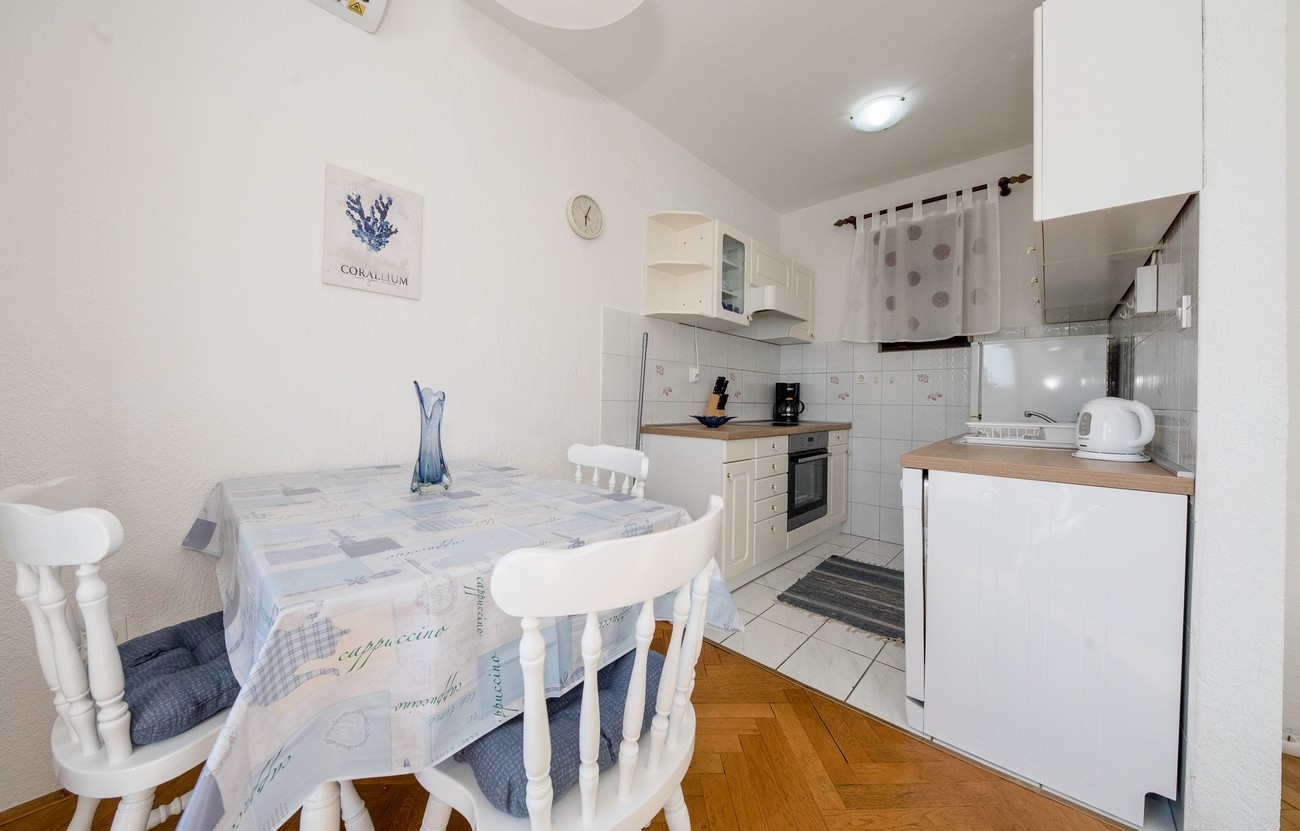 Apartment can accommodate 3 guests. Beds are situated in 1 sleeping rooms, but also in the living room, within 40m2. Guests can use a private balcony to enjoy the warm summer evenings. The apartment offers the sea view. Food can be prepared using barbecue which is shared with other guests too. This accommodation unit welcomes pets at an additional charge. INCLUDED IN THE PRICE: tourist tax, final cleaning, air-conditioning, central heating, parking, internet. OBLIGATORY ADDITIONAL COSTS: short stay fee (surcharge depending on a number of booked nights: 30% - 1, 20% - 2, 10% - 3). OPTIONAL ADDITIONAL COSTS: breakfast (€10.00, a 50% discount for children aged 4 to 12 years, Children up to age 4 free of charge), laundry (€5.00 washing), boat mooring (€5.00 per night), pets (€10.00 per night). The availability of additional services for your chosen dates of stay, as well as their prices (if none are listed) must be checked ahead of time. Any additional services not shown in the price calculation are payable directly to the property owner and only if used by the visitor.