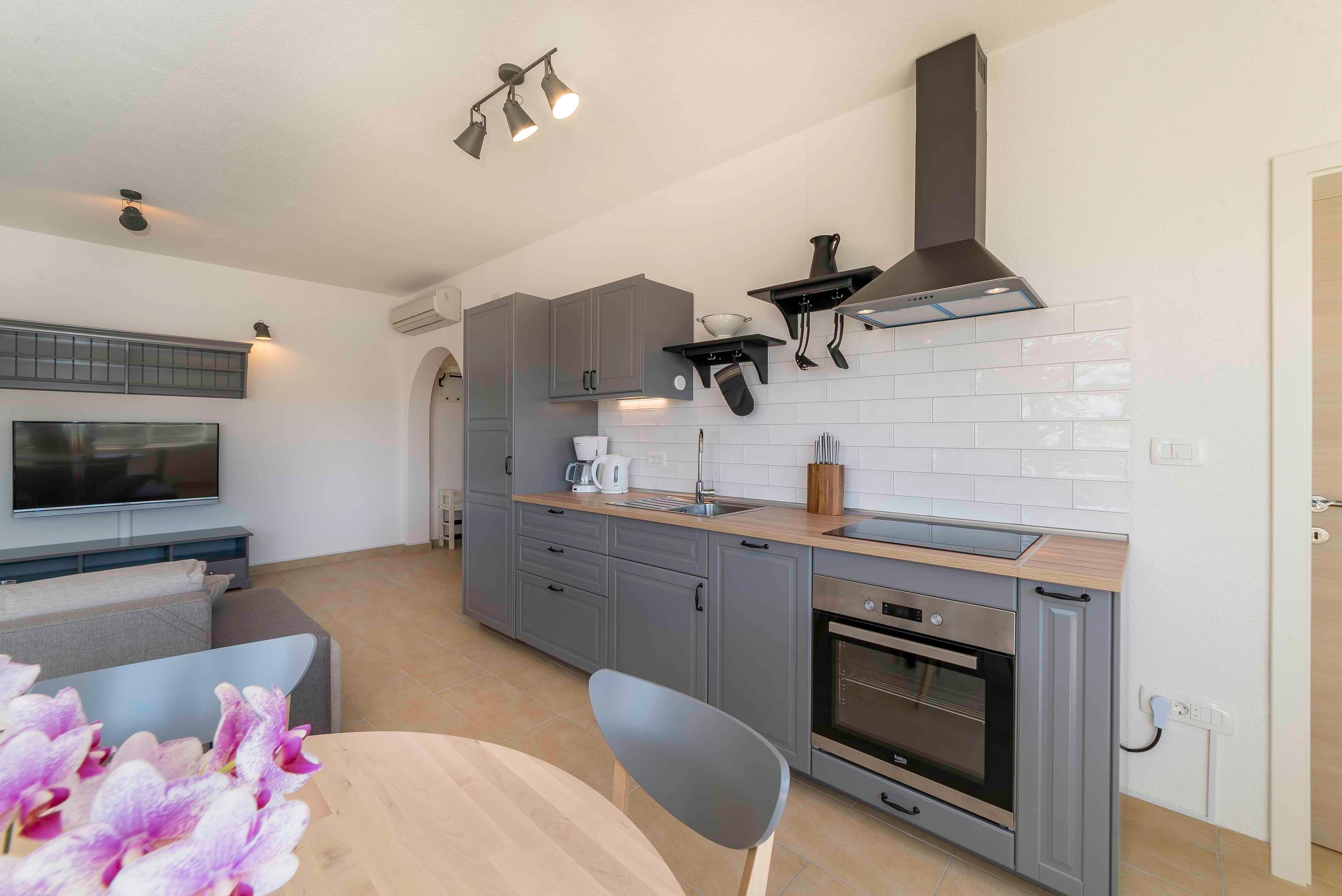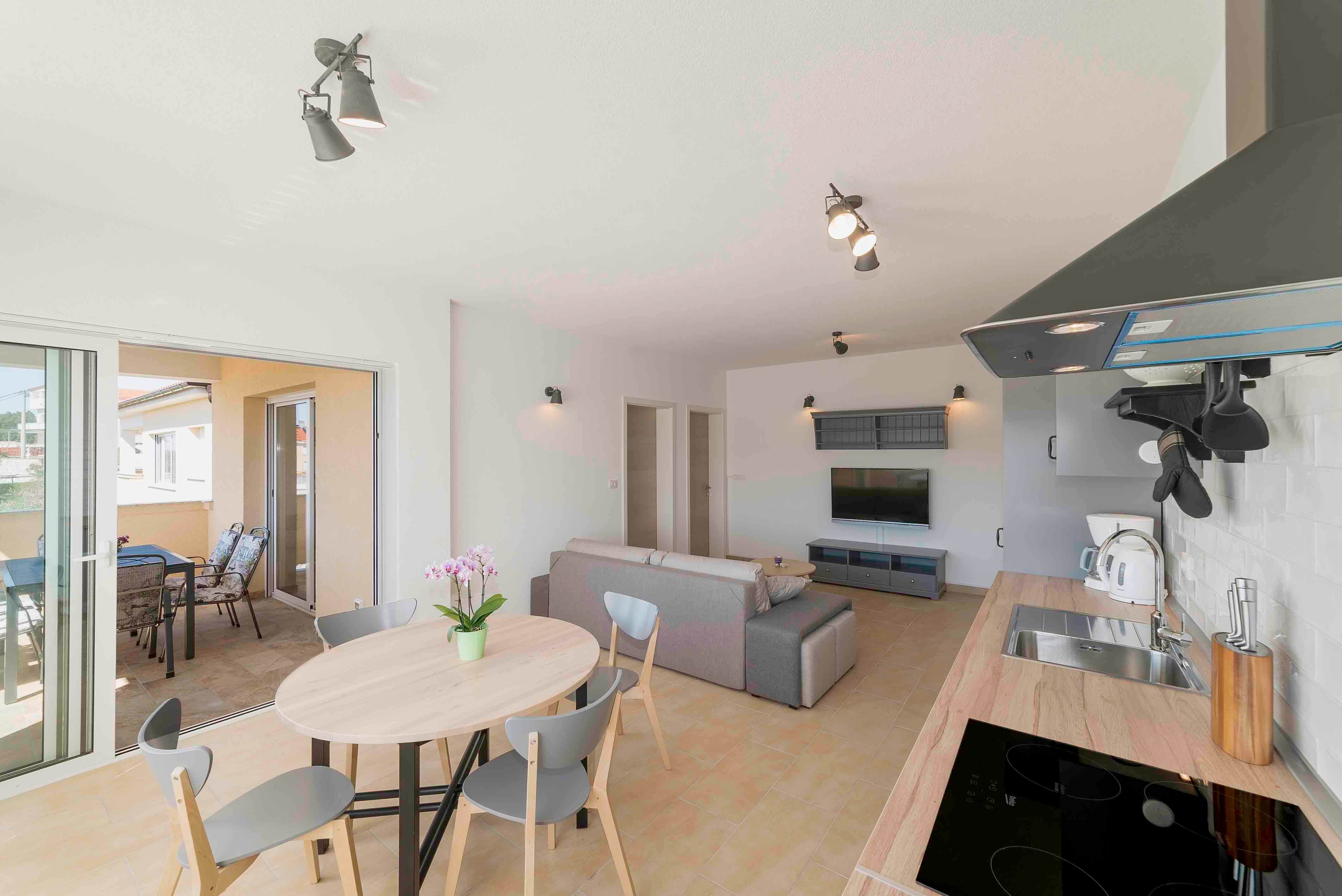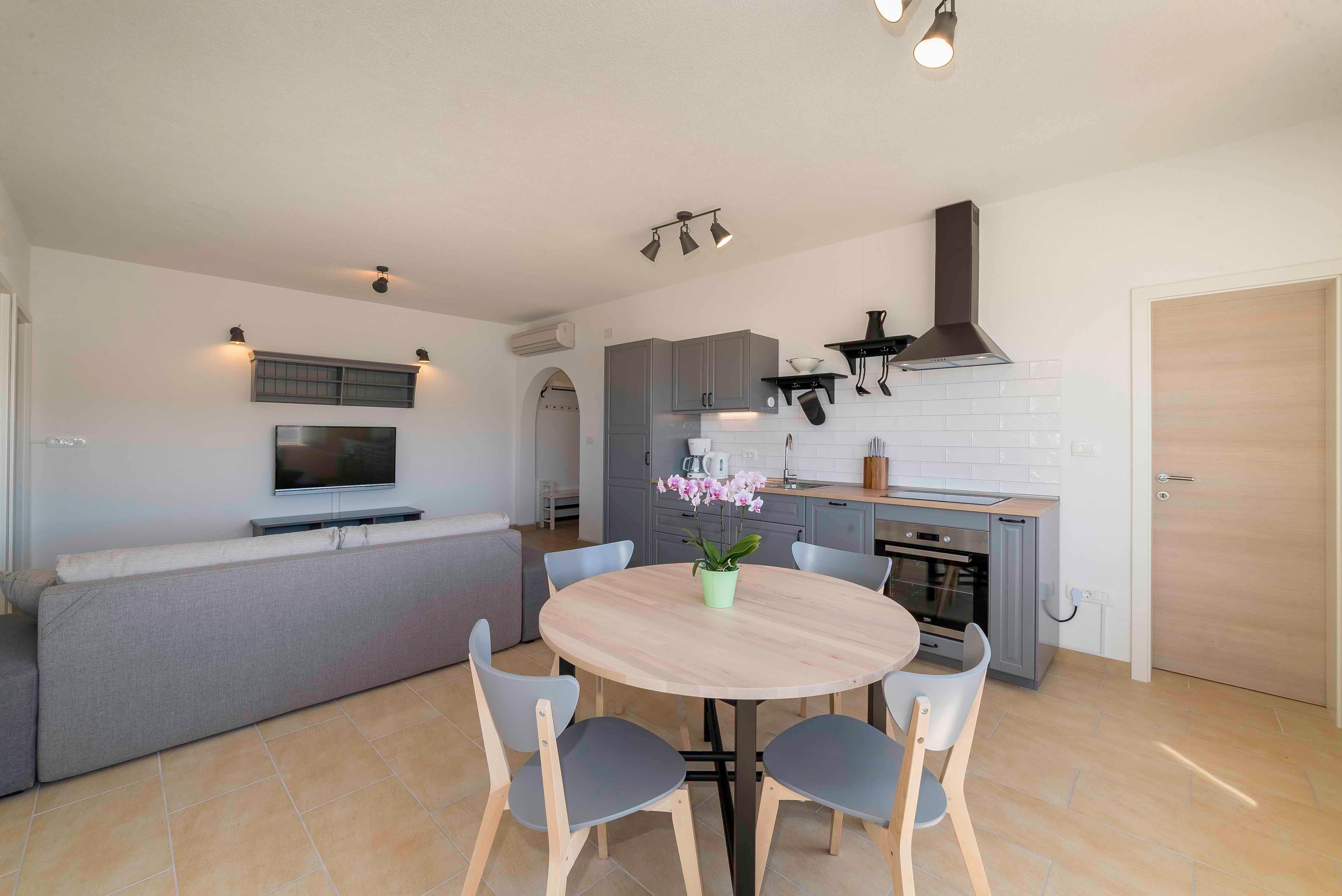 Apartment can accommodate 4 guests. Beds are situated in 2 sleeping rooms, within 75m2. Guests can use a private balcony to enjoy the warm summer evenings. The apartment offers the sea view. Food can be prepared using barbecue which is shared with other guests too. This accommodation unit welcomes pets at no additional costs. INCLUDED IN THE PRICE: tourist tax, final cleaning, air-conditioning, parking, internet, pets, baby cot, iron, ironing board, hairdryer, portable barbecue. OPTIONAL ADDITIONAL COSTS: boat mooring (€10.00 per night), additional bed (€10.00 per night). The availability of additional services for your chosen dates of stay, as well as their prices (if none are listed) must be checked ahead of time. Any additional services not shown in the price calculation are payable directly to the property owner and only if used by the visitor. Discounts to the base price: free day 14=13 (for reservations of 14 or more days you get one free day for the stay until 31122026).