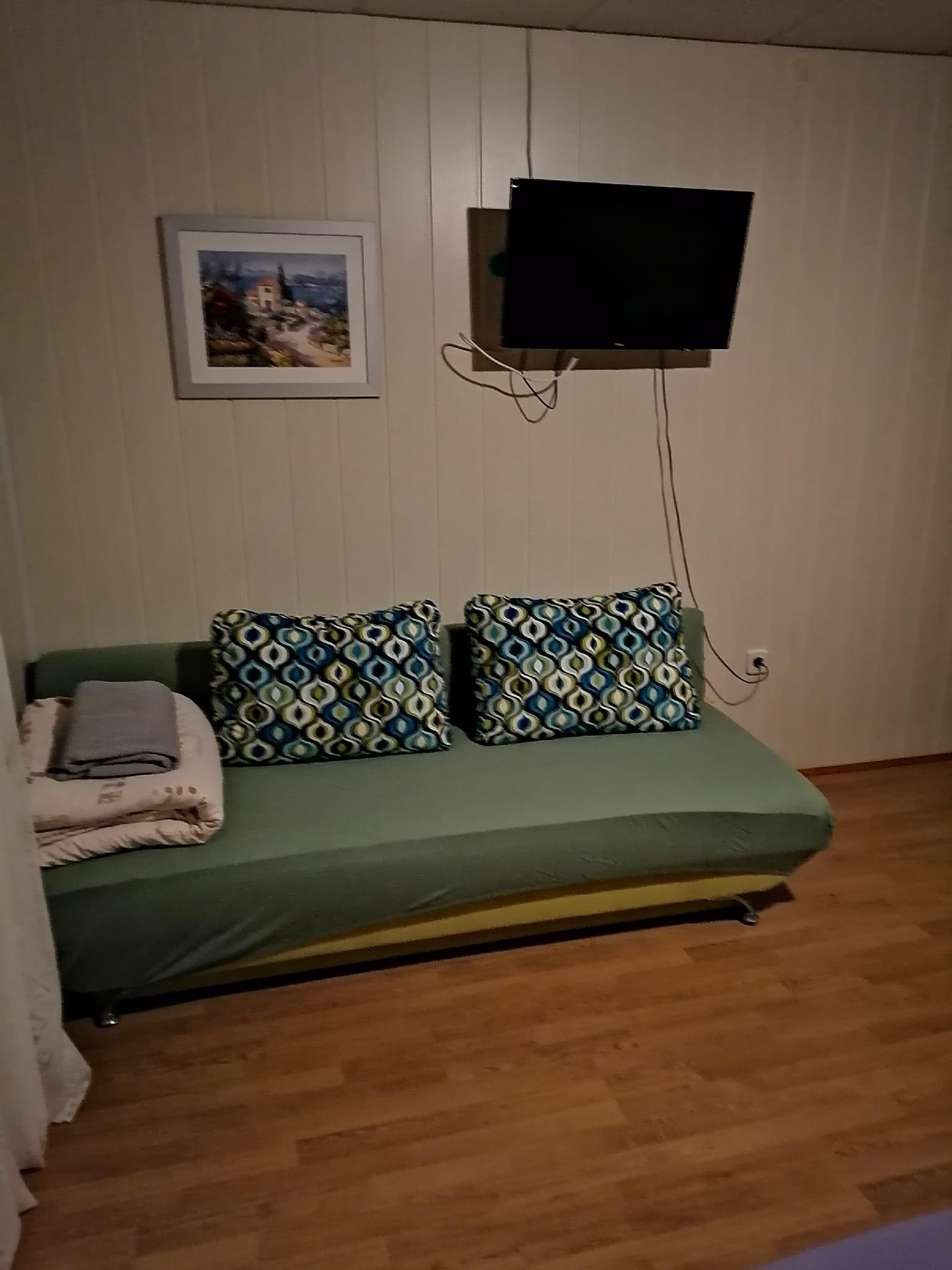 Apartment can accommodate 5 guests. Beds are situated in 2 sleeping rooms, within 51m2. Guests can use a private terrace to enjoy the warm summer evenings. Food can be prepared using barbecue which is shared with other guests too. INCLUDED IN THE PRICE: tourist tax, final cleaning, air-conditioning, parking, internet, laundry, baby cot, iron, ironing board, hairdryer. OBLIGATORY ADDITIONAL COSTS: short stay fee (surcharge depending on a number of booked nights: 30% - 1, 20% - 2, 10% - 3). The availability of additional services for your chosen dates of stay, as well as their prices (if none are listed) must be checked ahead of time. Any additional services not shown in the price calculation are payable directly to the property owner and only if used by the visitor. Discounts to the base price: free day 21=19 (for reservations of 21 or more days you get 2 free days for the stay until 31122026).