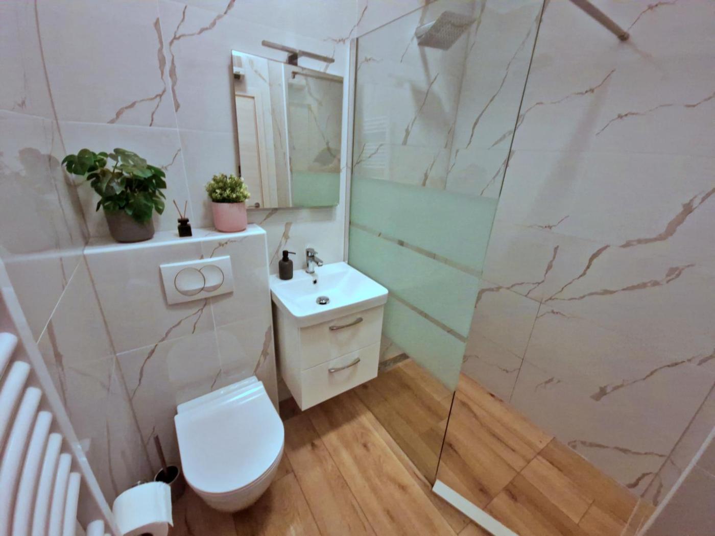 One-Bedroom Apartment. This apartment comprises 1 living room, 1 separate bedroom and 1 bathroom with a walk-in shower and free toiletries. Meals can be prepared in the well-fitted kitchen, which comes with a stovetop, a refrigerator, a dishwasher and kitchenware. The air-conditioned apartment provides a flat-screen TV with satellite channels, a washing machine, soundproof walls, a tea and coffee maker as well as city views. The unit offers 2 beds.