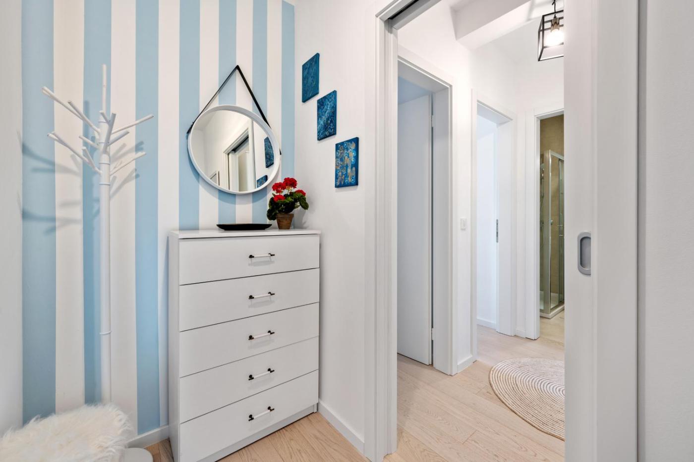Two-Bedroom Apartment. Featuring a private entrance, this spacious apartment also comprises 2 bedrooms, a seating area and 1 bathroom with a shower and a hairdryer. In the well-fitted kitchen, guests will find a stovetop, a refrigerator, a dishwasher and kitchenware. The air-conditioned apartment provides a flat-screen TV with satellite channels, a washing machine, a tea and coffee maker, a dining area as well as sea views. The unit offers 2 beds.