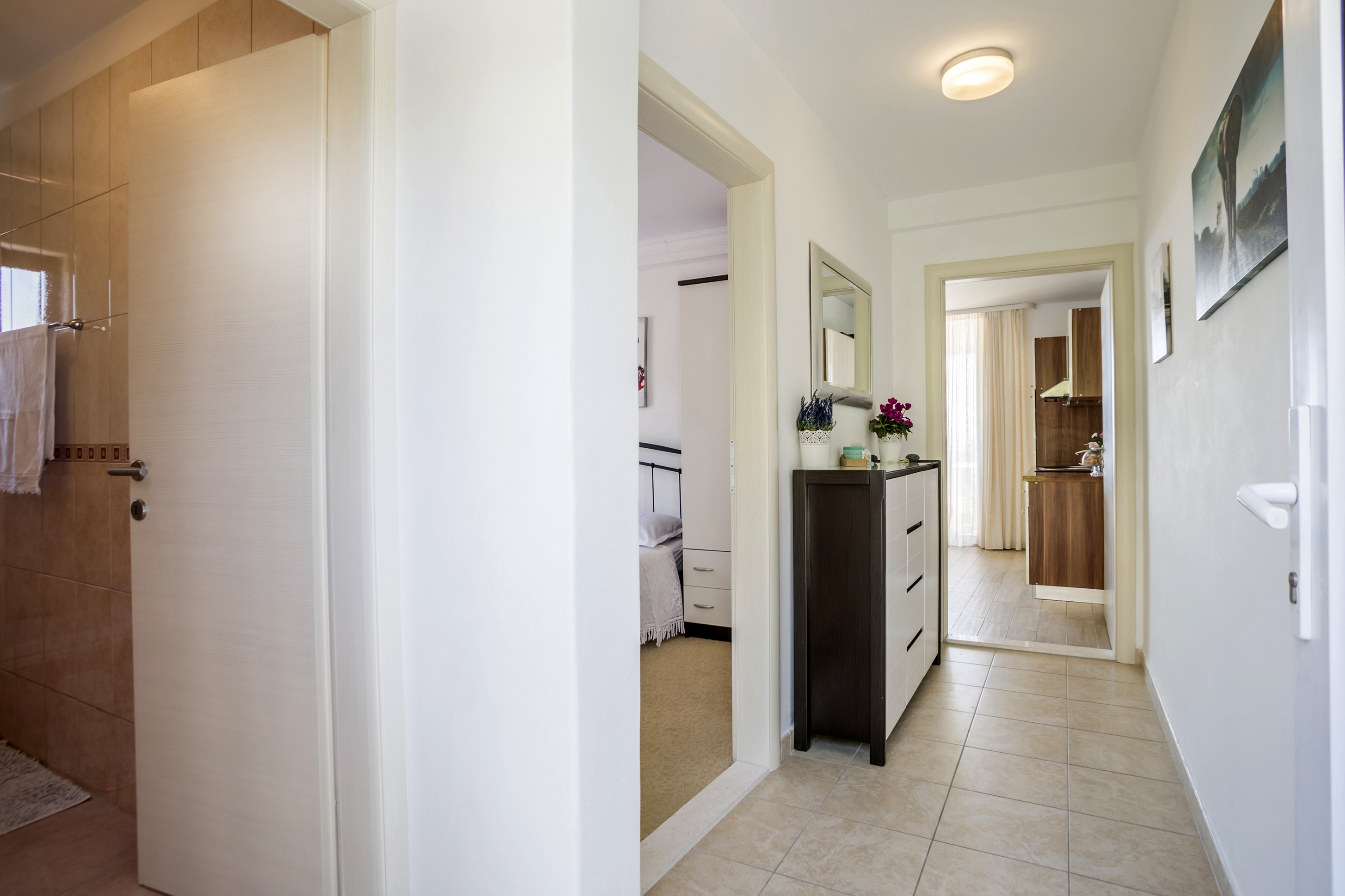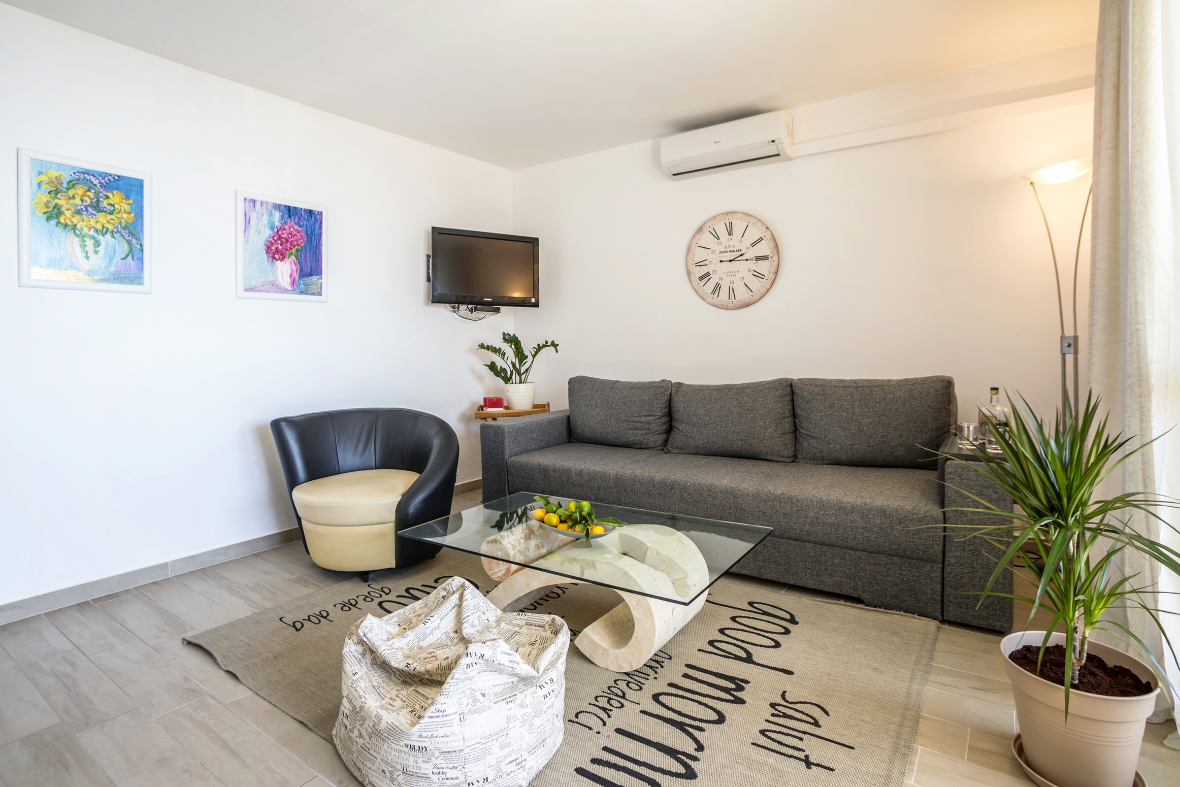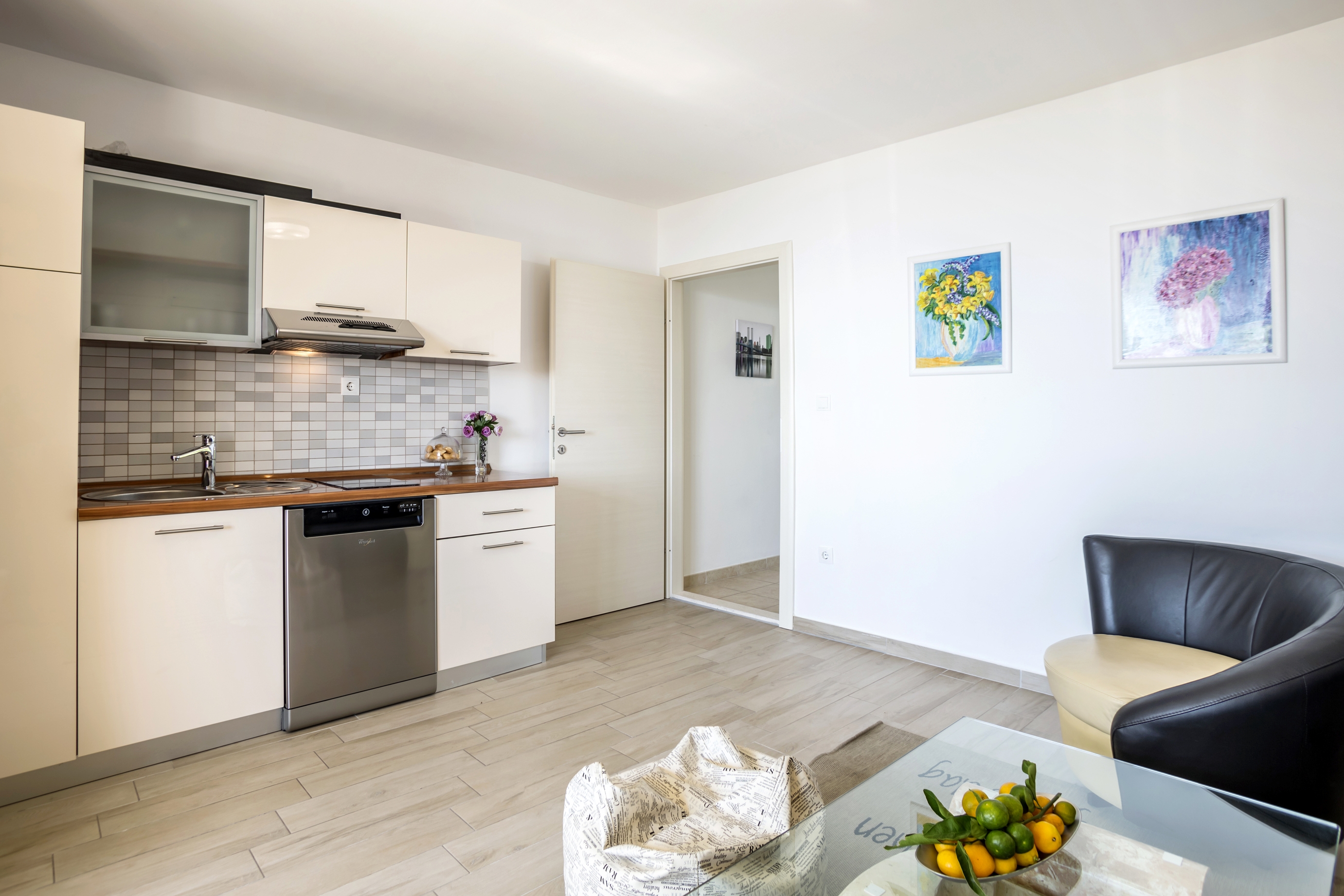 Apartment can accommodate 4 guests. Beds are situated in 1 sleeping rooms, but also in the living room, within 31m2. Guests can use a private terrace to enjoy the warm summer evenings. The apartment offers the sea view. Food can be prepared using barbecue which is shared with other guests too. Shared pool is on disposal during stay. INCLUDED IN THE PRICE: tourist tax, final cleaning, air-conditioning, pool, parking, internet, laundry, baby cot, ironing board, hairdryer. OBLIGATORY ADDITIONAL COSTS: short stay fee (surcharge depending on a number of booked nights: 30% - 1, 20% - 2, 10% - 3). The availability of additional services for your chosen dates of stay, as well as their prices (if none are listed) must be checked ahead of time. Any additional services not shown in the price calculation are payable directly to the property owner and only if used by the visitor.