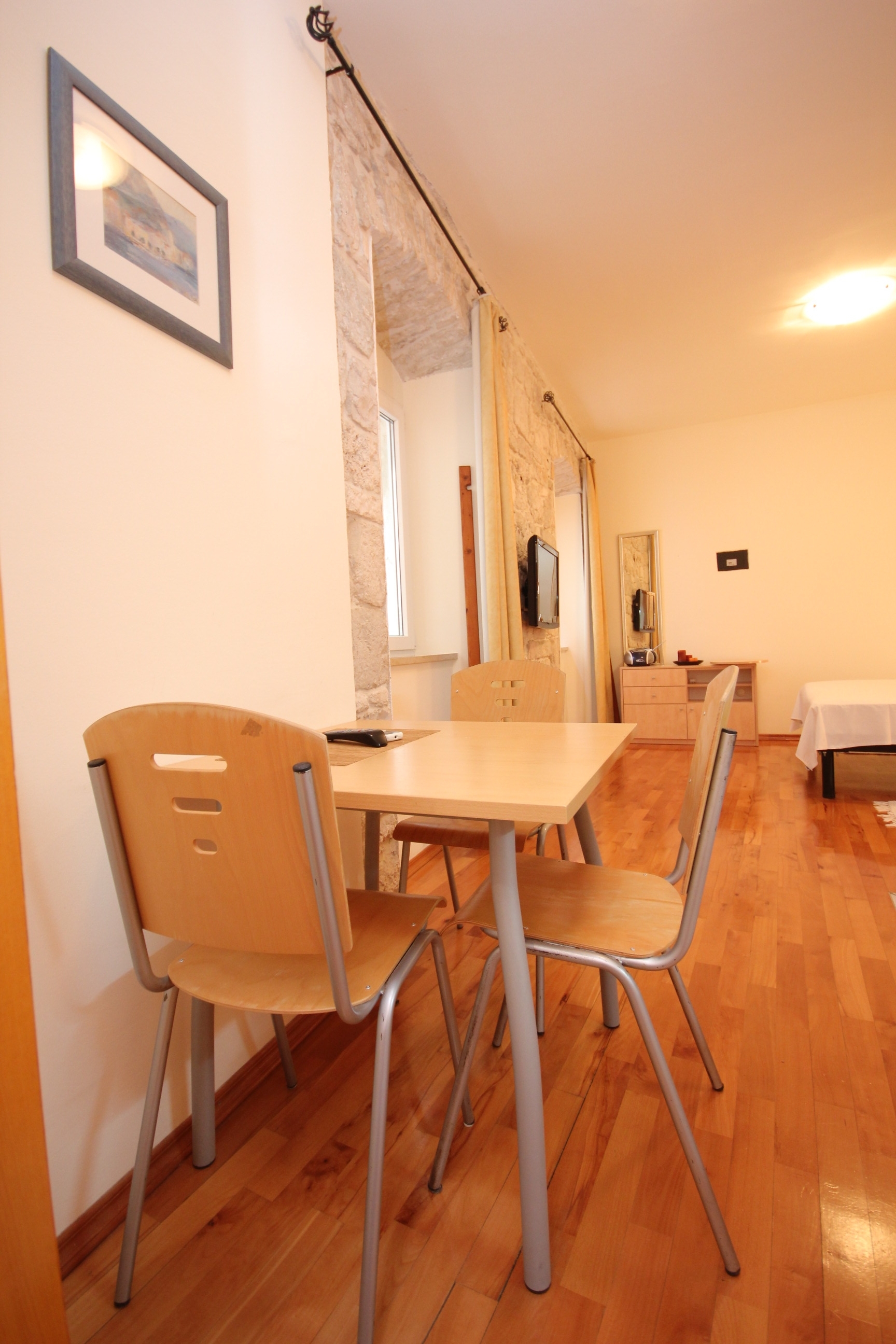 Studio flat can accommodate 3 guests. Beds are situated in 1 sleeping rooms, within 22m2. There is no balcony or terrace in the reserved accommodation unit. INCLUDED IN THE PRICE: tourist tax, final cleaning, air-conditioning, internet, baby cot, hairdryer. OBLIGATORY ADDITIONAL COSTS: short stay fee (surcharge depending on a number of booked nights: 30% - 1, 20% - 2, 10% - 3). OPTIONAL ADDITIONAL COSTS: additional bed (€8.00 per night). The availability of additional services for your chosen dates of stay, as well as their prices (if none are listed) must be checked ahead of time. Any additional services not shown in the price calculation are payable directly to the property owner and only if used by the visitor.