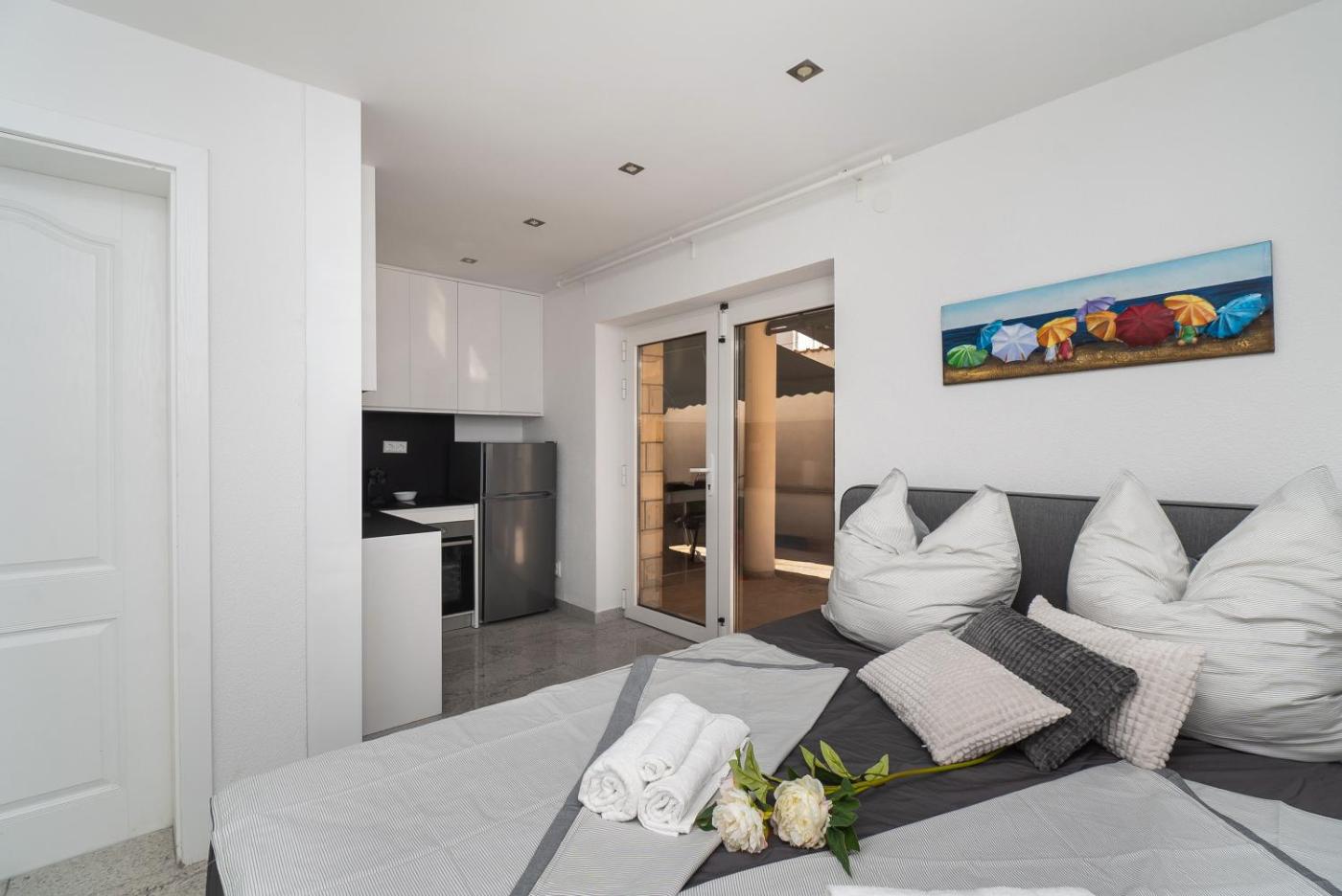 One-Bedroom Apartment. Boasting 1 bedroom, this apartment has 1 bathroom with a shower, a seating area and terraceyou can relax. The apartments kitchenette, which has a refrigerator, is available for cooking and storing food. The air-conditioned apartment offers a flat-screen TV, a washing machine, a coffee machine, a wardrobe as well as sea views. The unit offers 1 bed. ;