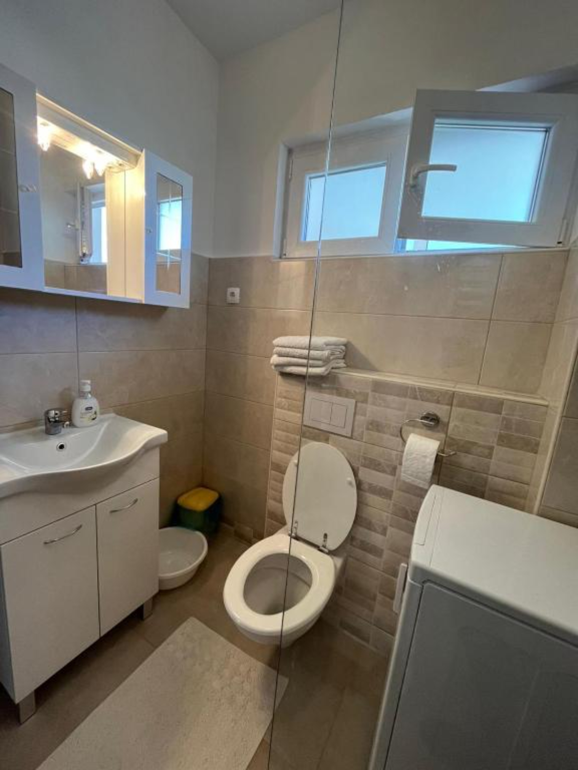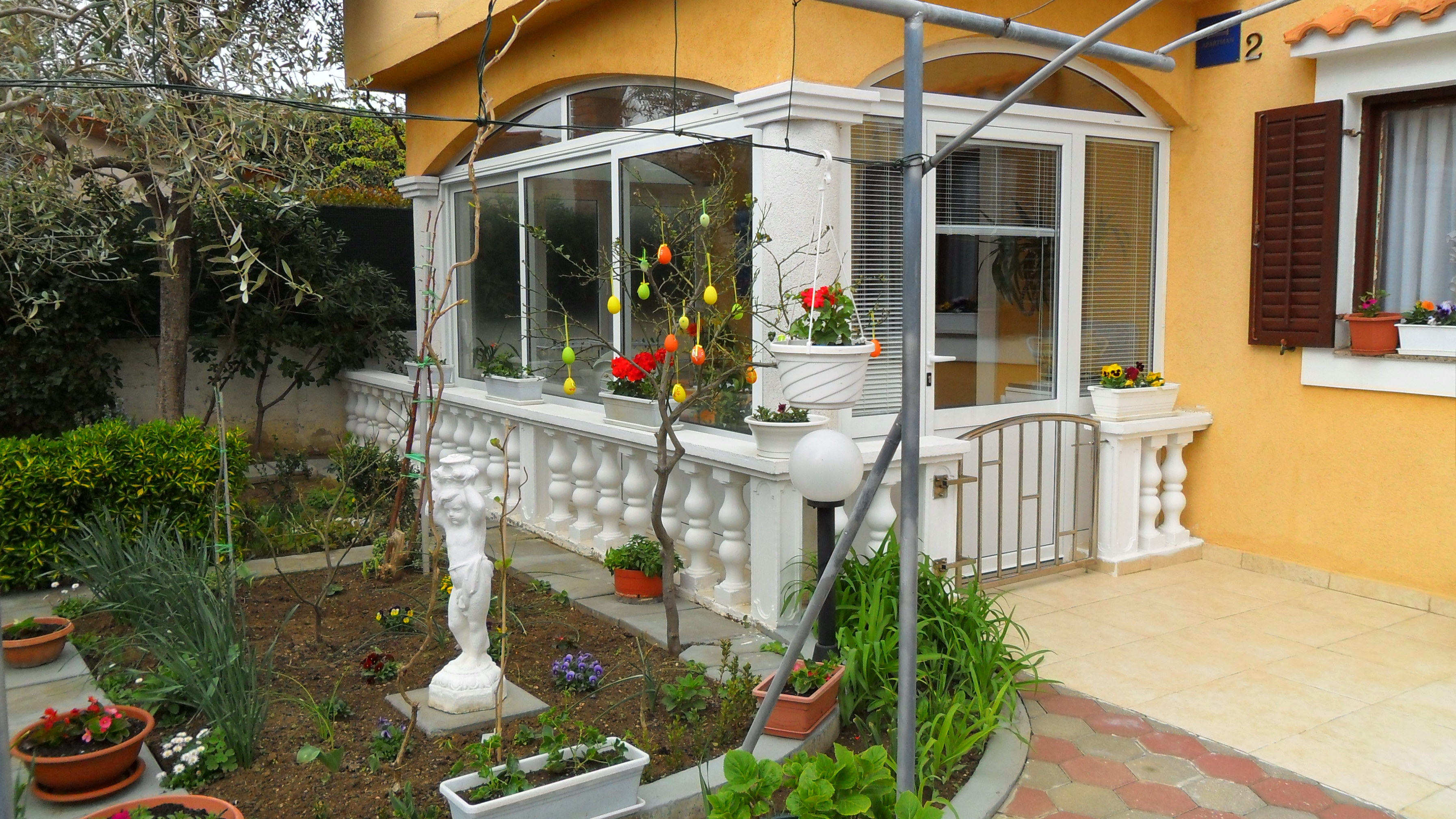 Apartment can accommodate 4 guests. Beds are situated in 2 sleeping rooms, within 49m2. Guests can use a private terrace to enjoy the warm summer evenings. Food can be prepared using barbecue which is shared with other guests too. INCLUDED IN THE PRICE: tourist tax, final cleaning, air-conditioning, parking, internet, iron, ironing board, hairdryer, sunshade. OBLIGATORY ADDITIONAL COSTS: short stay fee (surcharge depending on a number of booked nights: 30% - 1, 20% - 2, 10% - 3). OPTIONAL ADDITIONAL COSTS: additional bed (€10.00 per night). The availability of additional services for your chosen dates of stay, as well as their prices (if none are listed) must be checked ahead of time. Any additional services not shown in the price calculation are payable directly to the property owner and only if used by the visitor. Discounts to the base price: free day 14=13 (for reservations of 14 or more days you get one free day for the stay until 31122026).