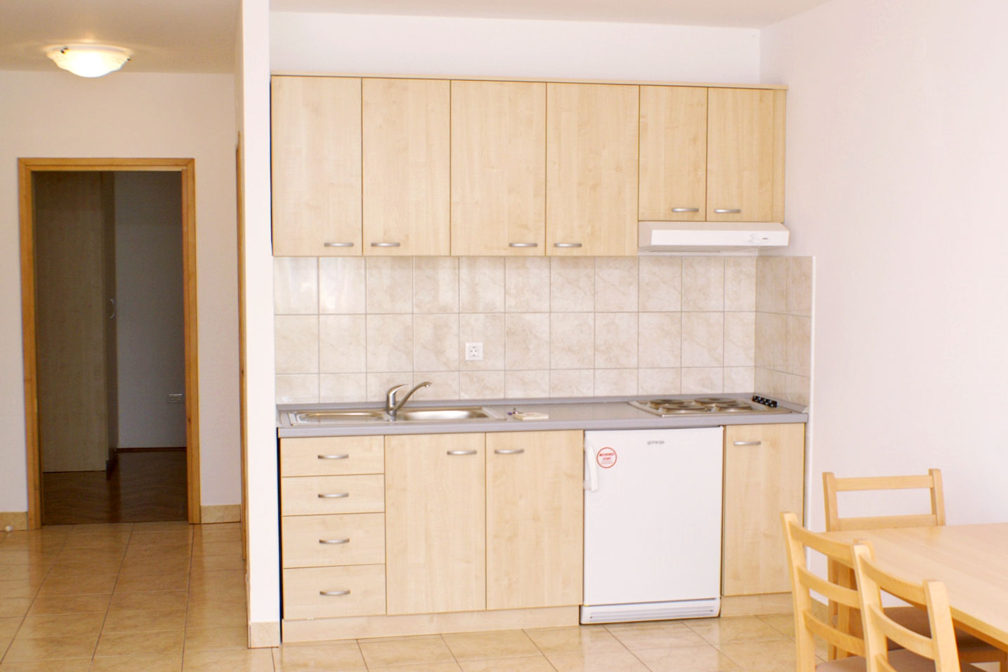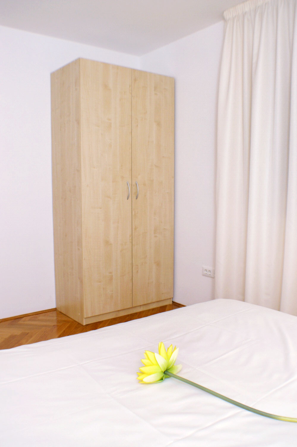 Apartment can accommodate 4 guests. Beds are situated in 1 sleeping rooms, but also in the living room, within 44m2. There is no balcony or terrace in the reserved accommodation unit. INCLUDED IN THE PRICE: final cleaning, air-conditioning, parking, internet, iron, ironing board, hairdryer, sunshade, sunchairs. OBLIGATORY ADDITIONAL COSTS: tourist tax (adults €0.93 - €1.50 nightperson, discount for children aged 12 - 17), short stay fee (surcharge depending on a number of booked nights: 30% - 1, 20% - 2, 10% - 3). OPTIONAL ADDITIONAL COSTS: additional bed (€35.00 per night). The availability of additional services for your chosen dates of stay, as well as their prices (if none are listed) must be checked ahead of time. Any additional services not shown in the price calculation are payable directly to the property owner and only if used by the visitor.
