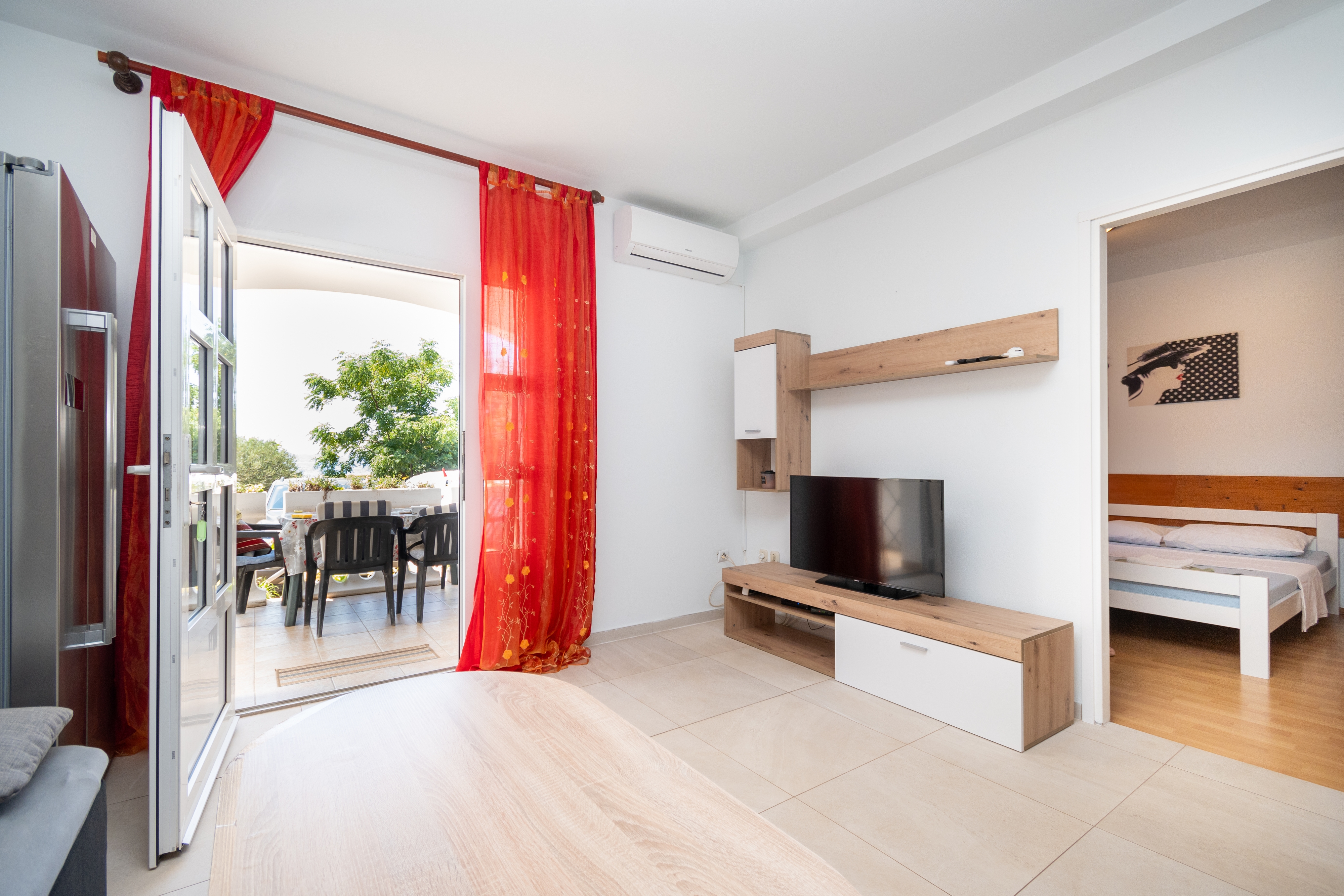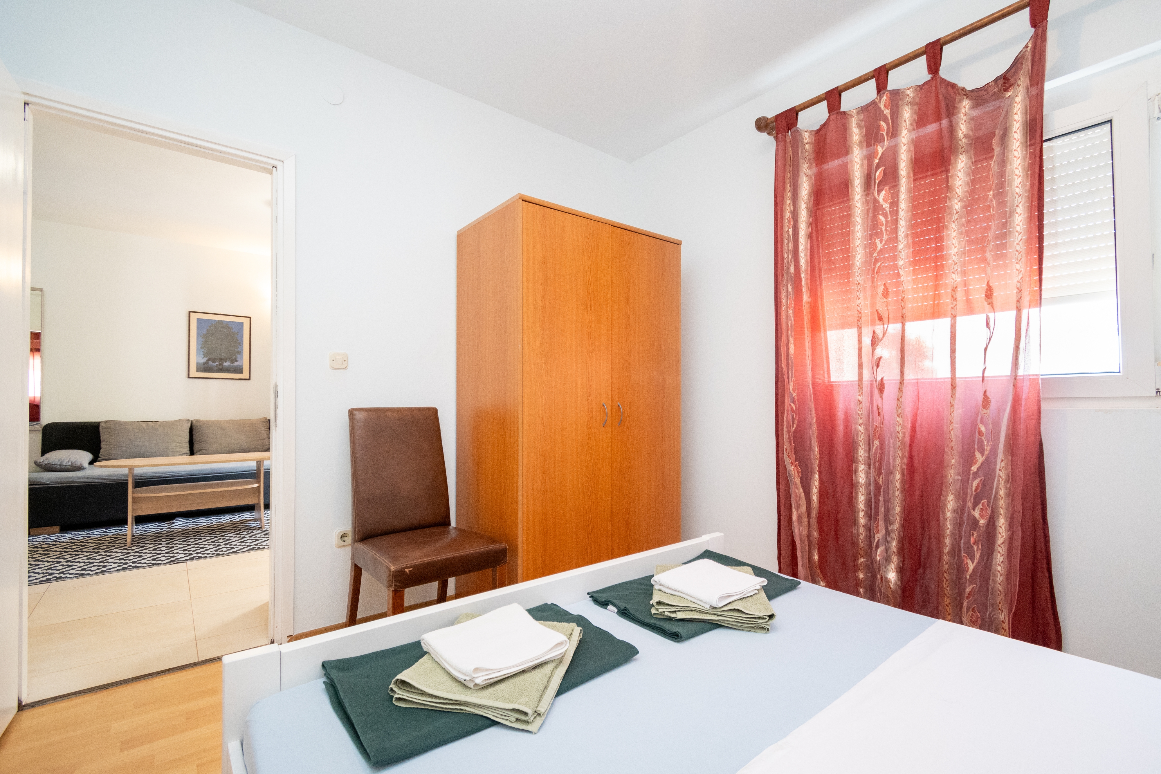 Apartment can accommodate 4 guests. Beds are situated in 2 sleeping rooms, within 48m2. Guests can use a private terrace to enjoy the warm summer evenings. The apartment offers the sea view. INCLUDED IN THE PRICE: tourist tax, final cleaning, air-conditioning, parking, internet. OBLIGATORY ADDITIONAL COSTS: short stay fee (surcharge depending on a number of booked nights: 30% - 1, 20% - 2, 10% - 3). OPTIONAL ADDITIONAL COSTS: additional bed (€10.00 per night). The availability of additional services for your chosen dates of stay, as well as their prices (if none are listed) must be checked ahead of time. Any additional services not shown in the price calculation are payable directly to the property owner and only if used by the visitor.