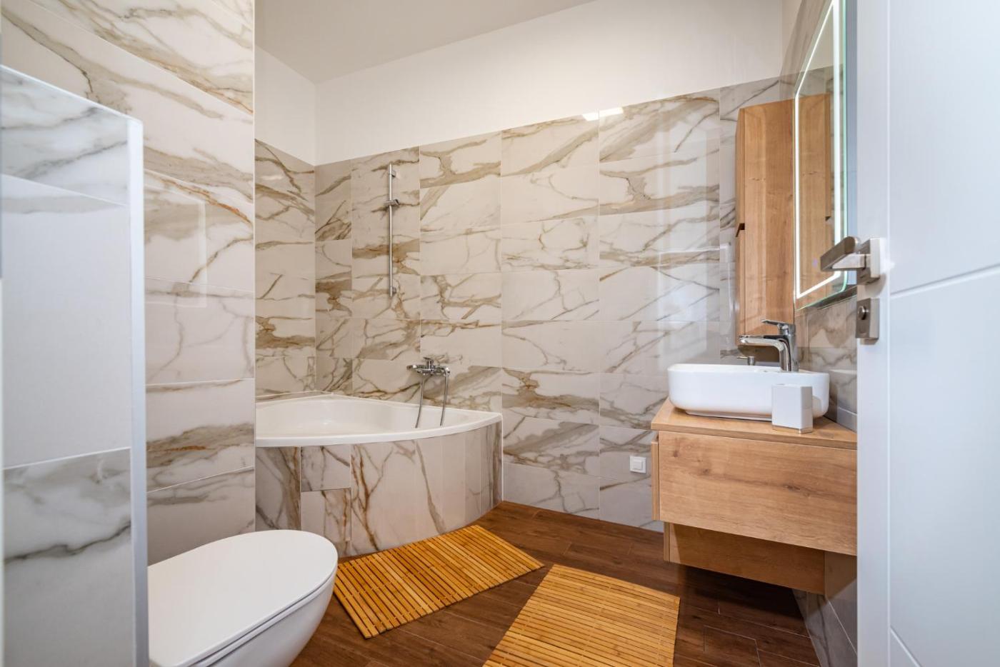 One-Bedroom Apartment. Boasting a private entrance, this air-conditioned apartment includes 1 living room, 1 separate bedroom and 1 bathroom with a bath and a hairdryer. Guests will find a stovetop, a refrigerator, a dishwasher and kitchenware in the well-fitted kitchen. The apartment also features a barbecue. The apartment offers soundproof walls, a tea and coffee maker, a seating area, a flat-screen TV, as well as garden views. The unit has 1 bed.