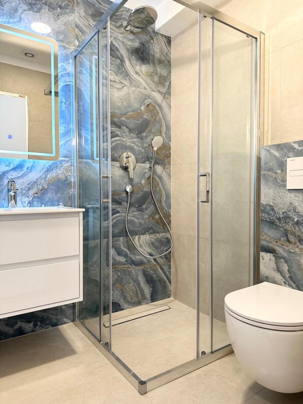 One-Bedroom Apartment. The air-conditioned apartment features 1 bedroom and 1 bathroom with a shower and a hairdryer. The well-equipped kitchen has a stovetop, a refrigerator, kitchenware and a microwave. Featuring a terrace with sea views, this apartment also provides a coffee machine and a flat-screen TV with streaming services. The unit offers 1 bed.