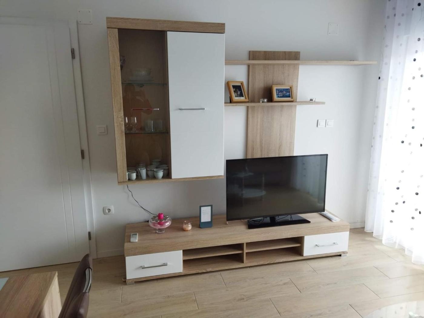 One-Bedroom Apartment. Featuring a private entrance, this air-conditioned apartment is comprised of 1 living room, 1 separate bedroom and 1 bathroom with a walk-in shower and a hairdryer. Guests will find a stovetop, a refrigerator, kitchenware and an oven in the kitchen. The apartment also has a barbecue. Boasting a terrace with sea views, this apartment also offers soundproof walls and a flat-screen TV with cable channels. The unit offers 2 beds. ;